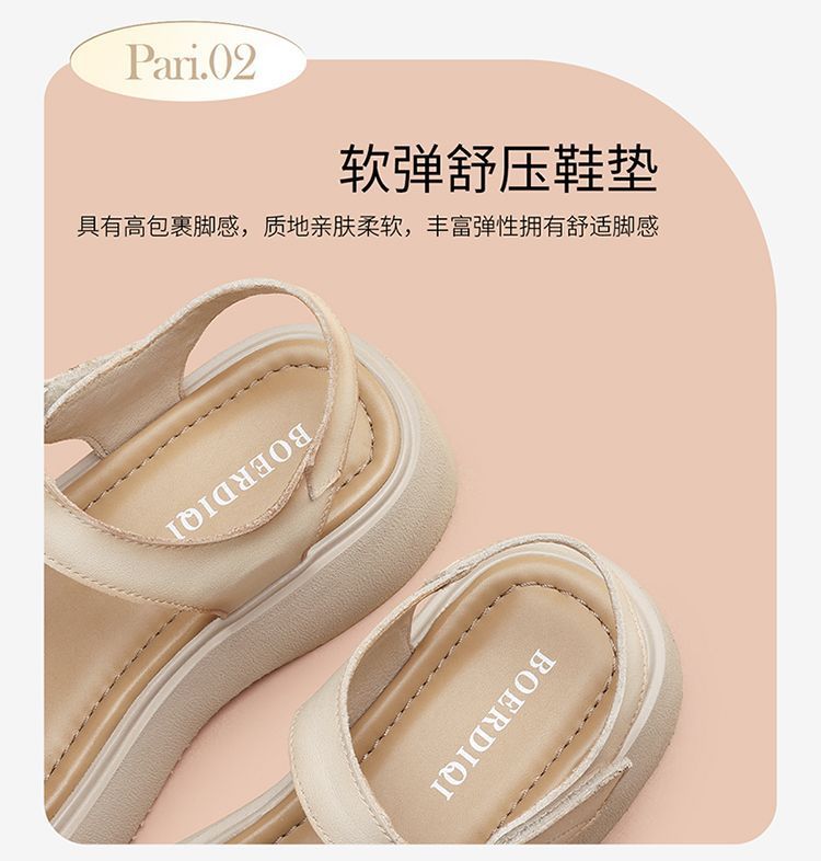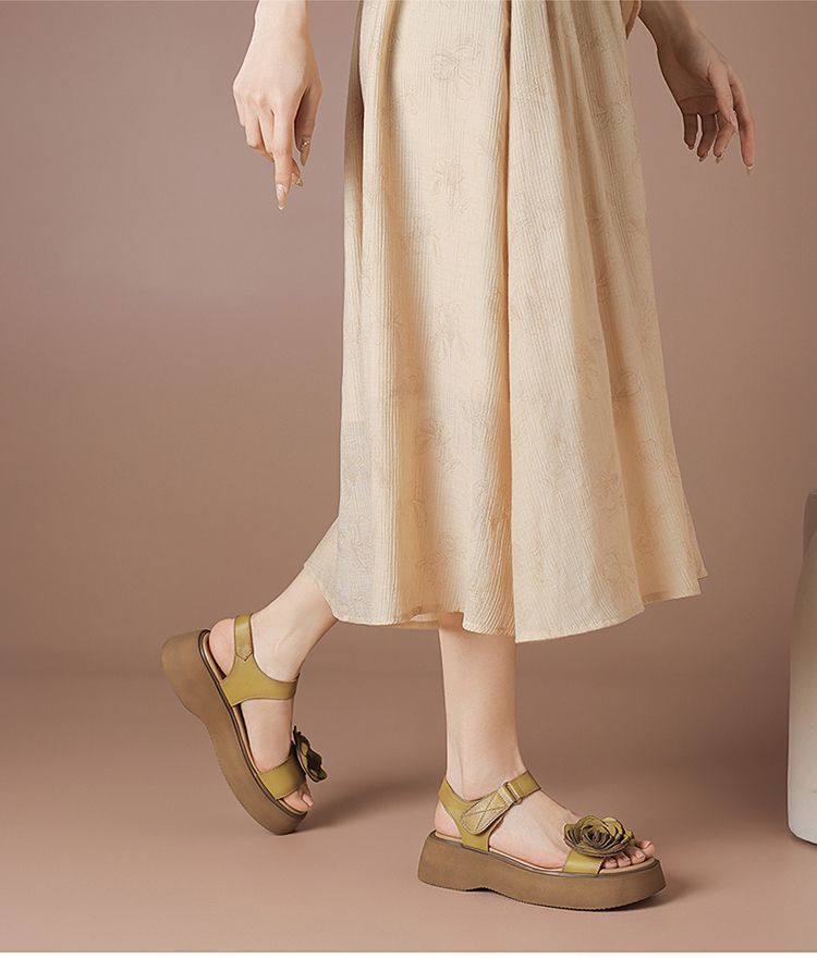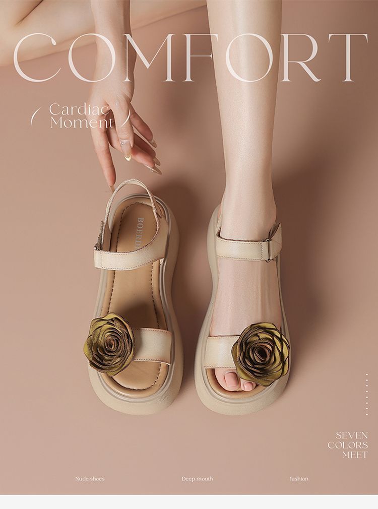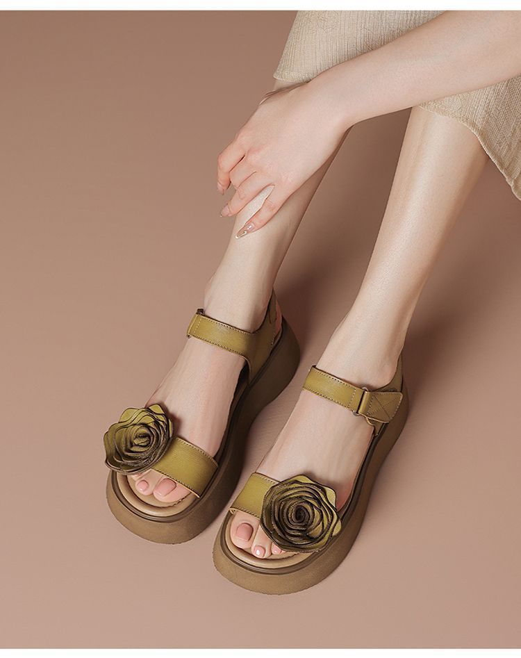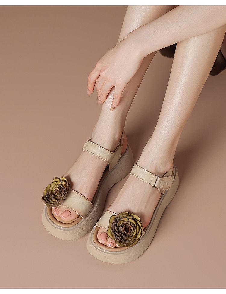 【牛皮】民族风花朵凉鞋女夏季新款复古轻便厚底休闲凉鞋-BB
