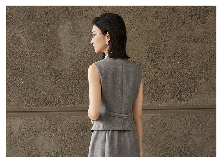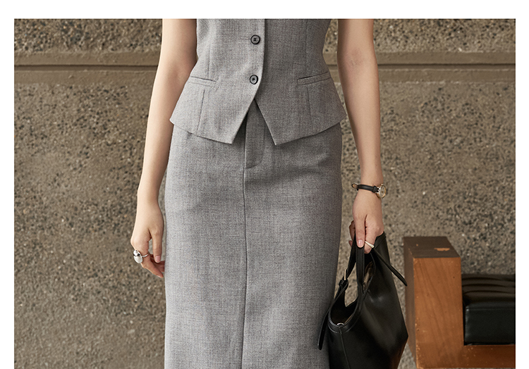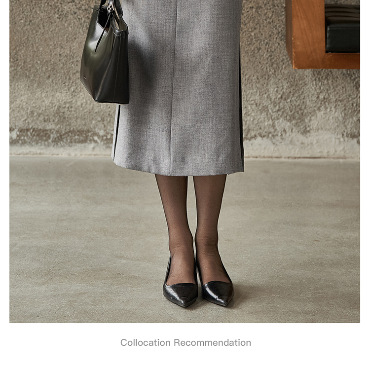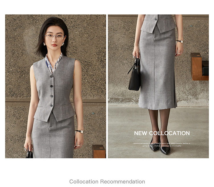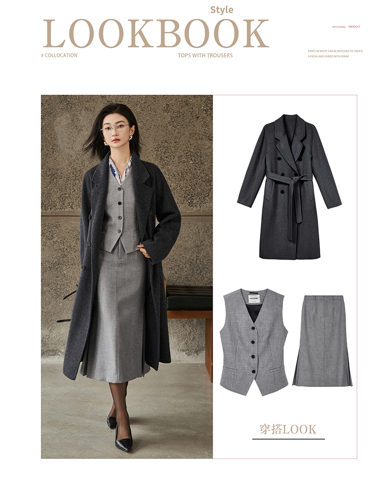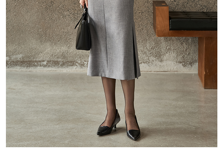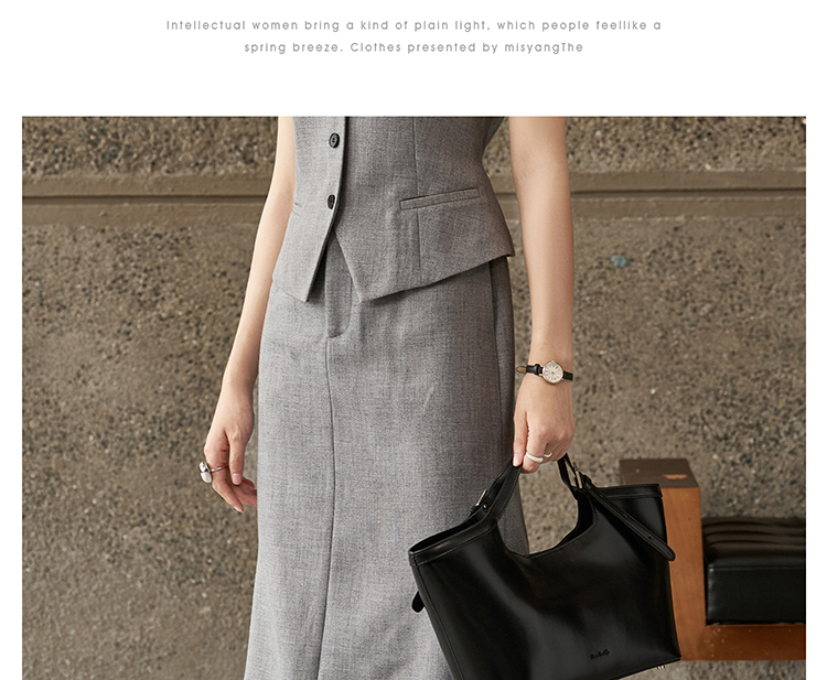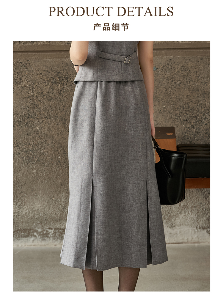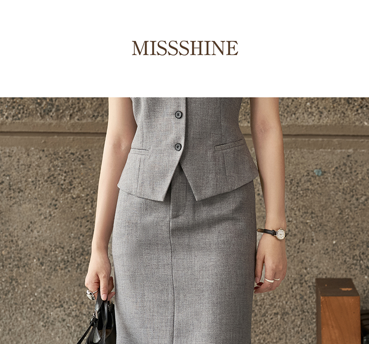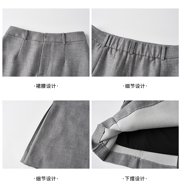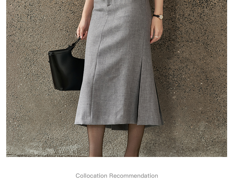 剩M/XL 米思阳2026春季新款通勤风高级灰高腰直筒压褶裙摆羊毛混纺半身裙女4858