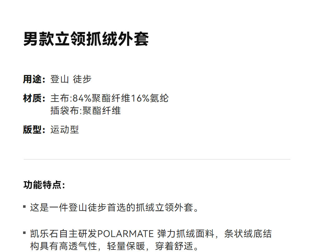 KAILAS凯乐石 男款立领抓绒外套 KG2532108