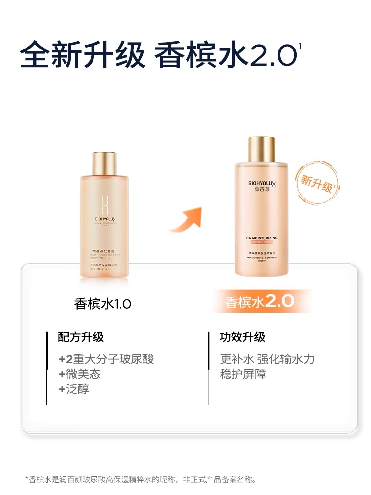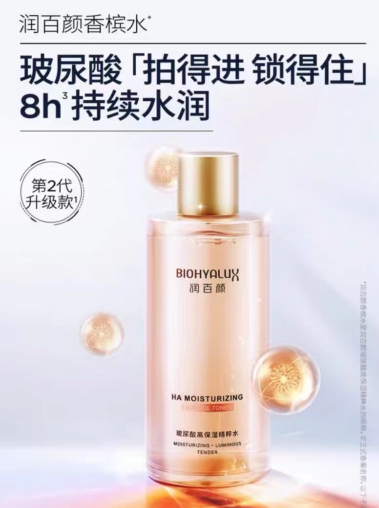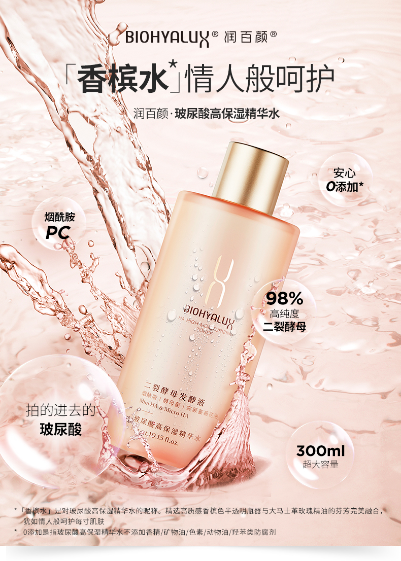 「香槟水」润百颜玻尿酸高保湿精粹水300ml,补水保湿 润泽肌肤 华熙生物玻尿酸香槟水二裂酵母烟酰胺爽肤水精华水
