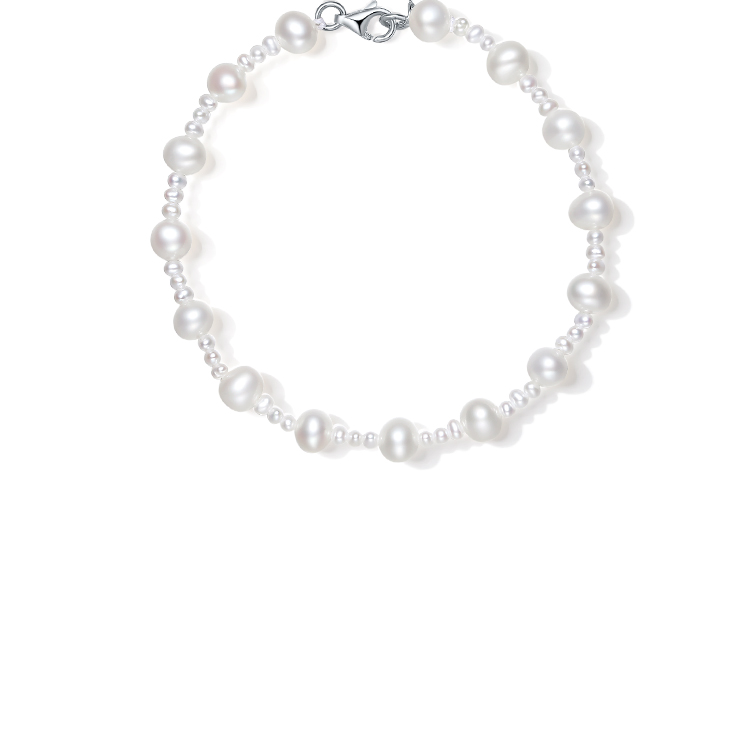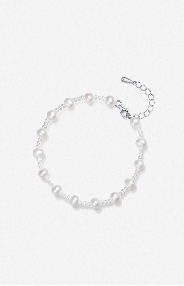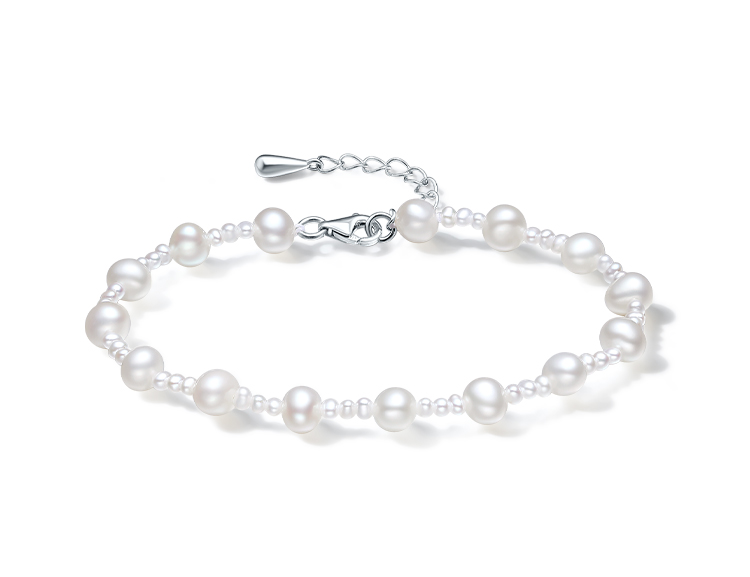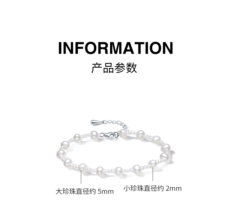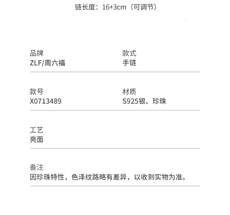 周六福S925银珍珠手链优雅时尚大小淡水珍珠手串可调节送女友礼物