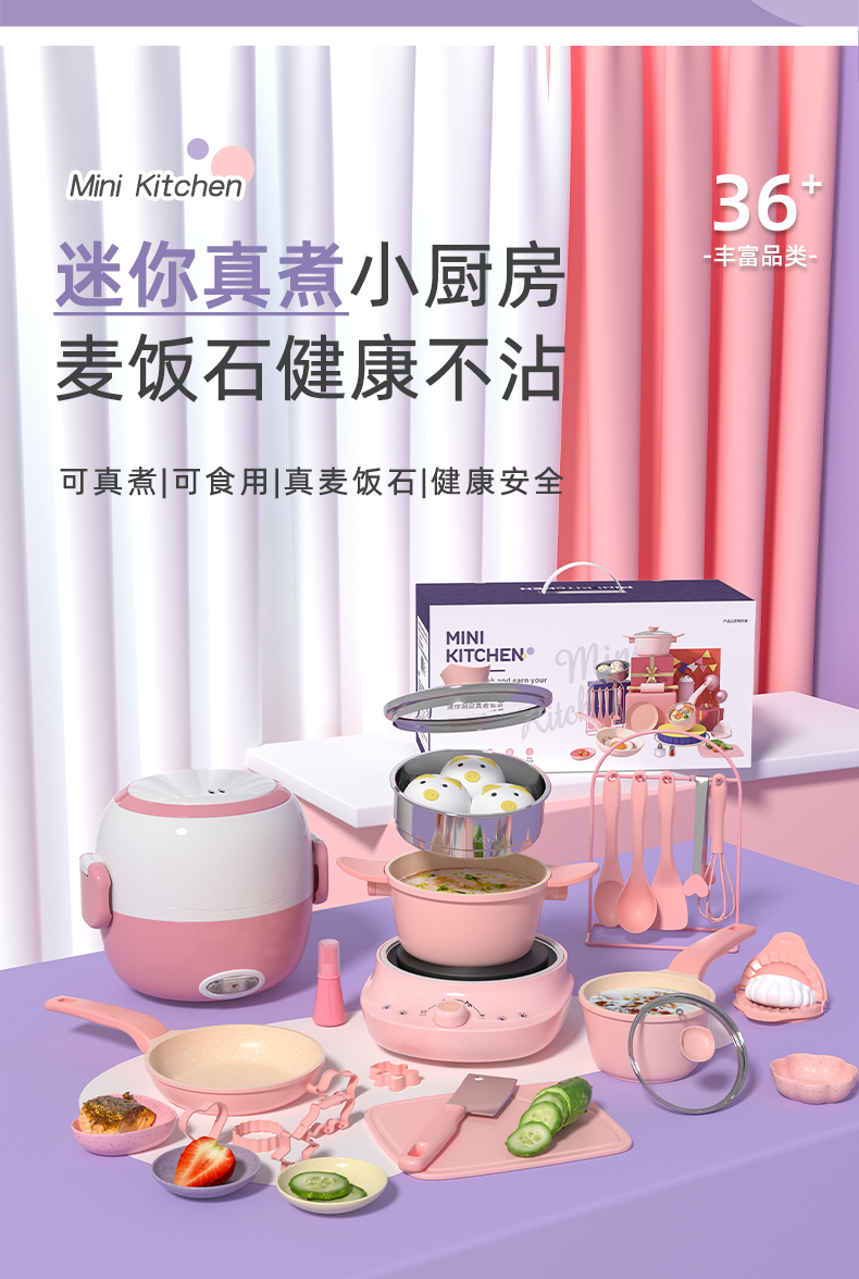 【麦饭石真煮饭 可食用】迷你厨房真煮全套做饭小厨具套装 儿童宝宝益智过家家玩具套装