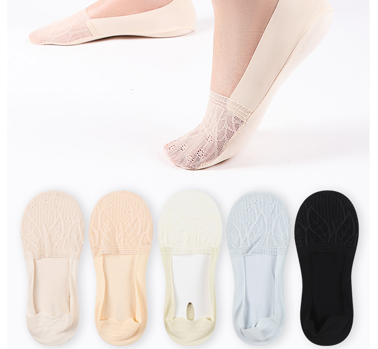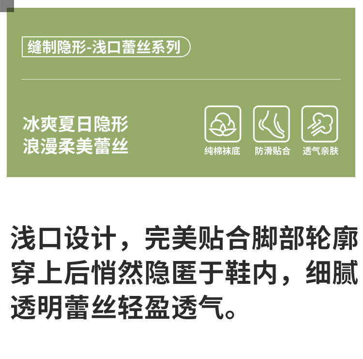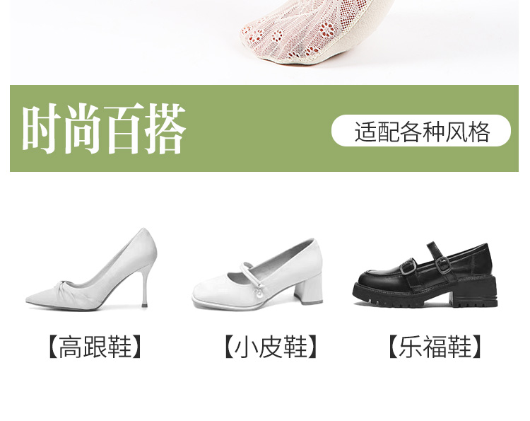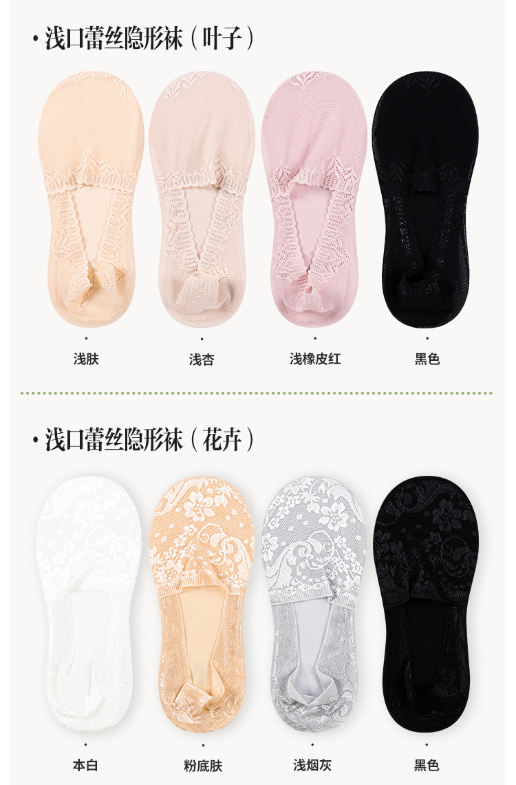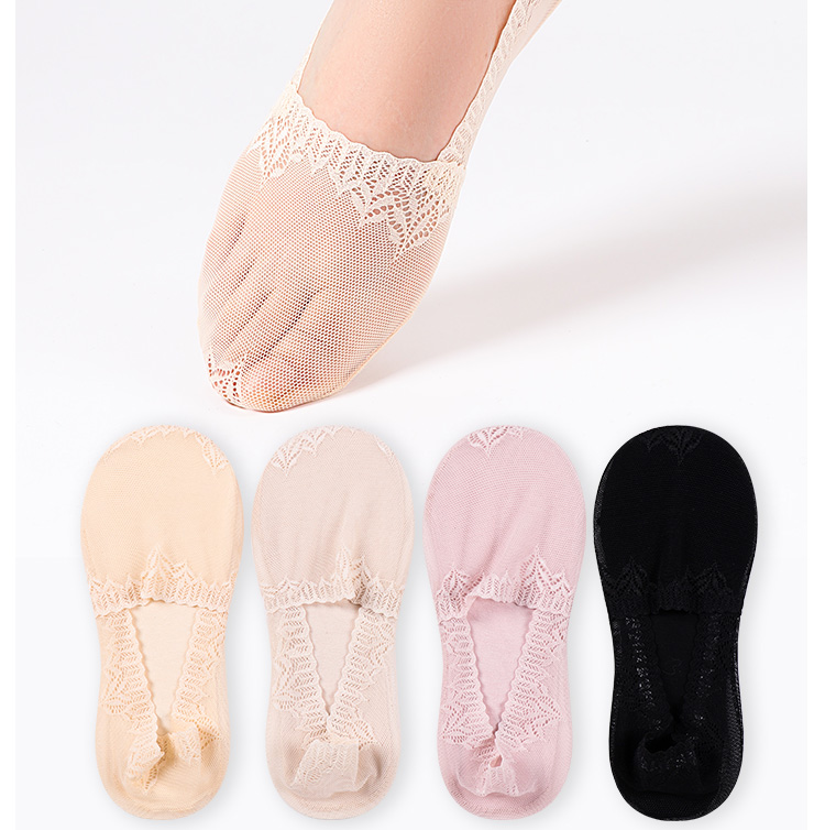 足装秀蕾丝浅口隐形袜女夏季薄款纯棉底排汗防滑不掉跟网眼船袜