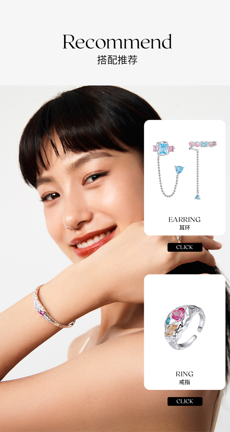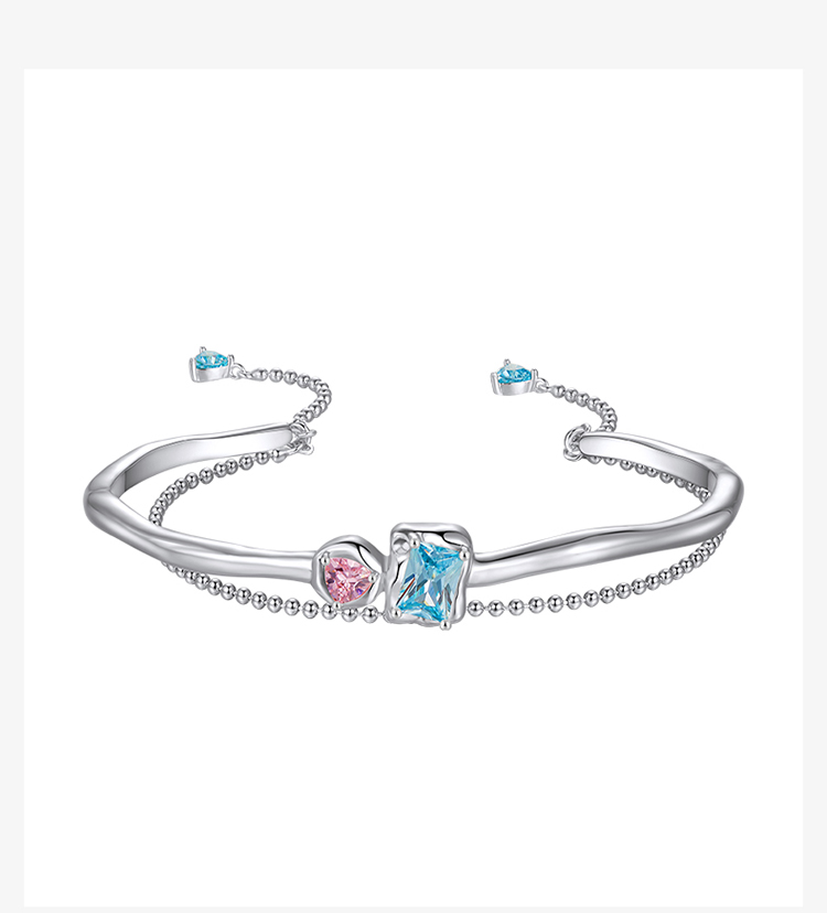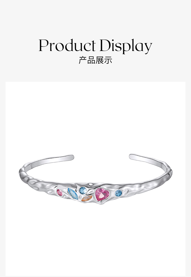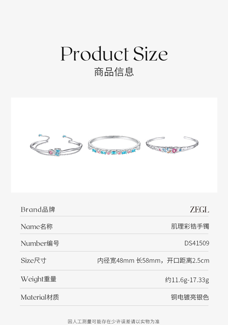 ZEGL设计师肌理系列彩色锆石手镯女手链轻奢小众精致手环开口镯子