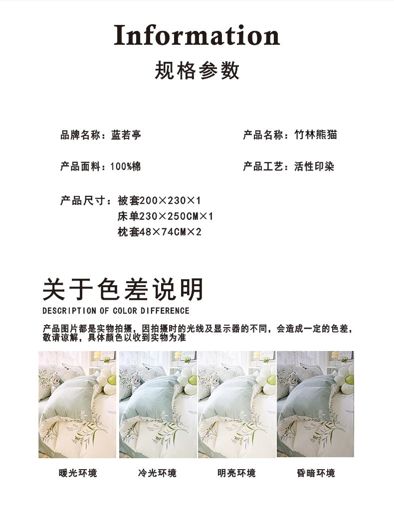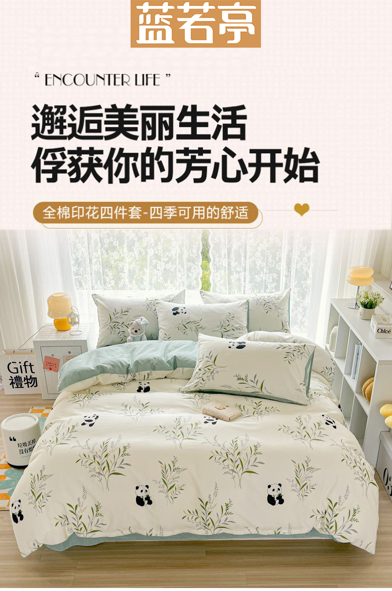 蓝若亭全棉四件套(竹林熊猫)