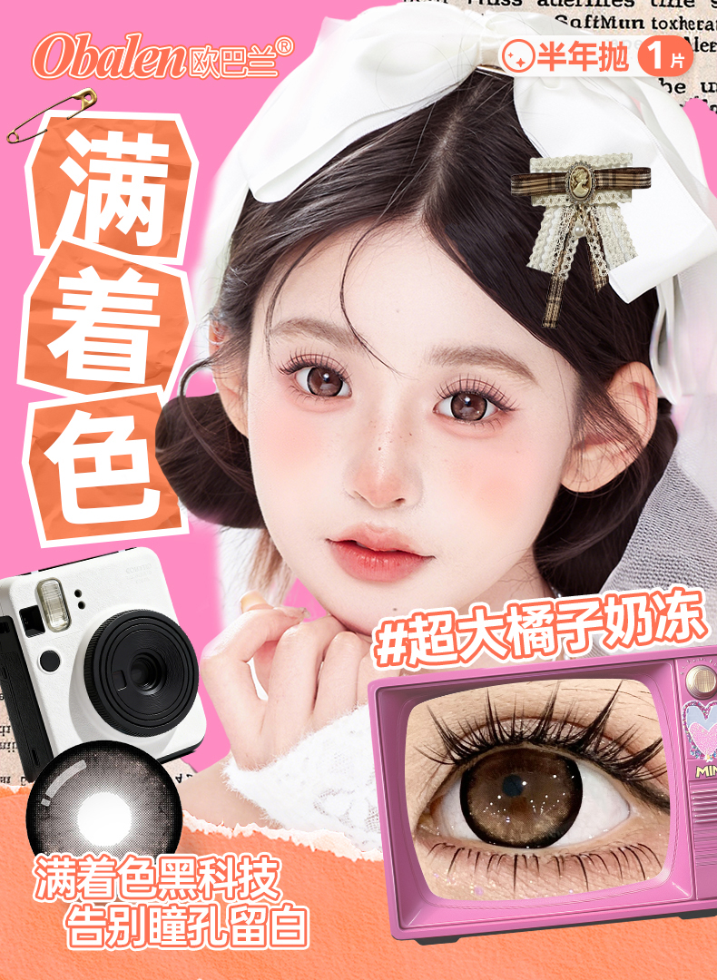 新品【超大满着色】方盒系列Obalen欧巴兰扩瞳显色【超大橘子奶冻】14.5大直径纯欲减龄百搭自然款半年抛美瞳非离子隐形眼镜2片装