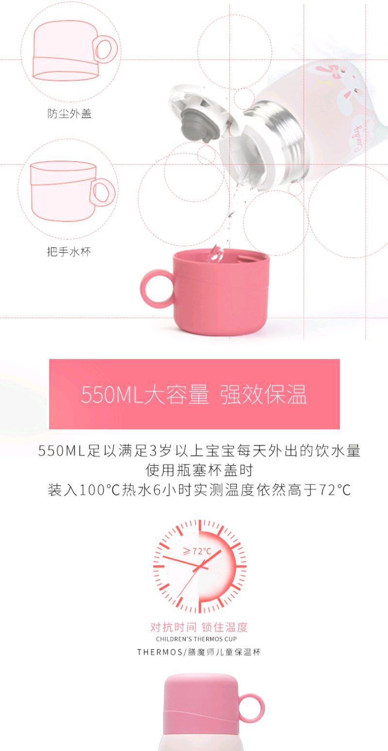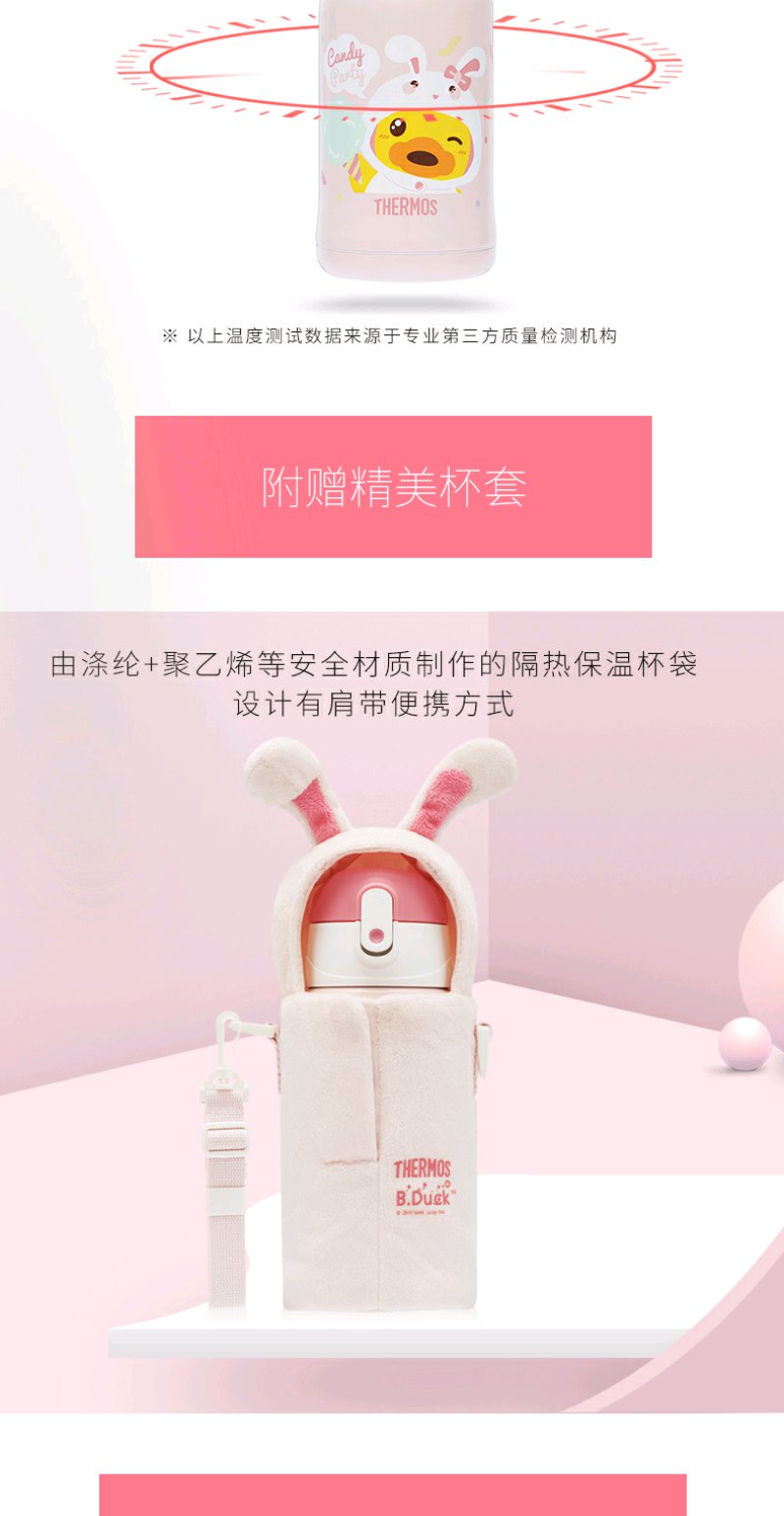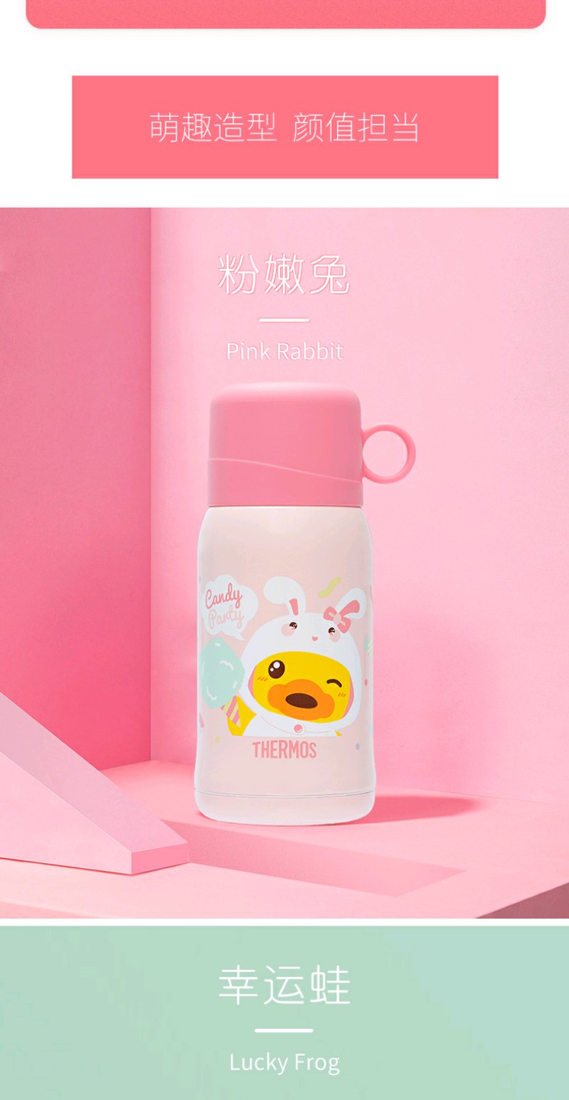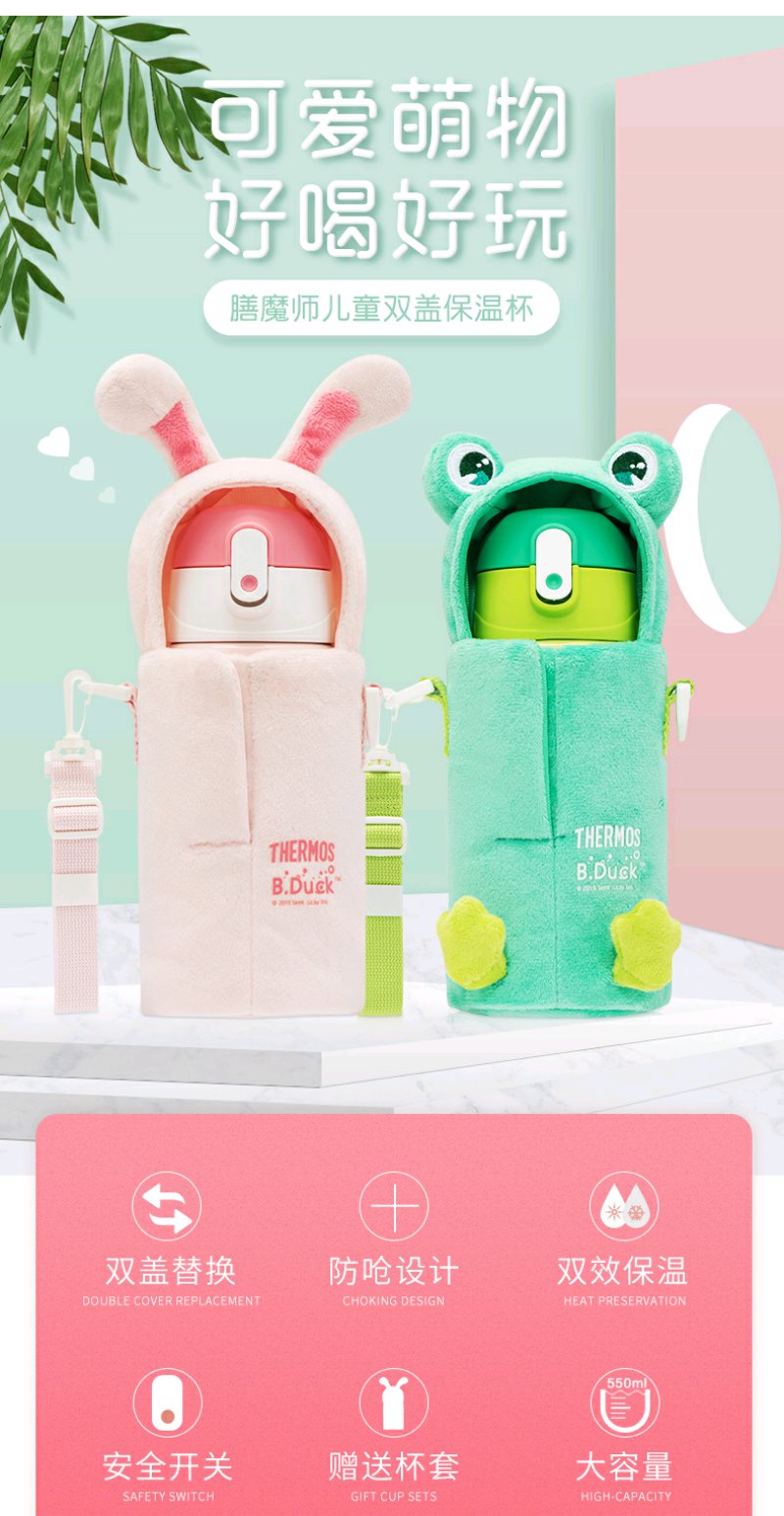 膳魔师 儿童保温杯小兔子青蛙杯套 水背带水壶便携宝宝水杯 550ml