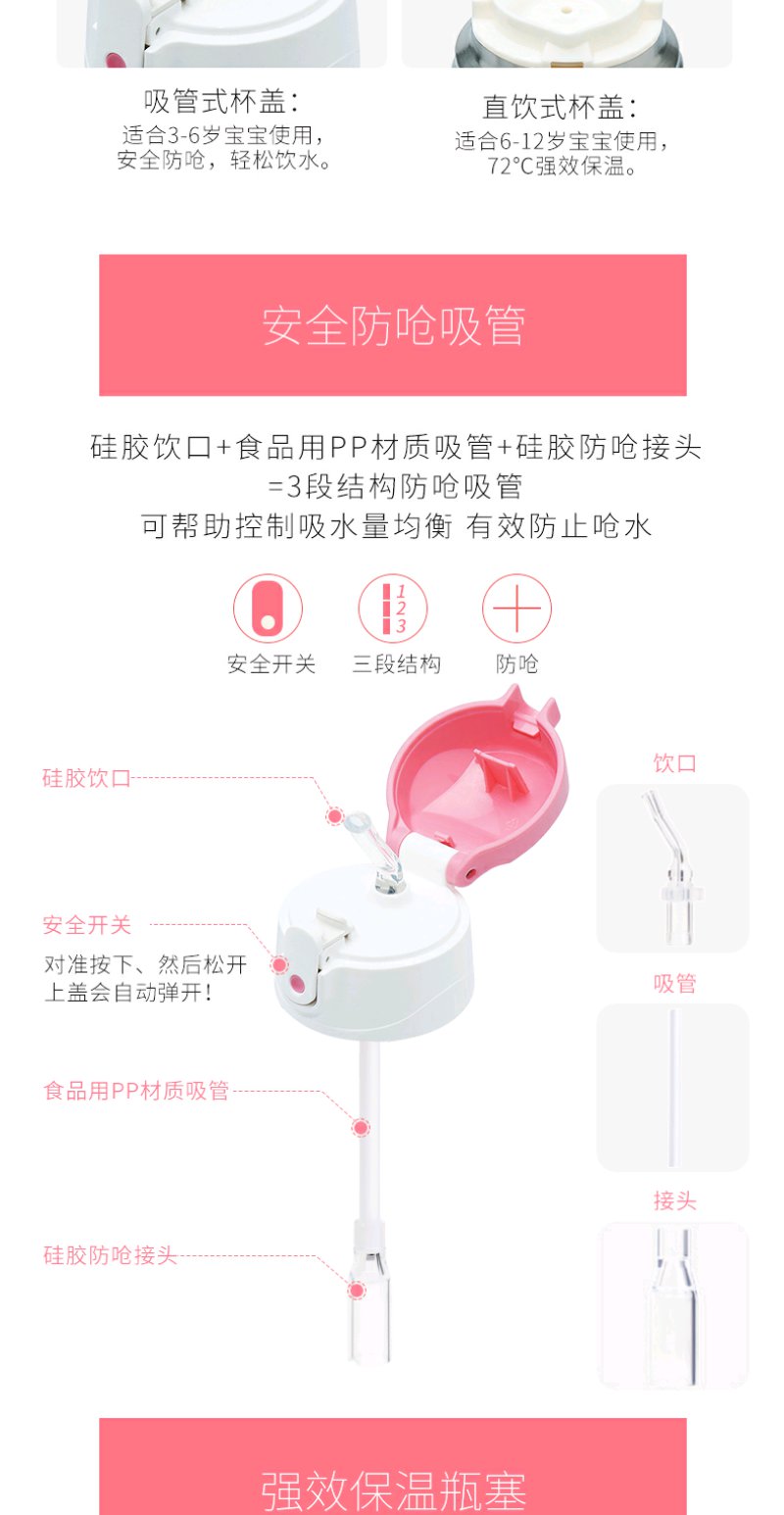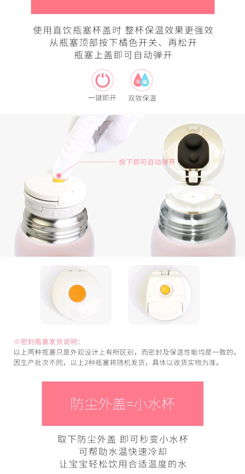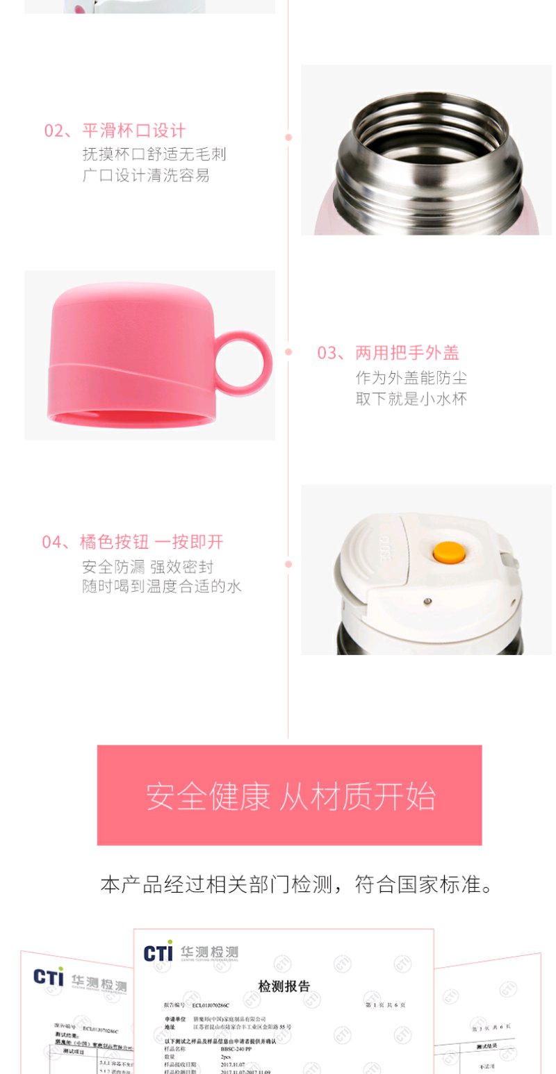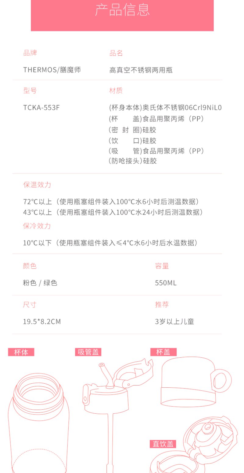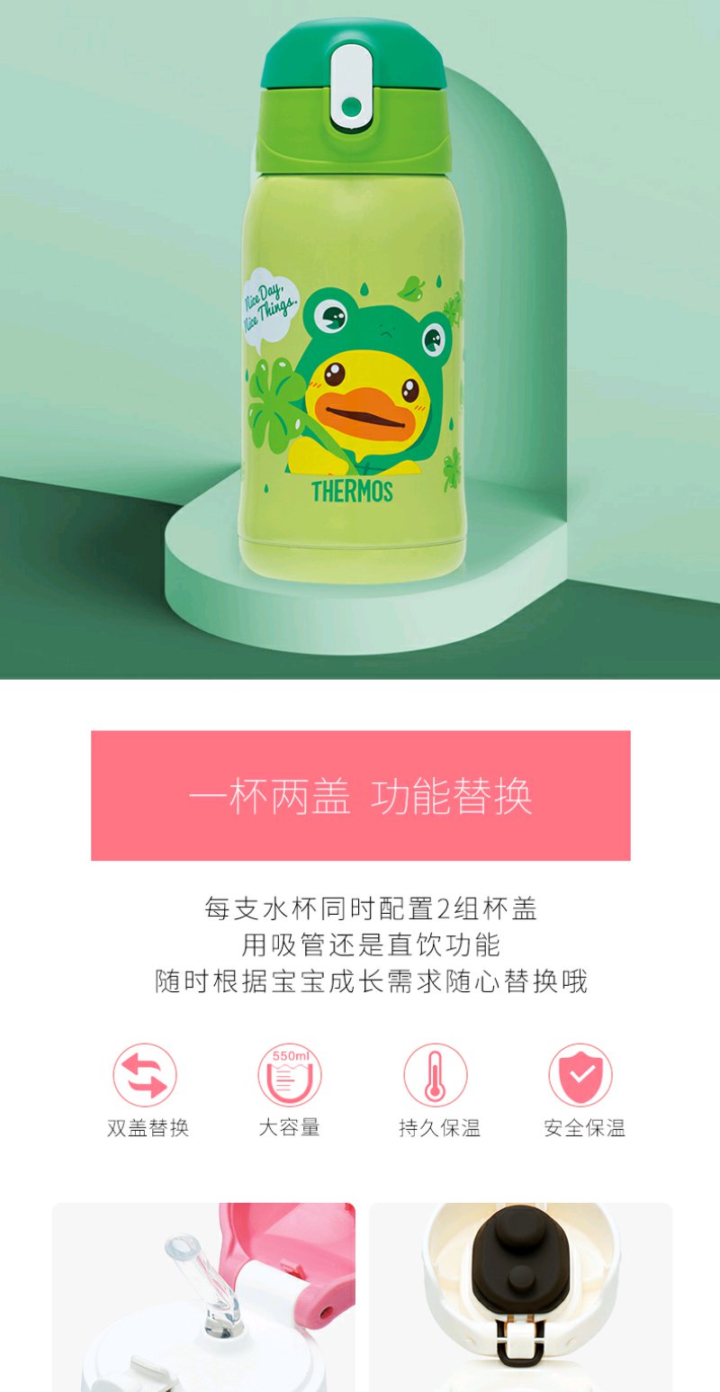 膳魔师 儿童保温杯小兔子青蛙杯套 水背带水壶便携宝宝水杯 550ml