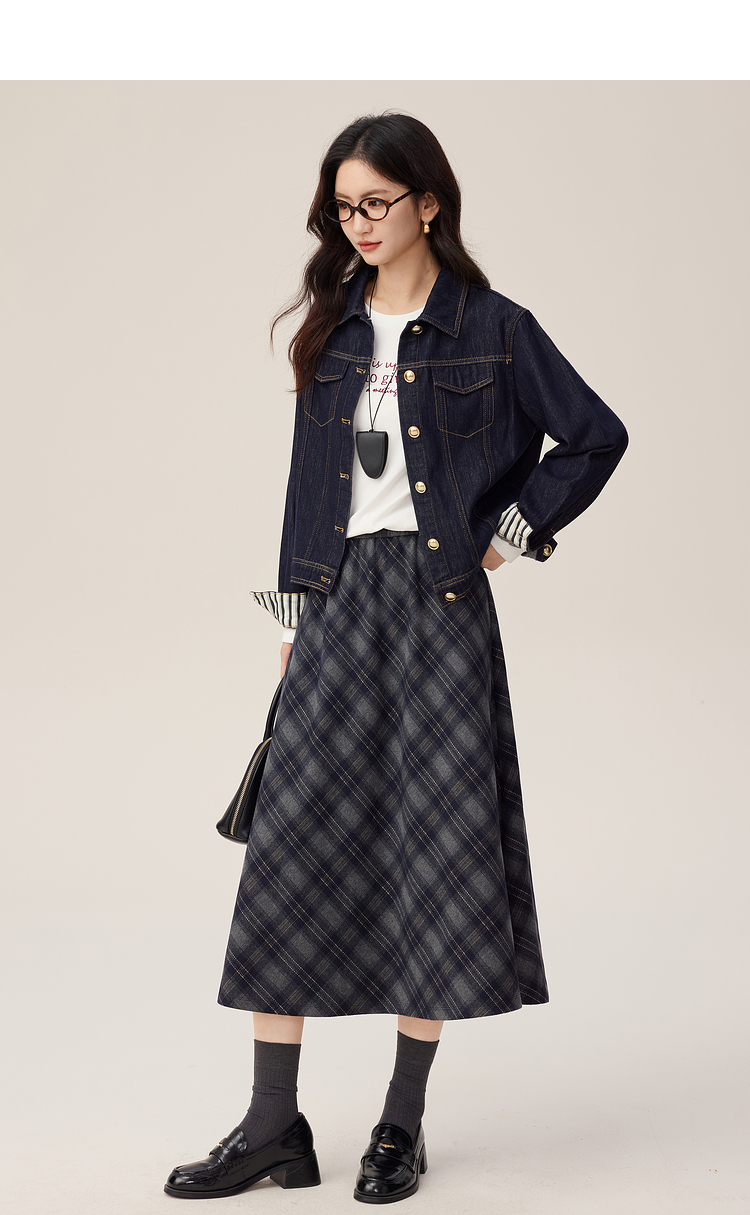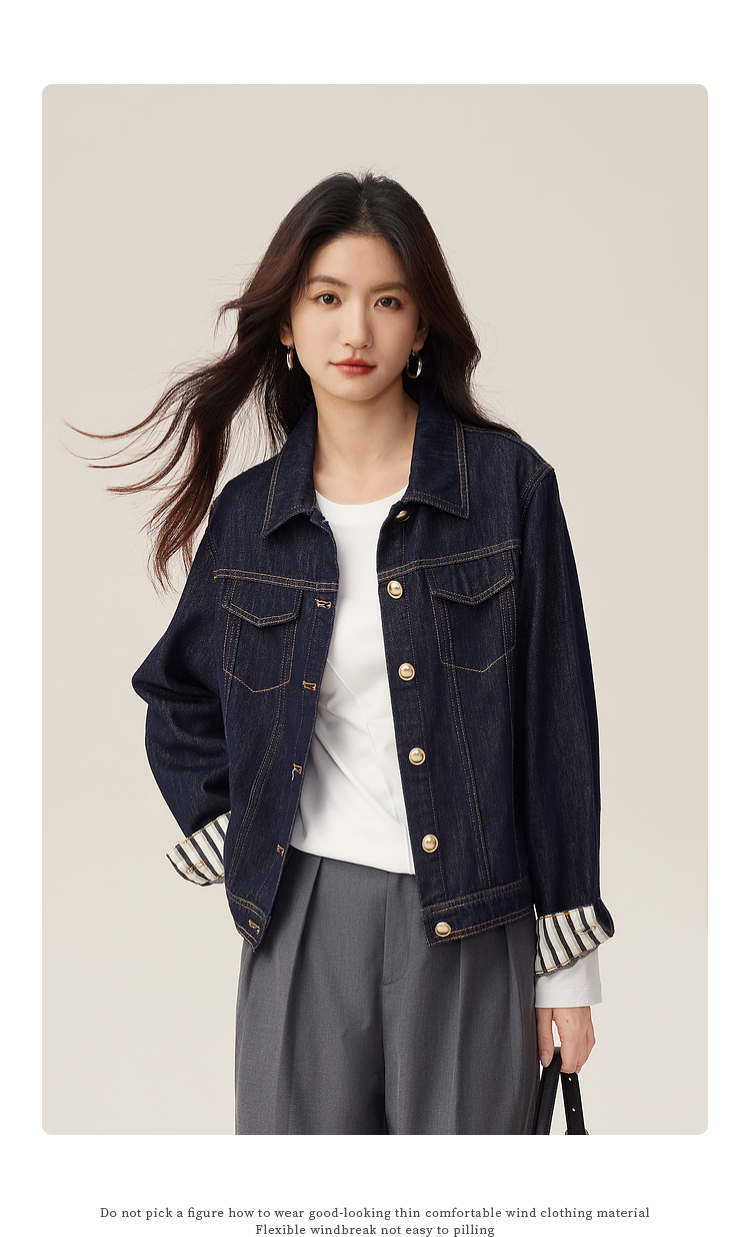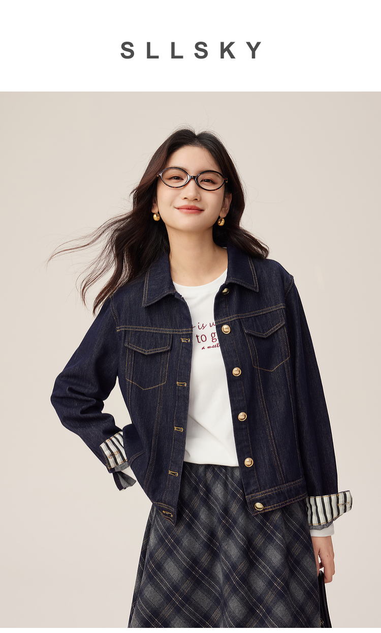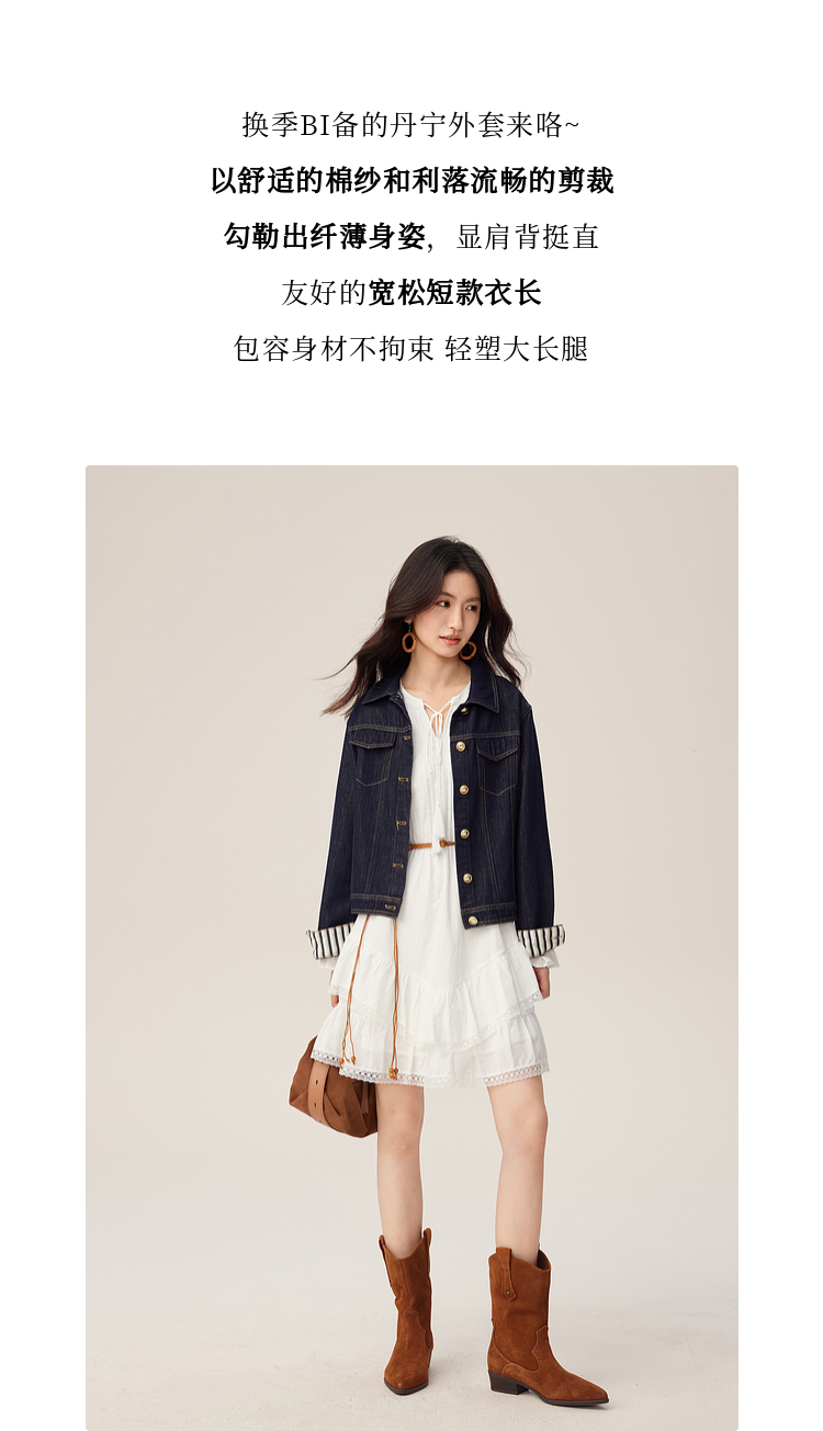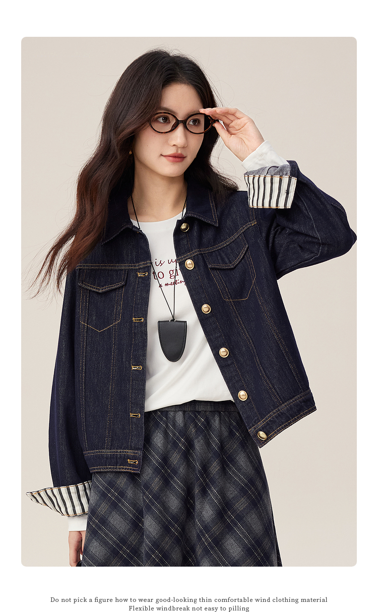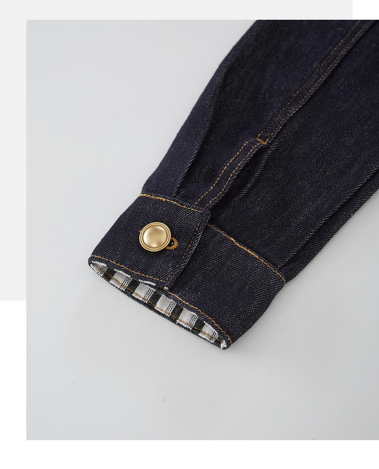 【08/27新品】熙世界原色牛仔外套女秋季2025新款设计感撞色翻边袖牛仔开衫上衣