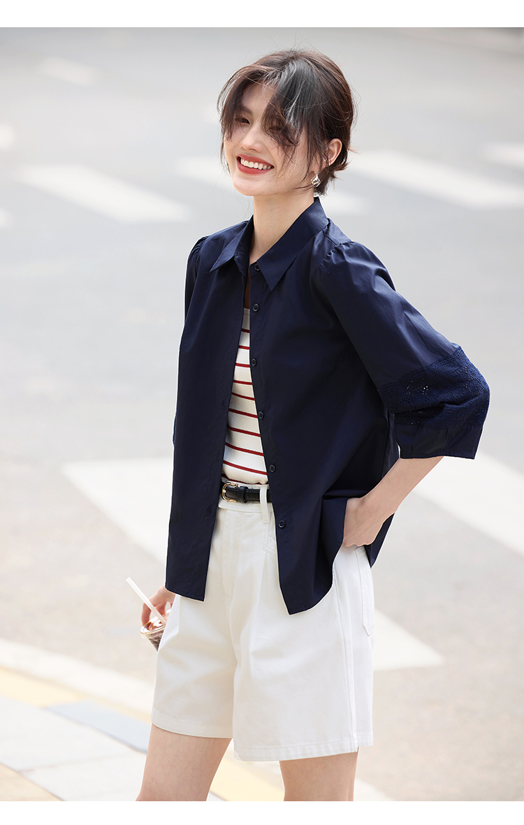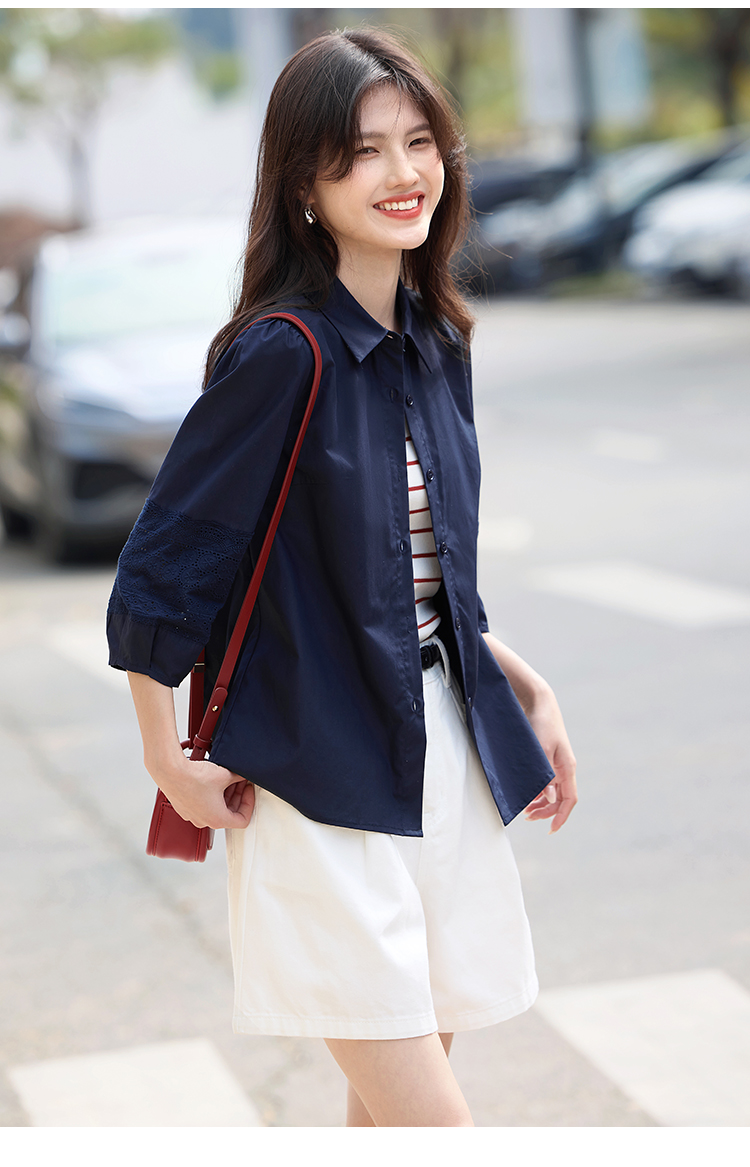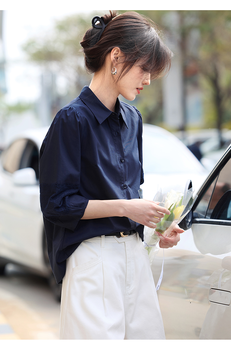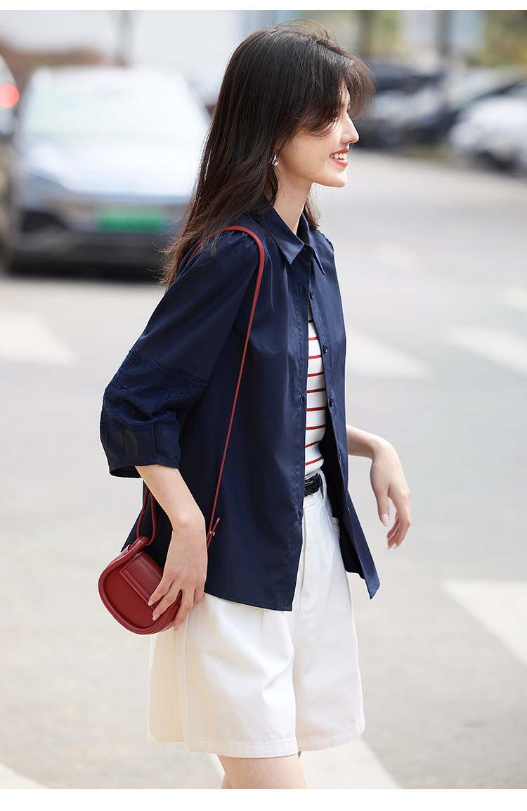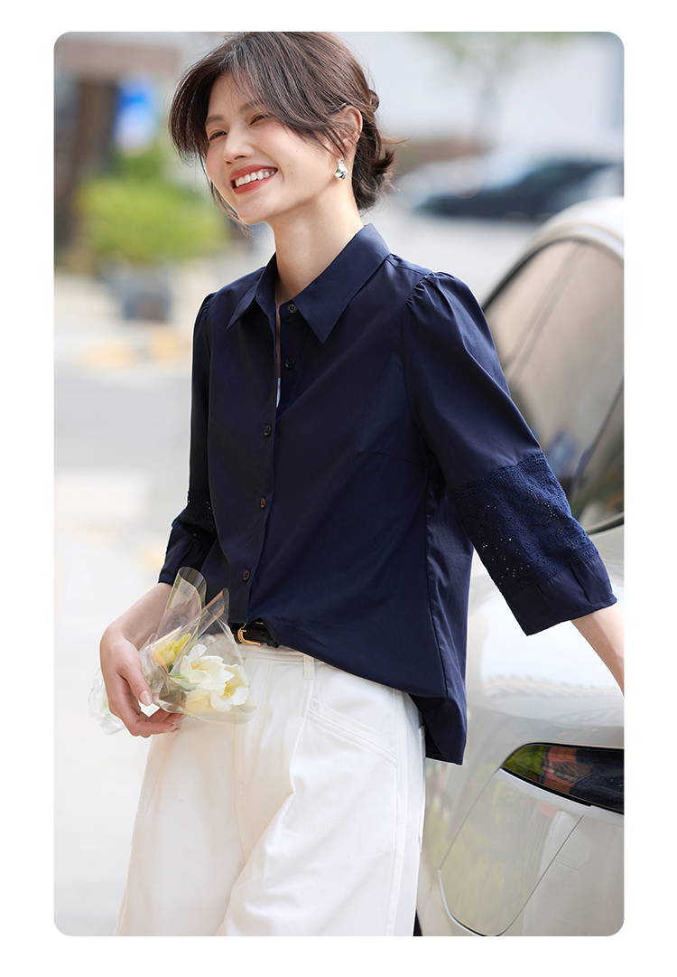 【年终特卖】熙世界七分袖天丝衬衫女2025初秋款法式洋气设计感衬衣中袖上衣