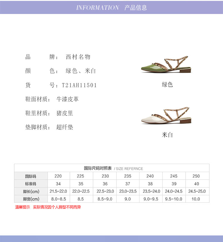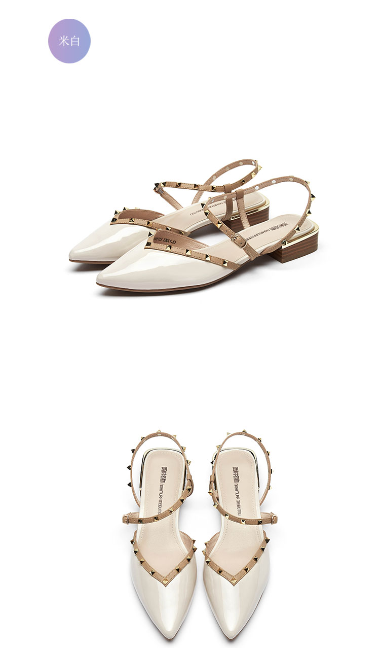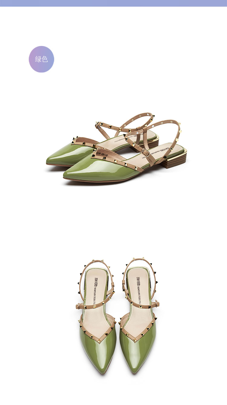 2021年夏季新款女鞋包头凉鞋尖头低跟牛漆皮平跟时装凉鞋T21AH15011
