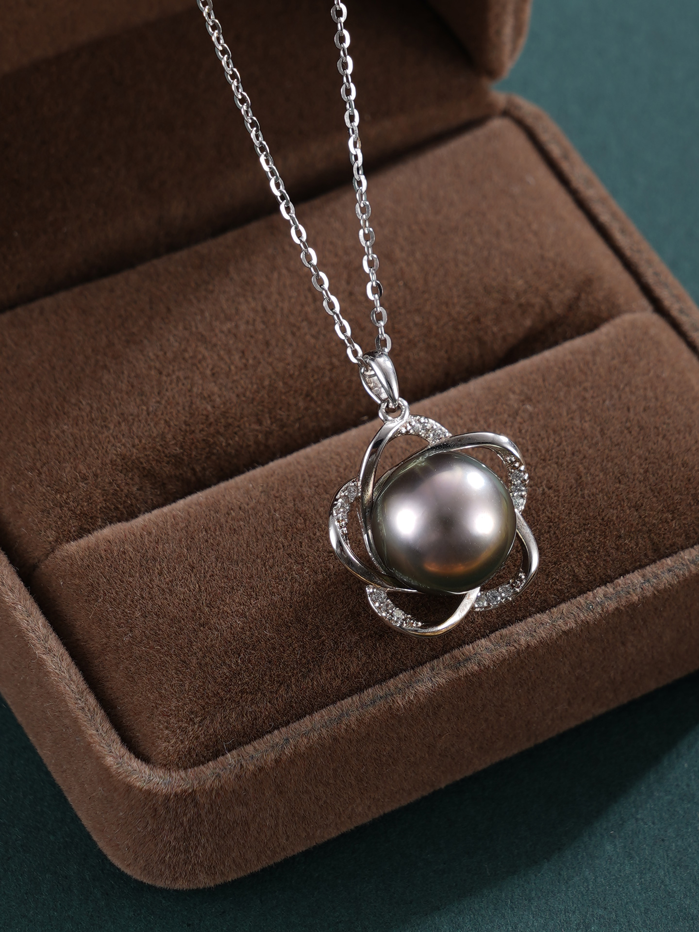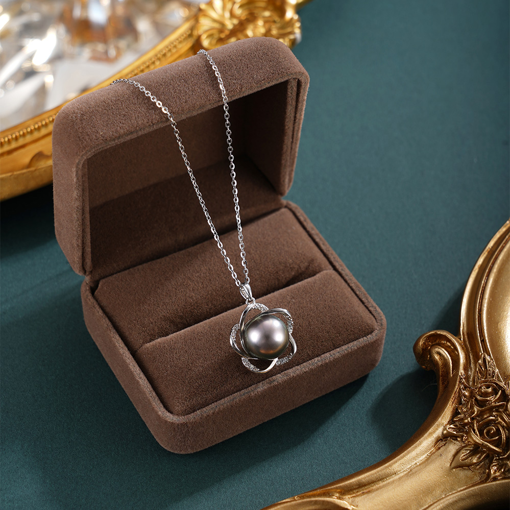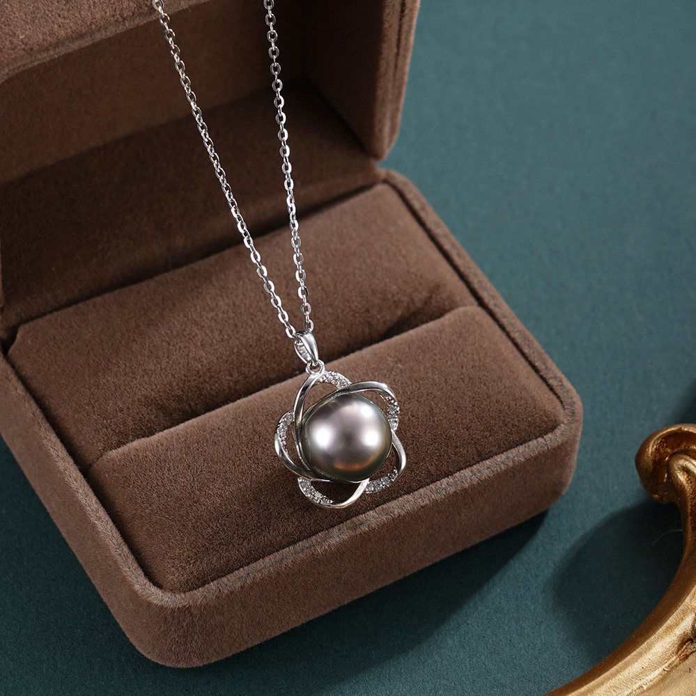 子佩集【花开墨恋】银S925珍珠惜王妃套链【HJYDZ008】10.5mm珠黑珠花绕五瓣花2601