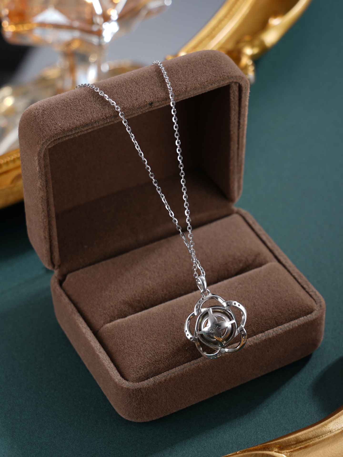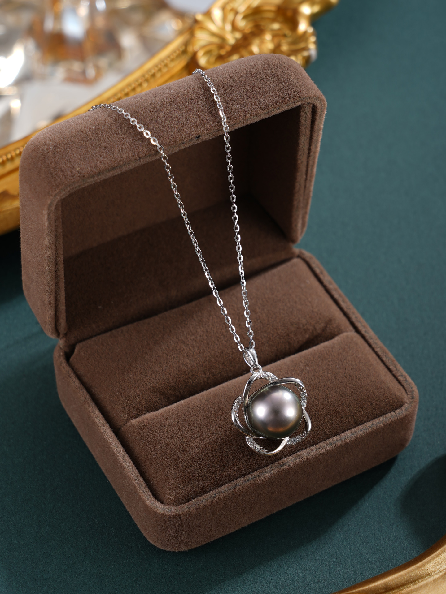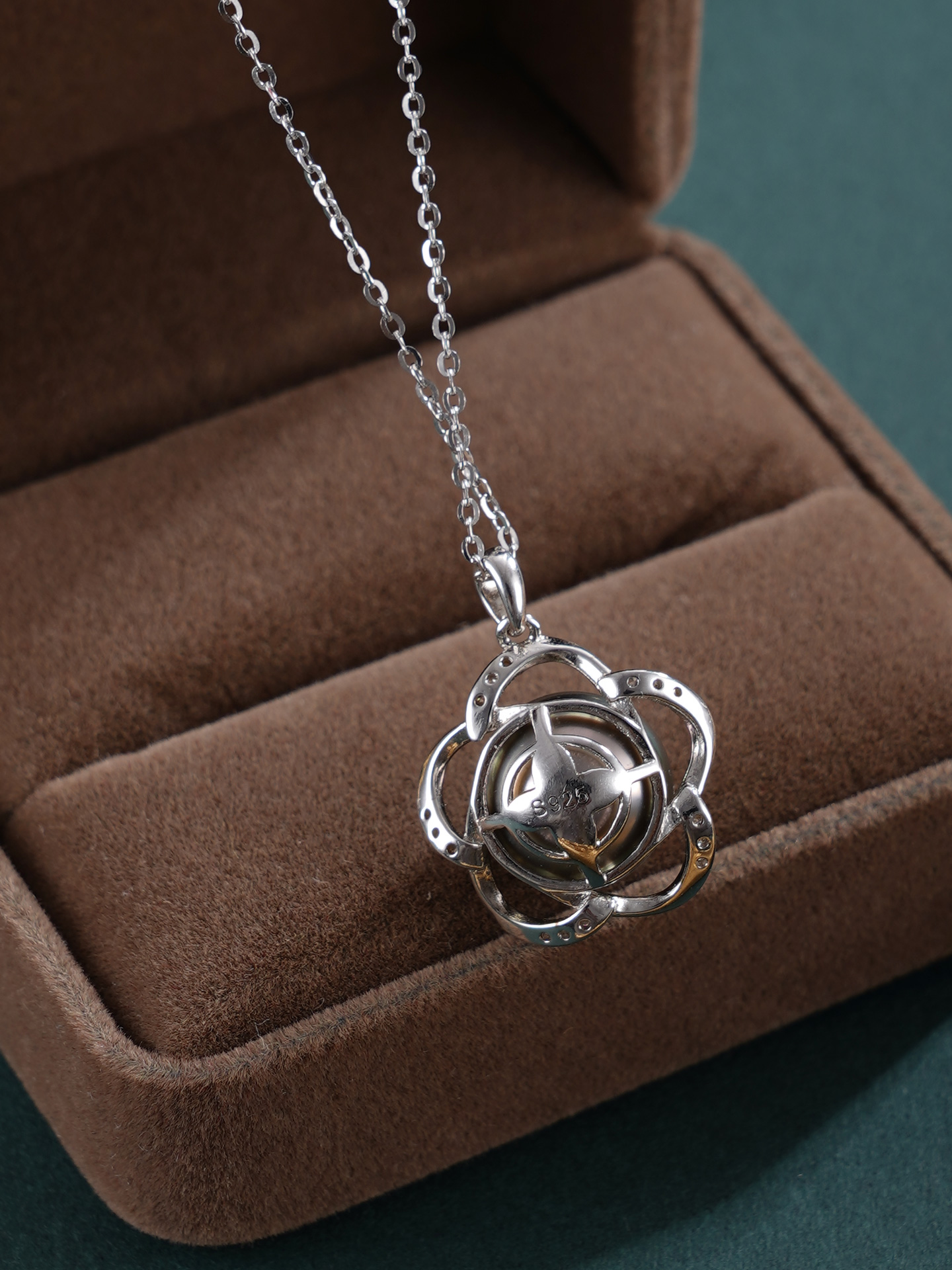 子佩集【花开墨恋】银S925珍珠惜王妃套链【HJYDZ008】10.5mm珠黑珠花绕五瓣花2601