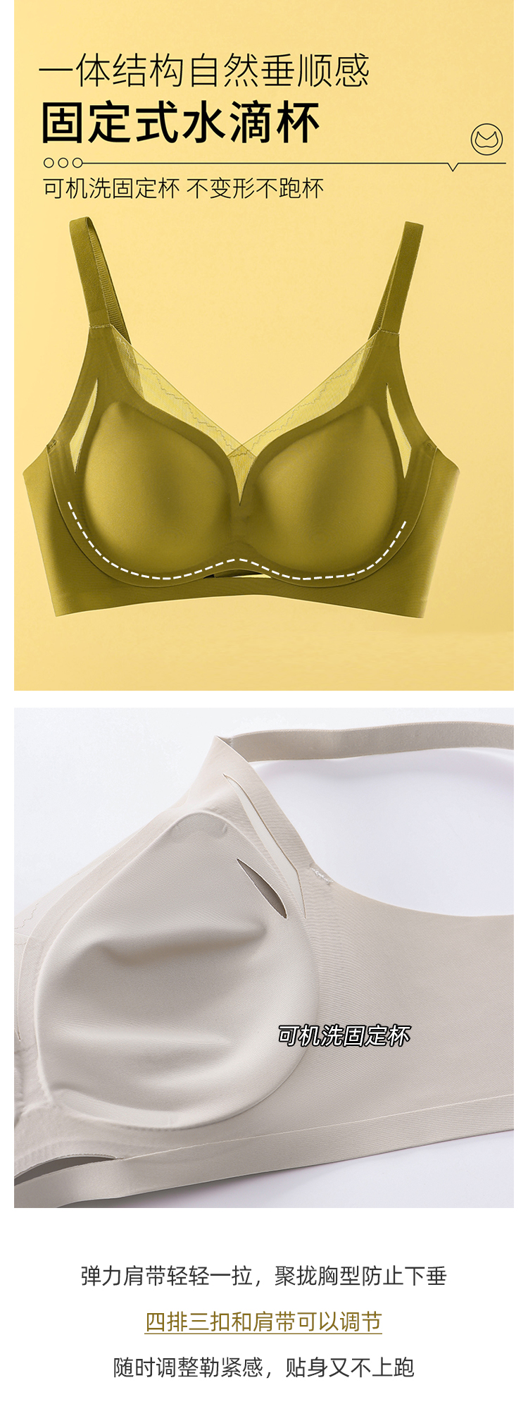 uu提拉塑形无痕固定式一体水滴杯内衣,性感薄纱舒服透气,包裹性强,隐形侧收副乳,无钢圈,轻薄杯,杯口高质感网纱拼接,杯面光滑无痕设计,高弹亲肤肩带