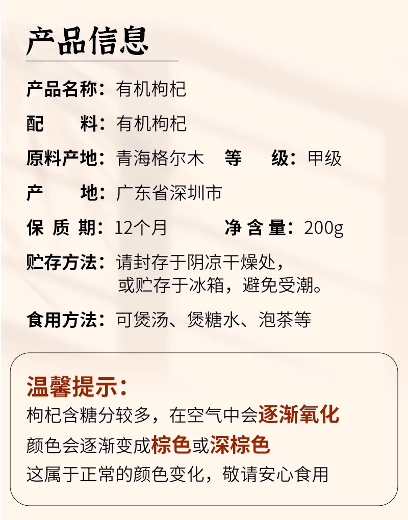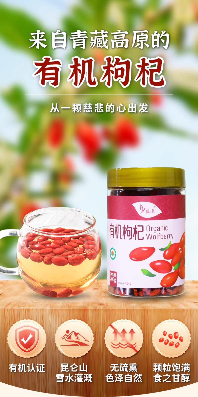 悦意有机枸杞子干货青海免洗即食新鲜泡茶水红枸杞零农残无硫熏