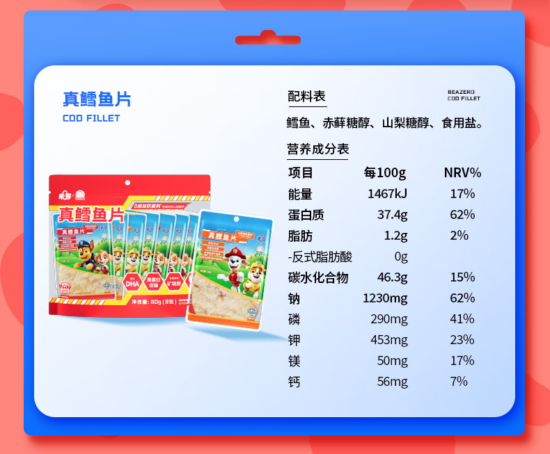 【双12】未零汪汪队真鳕鱼片儿童零食添加深海鳕鱼肉大包装
