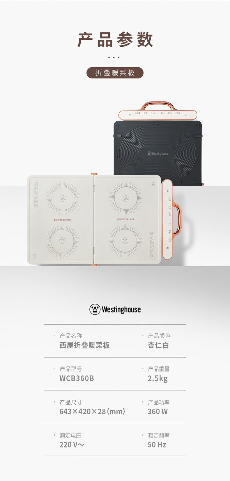 【分仓直发包邮】西屋Westinghouse-折叠暖菜板WCB360B