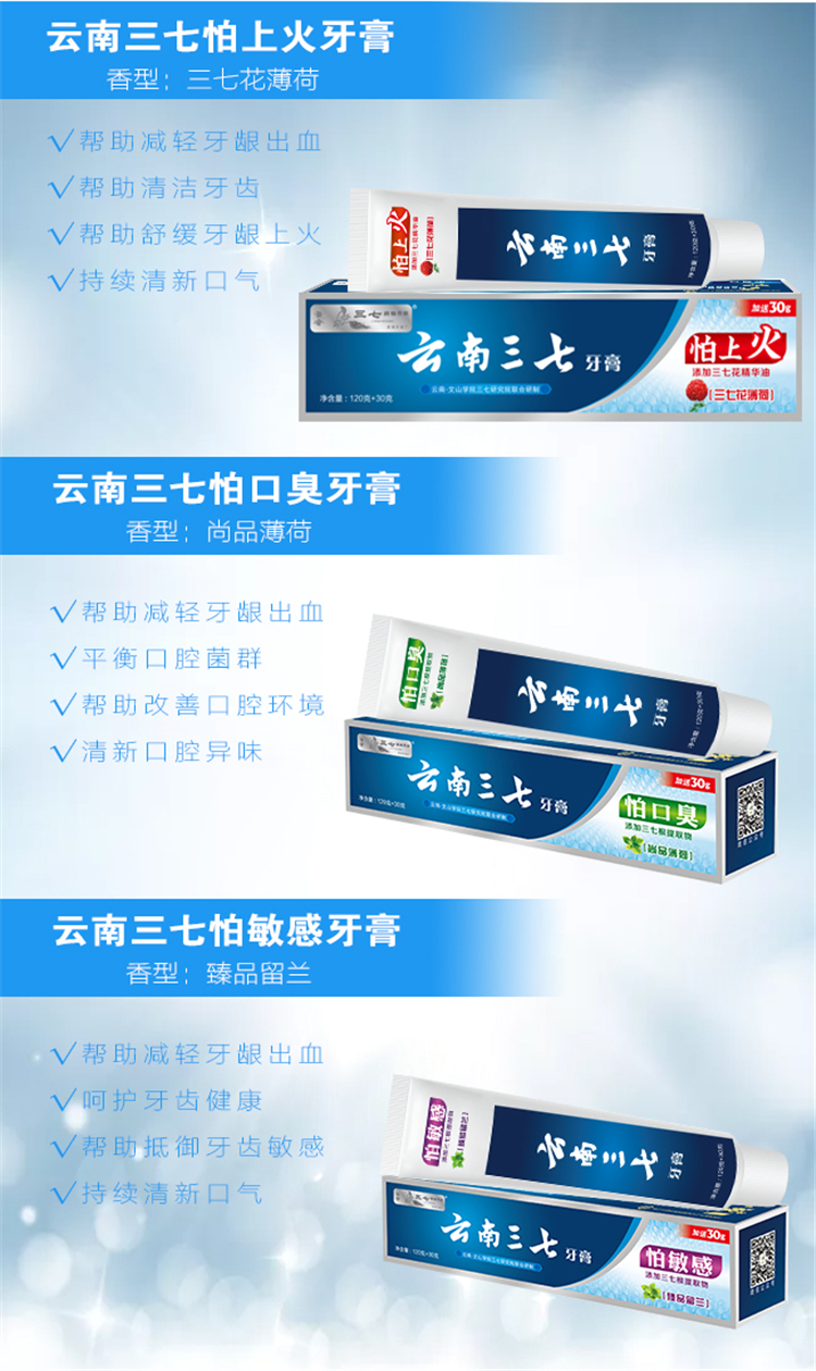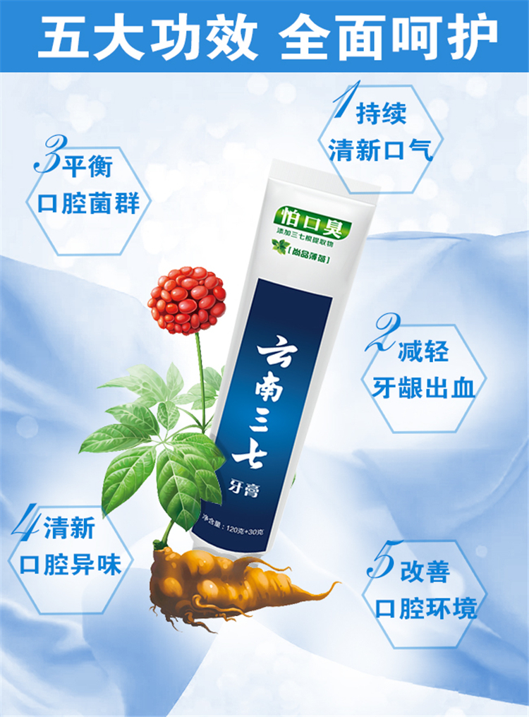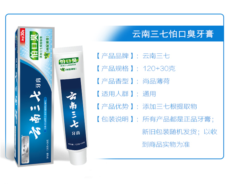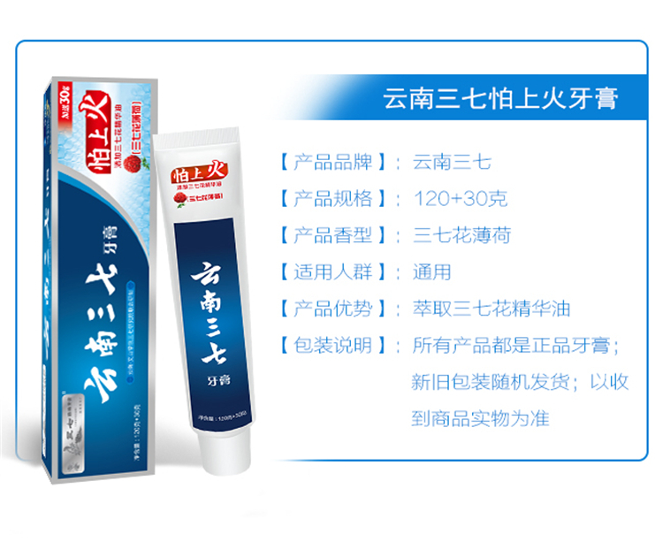 云南三七怕上火牙膏:三七花薄荷120g+30g
