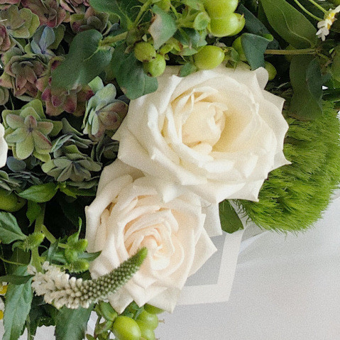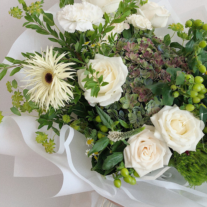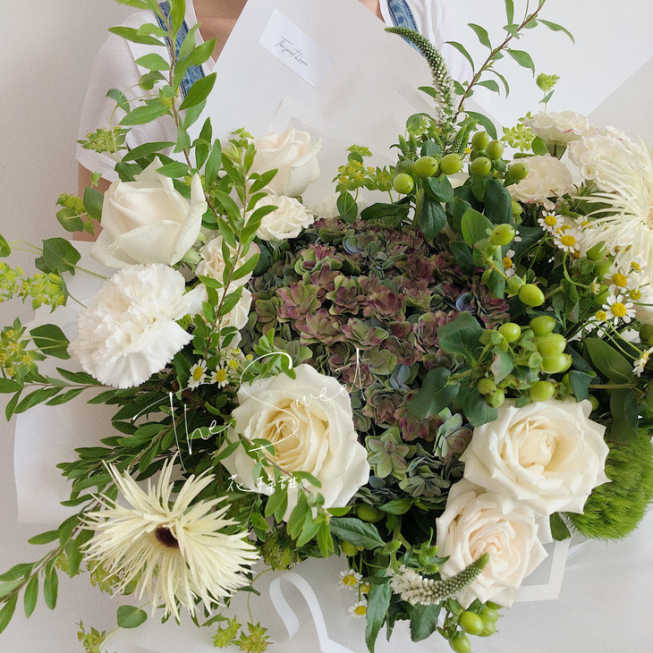 莫奈绣球 绿珠 拉丝弗朗 鼠尾 奶白色玫瑰 石竹 叶上黄金