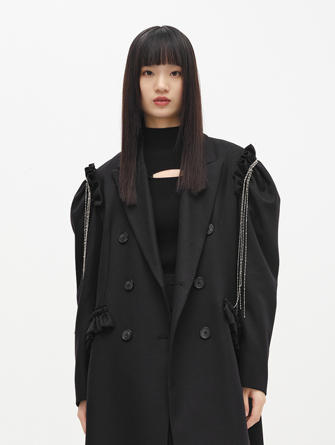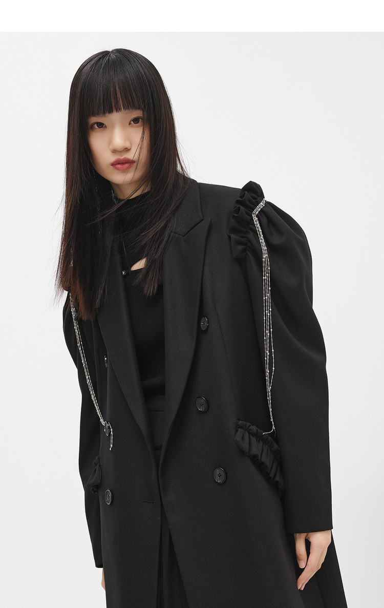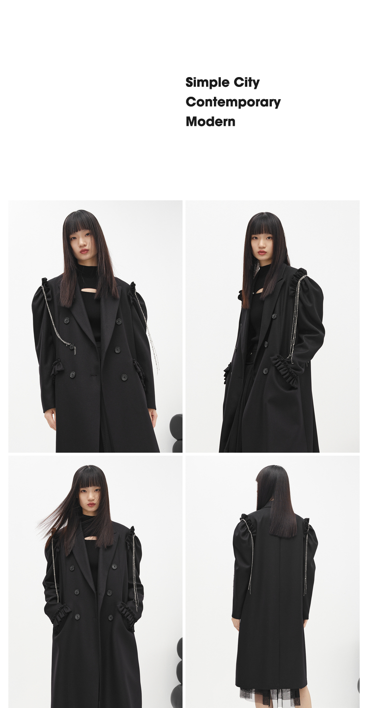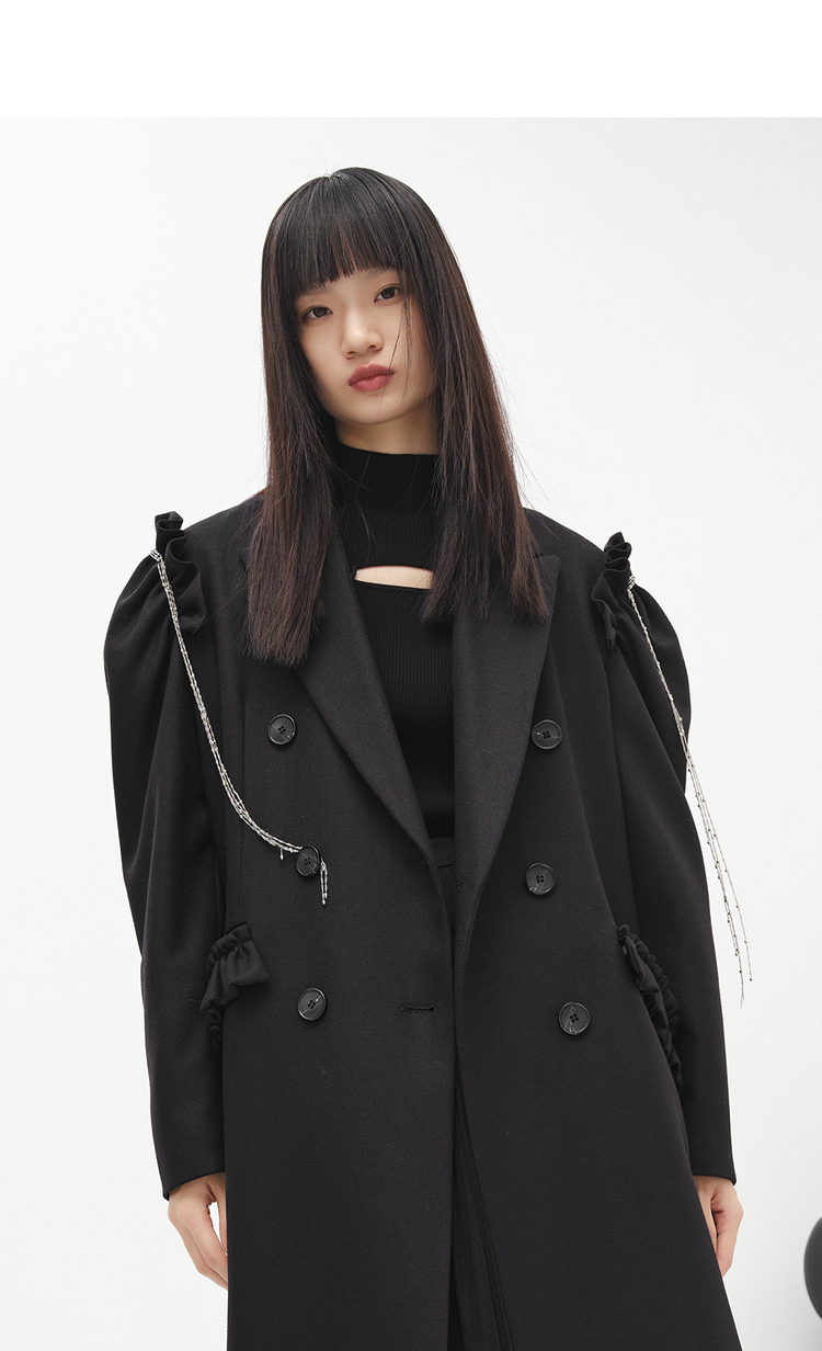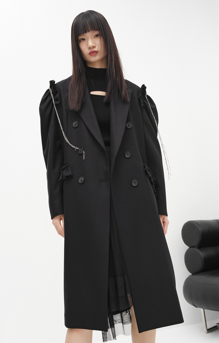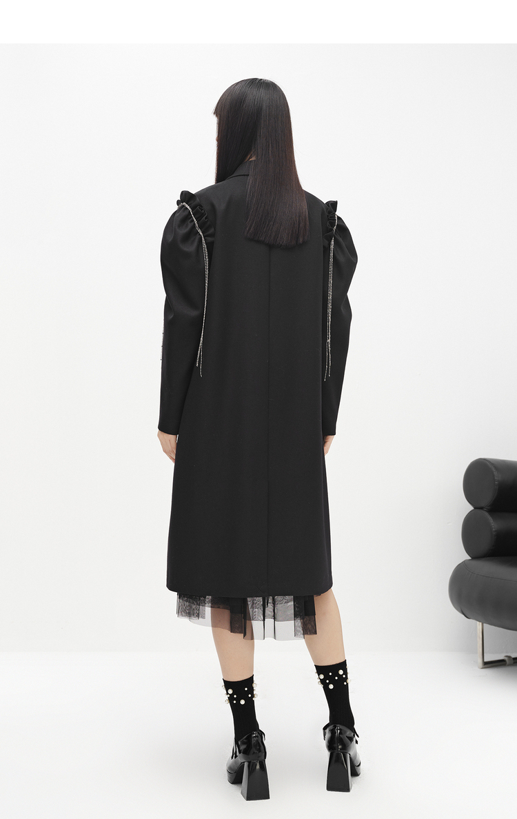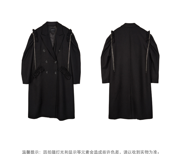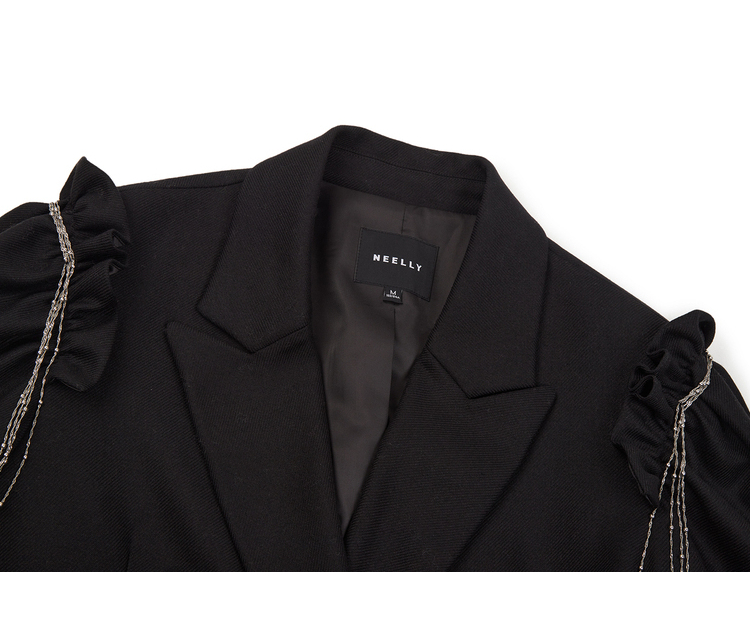 NEELLY纳俪商场同款冬季新款毛呢外套女中长款泡泡袖双排扣大衣N22103C01076