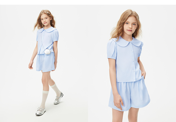 【纳维凯尔】【天丝亚麻】【120-165】Navigare意大利小帆船童装女童短袖套装
