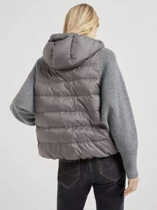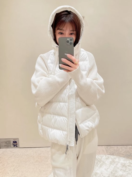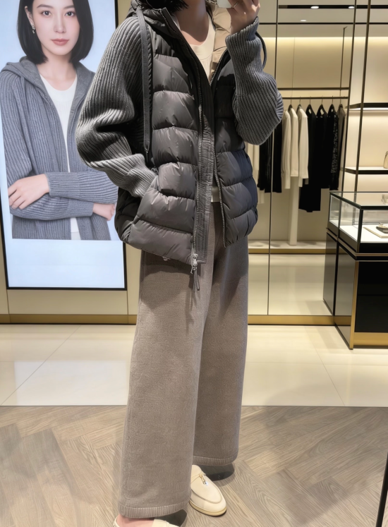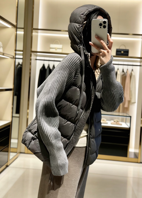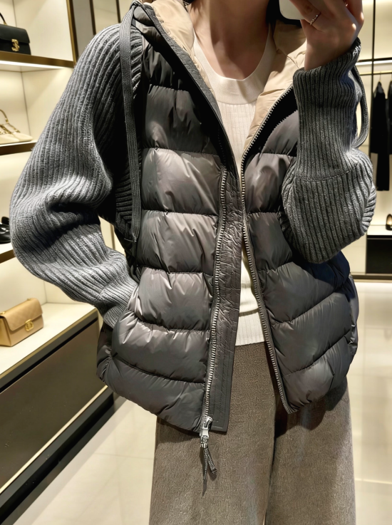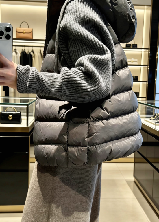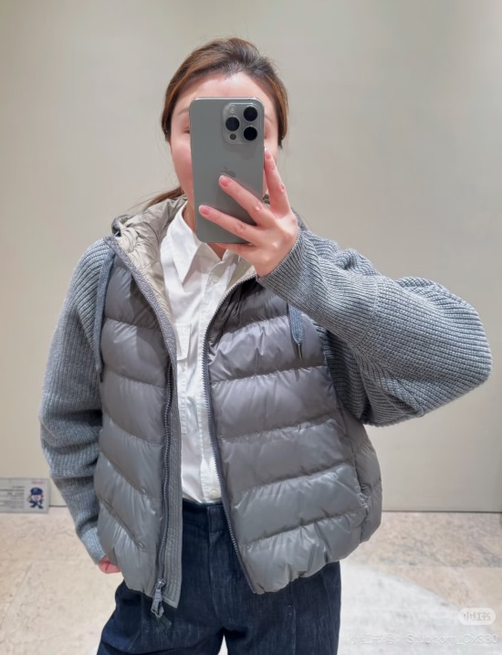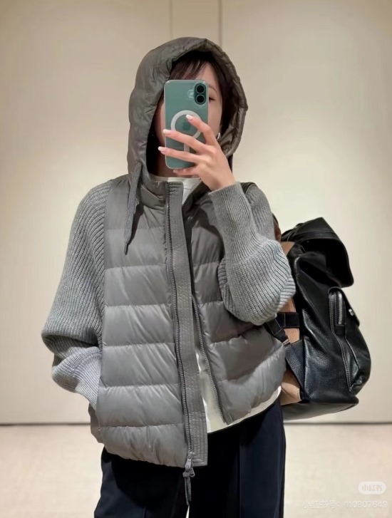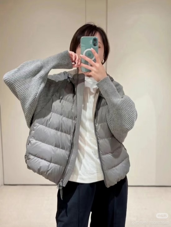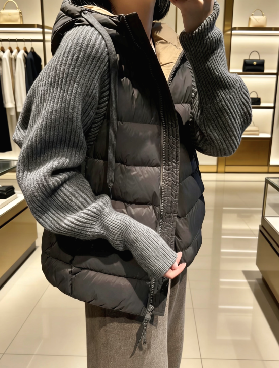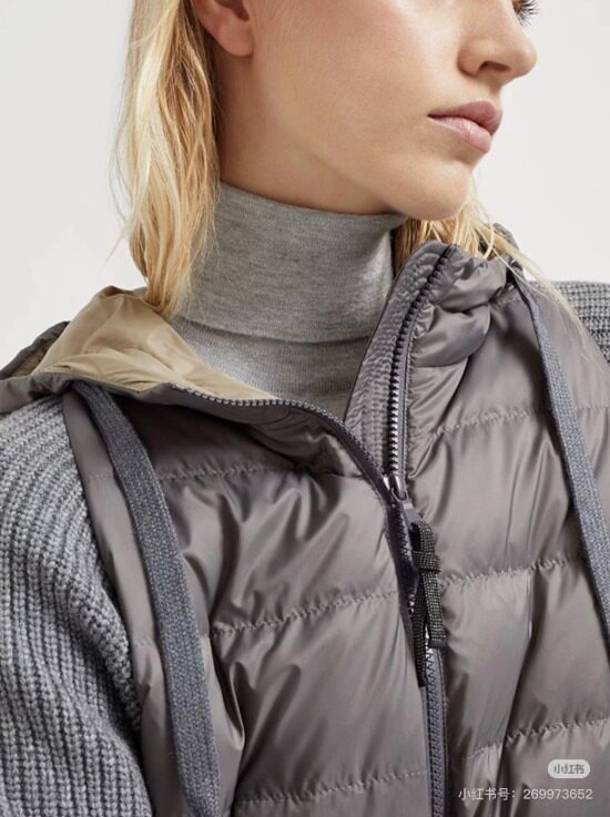 连帽款 帽帽里也有充绒 两侧可收紧抽绳 五金件都是枪色的