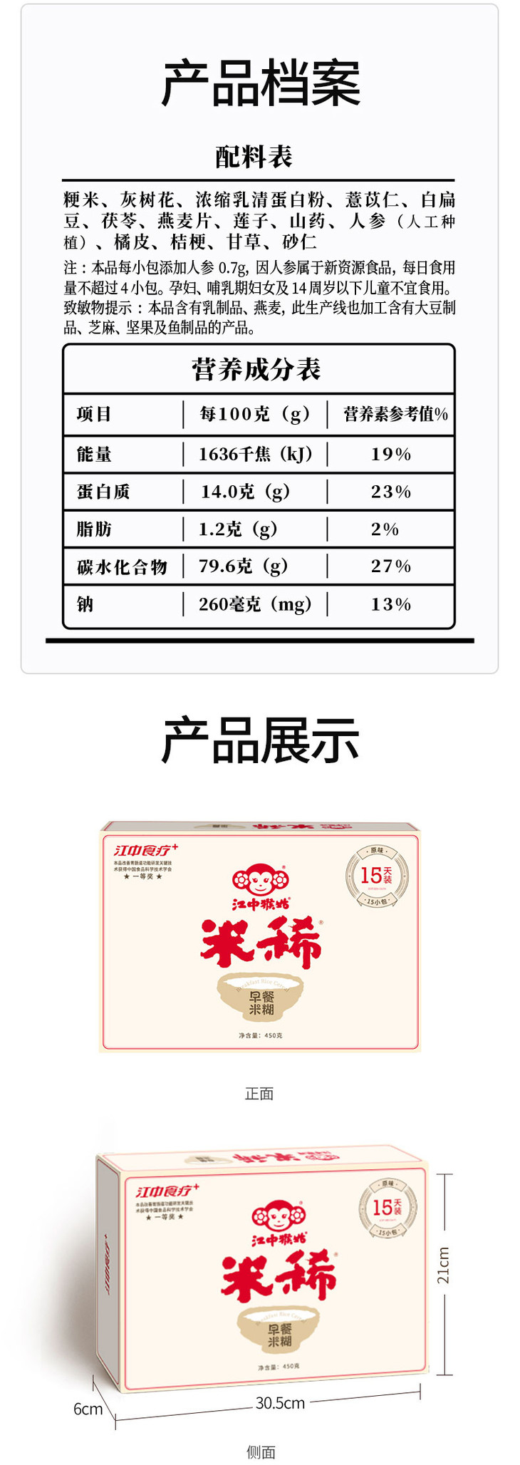 【半年卡专享】 江中猴姑米稀·米糊 15天装灰树花米稀/12天黑芝麻米稀