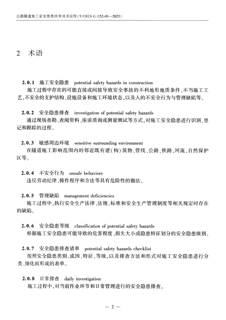 公路隧道施工安全隐患排查技术规程(T/CECS G:C52-01—2023)
