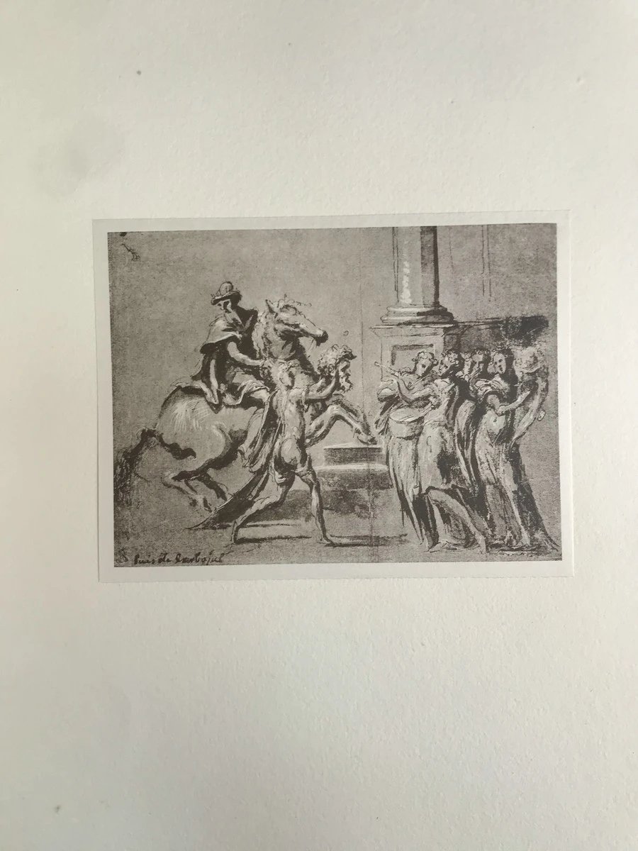 著名艺术史学者奥古斯特·L·迈耶(August L. Mayer)遴选并编辑,于1915年由美洲西班牙学会(Hispanic Society of America)在德国莱比锡出版,共计两册大开本画夹形式,收录150幅源自16至19世纪西班牙艺术家的素描原作,经精美光印工艺(Lichtdruck)复制,并装裱于厚质布纹卡纸之上。配有迈耶撰写的导言文字,为观者提供了学术性的艺术背景解析。此作收录了包括贝塞拉(G. Becerra)、帕切科(F. Pacheco)、里巴尔塔(F. Ribalta)、何塞·德·里贝拉(J. de Ribera)、奥伦特(P. Orrente)、埃斯皮诺萨(J. Espinosa)、苏尔巴兰(F. de Zurbarán)、穆里略(Murillo)、委拉斯开兹(Velázquez)、里奇(F. Rizi)、戈雅(F. Goya)以及老卢卡斯(Luckas el Viejo)等多位西班牙绘画巨匠的手稿选粹,展现了西班牙绘画从文艺复兴至浪漫主义时期的发展脉络。此作品不仅为研究西班牙绘画提供了第一手的视觉文献,也是20世纪初期艺术出版的精品之作,极受收藏家与艺术史学界重视。该书亦被Arntzen/Rainwater(L 75)与Chamberlin(1120)艺术书目权威著录。