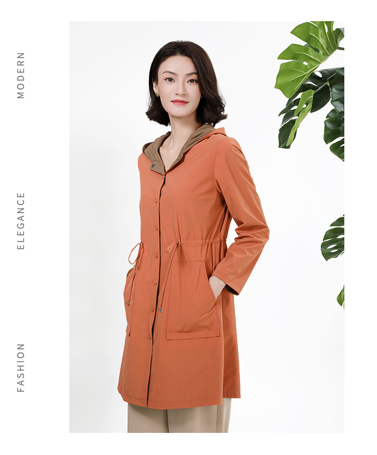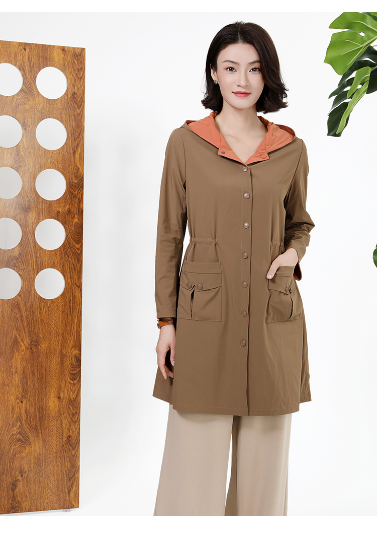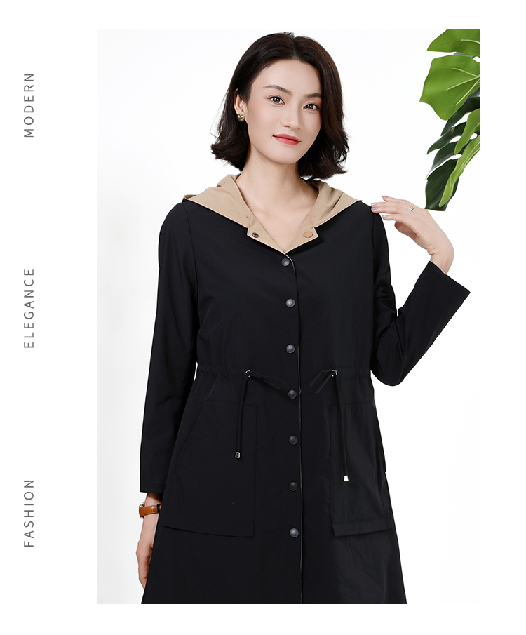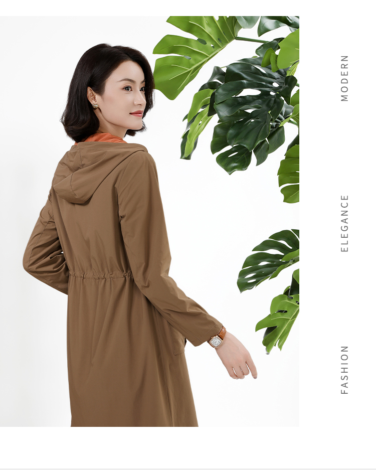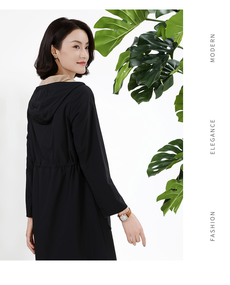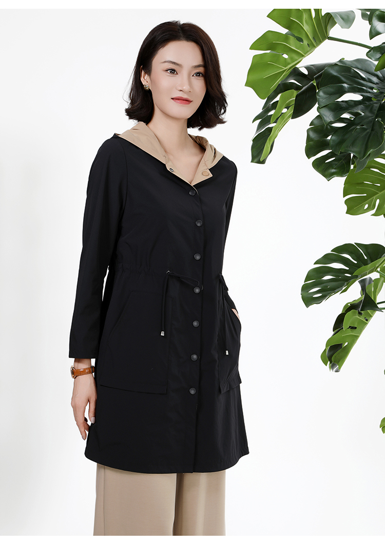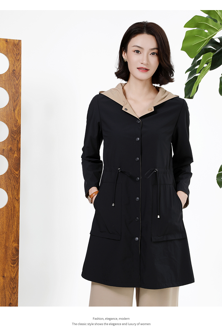 佐尔美复古双面穿抽绳连帽显瘦中长款风衣外套女M43FZ12