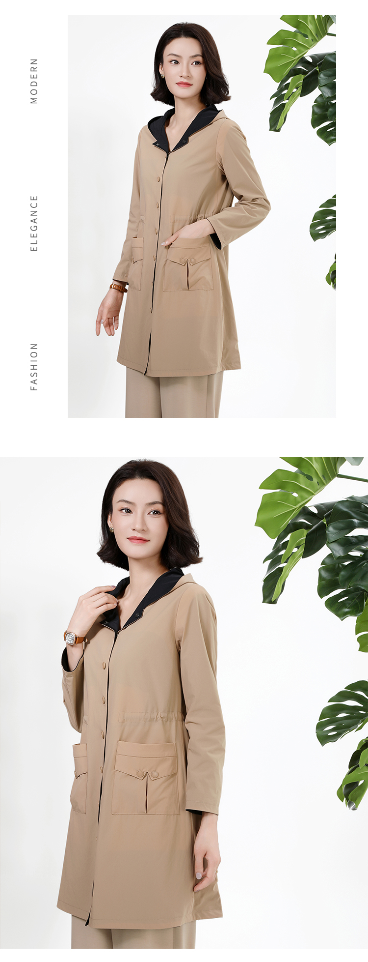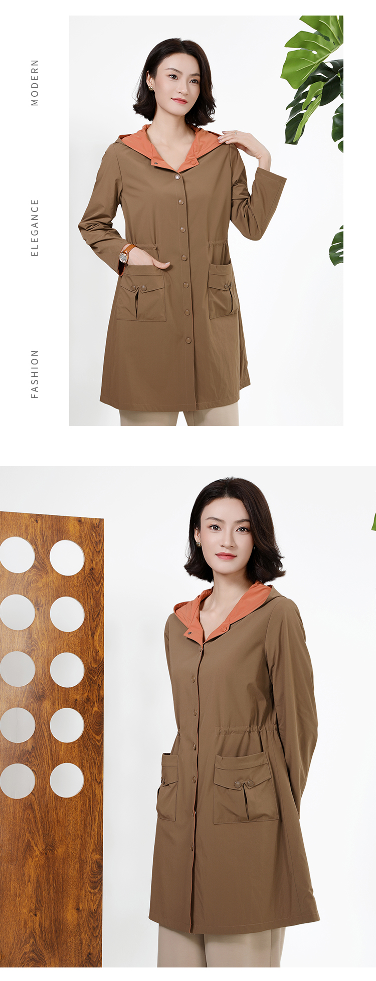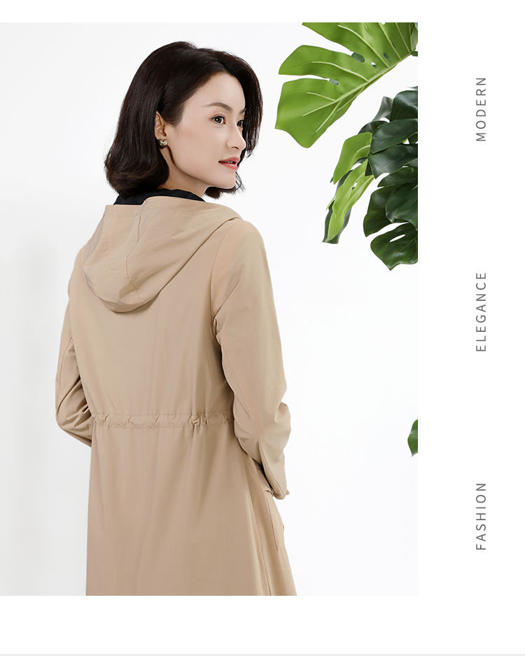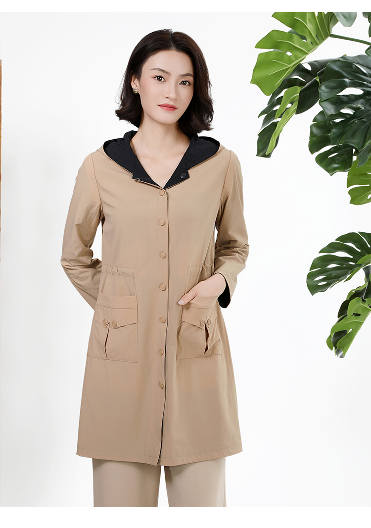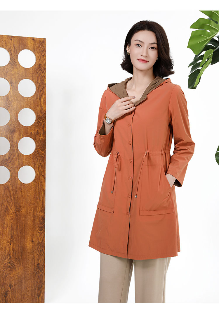 佐尔美复古双面穿抽绳连帽显瘦中长款风衣外套女M43FZ12