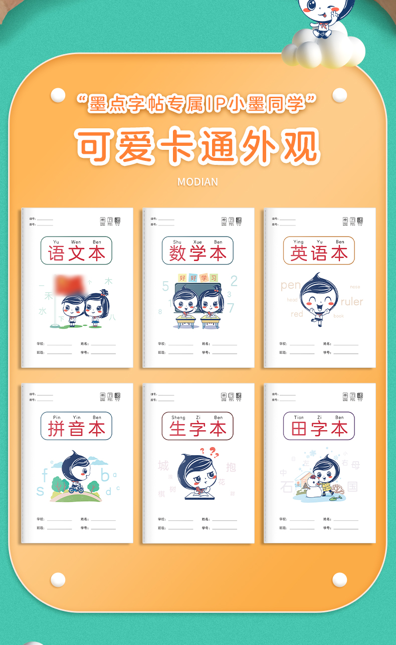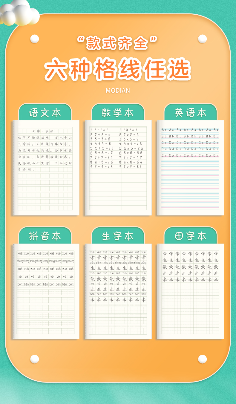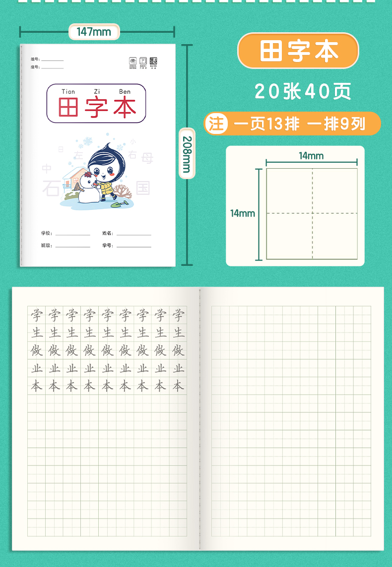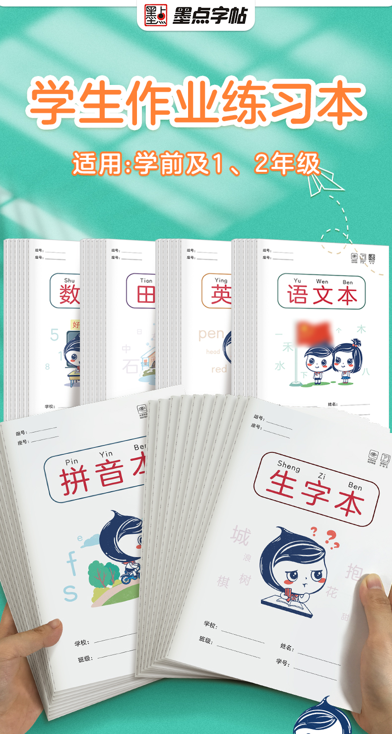 作业本小学生墨点田字格语文本数学本英语本记作业16k生字练习本幼儿园标准拼音本笔记本一二年级统一作业本