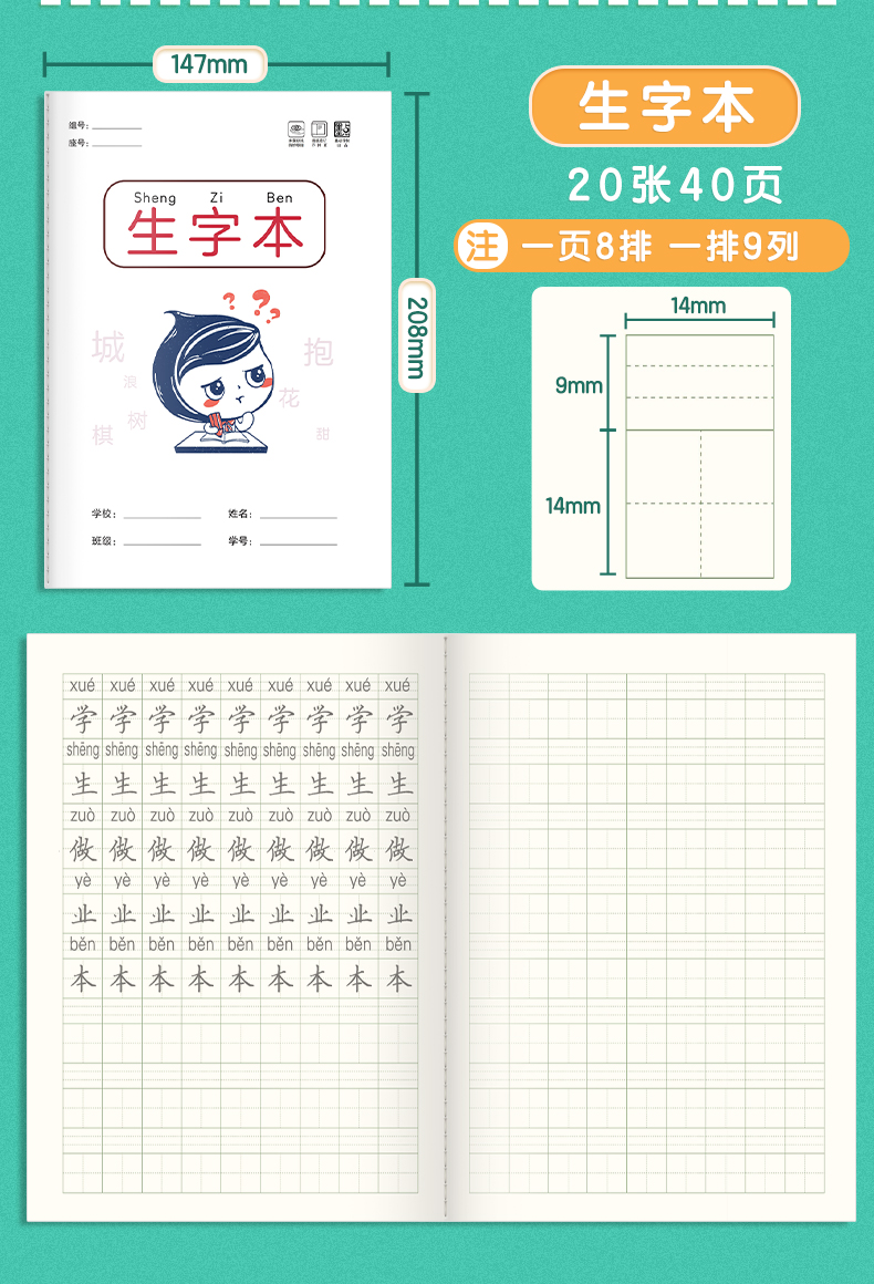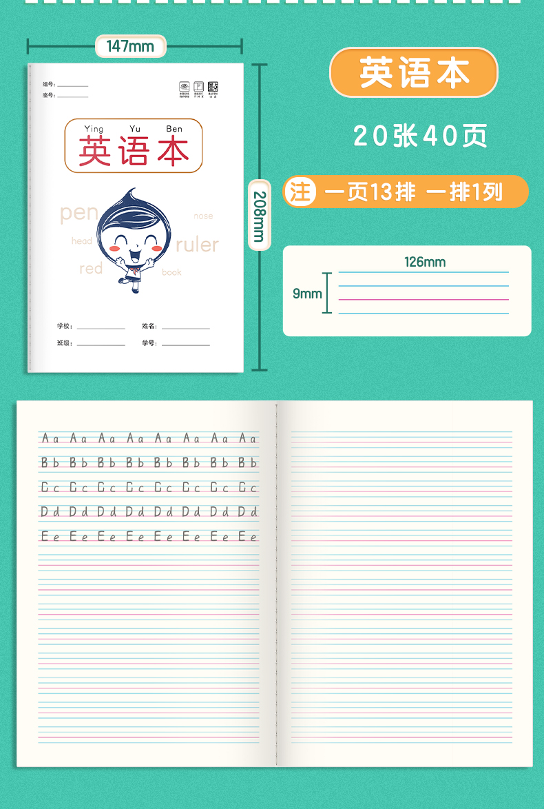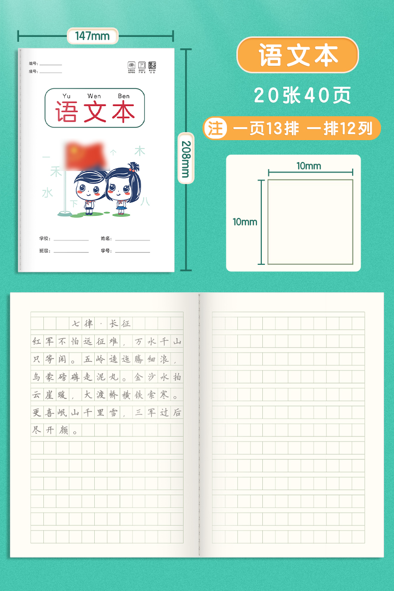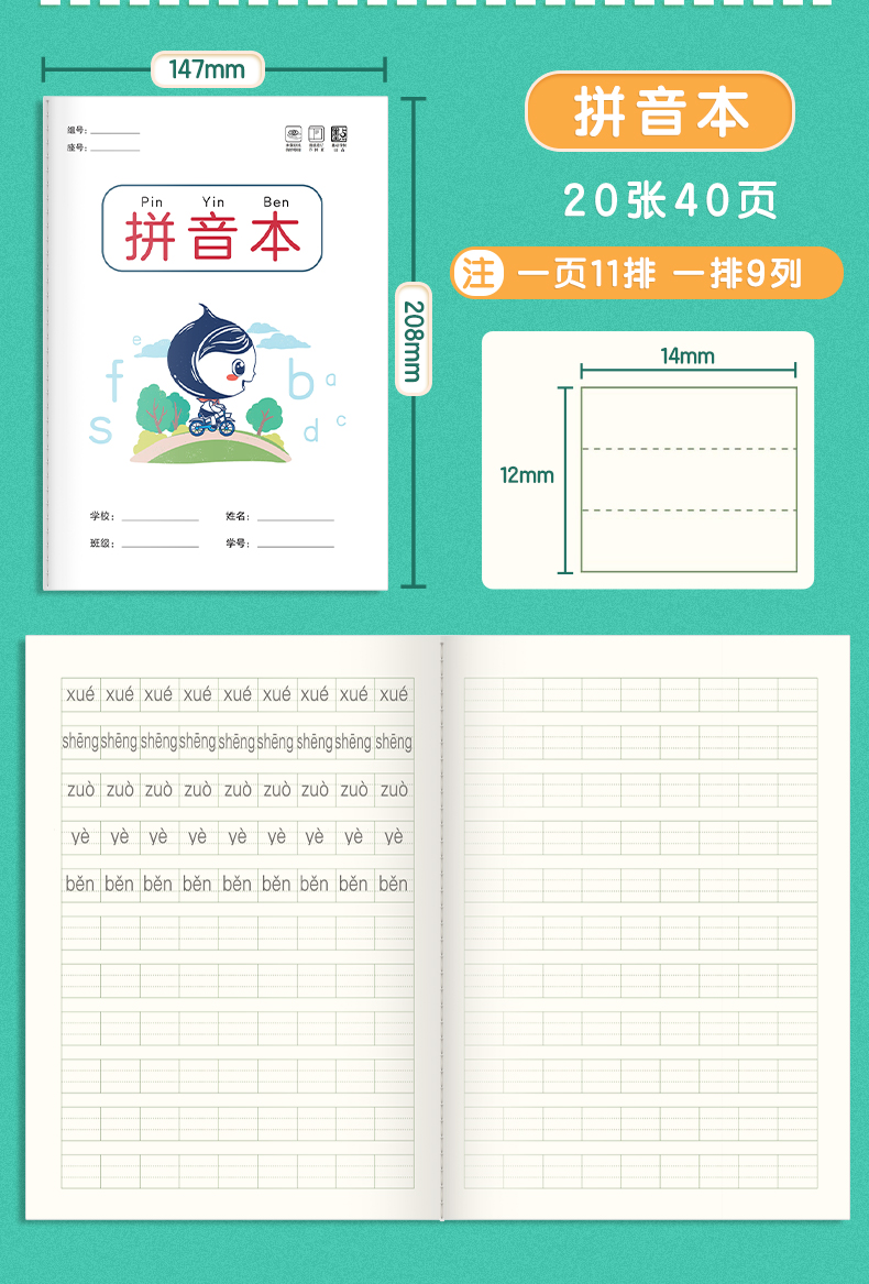 作业本小学生墨点田字格语文本数学本英语本记作业16k生字练习本幼儿园标准拼音本笔记本一二年级统一作业本