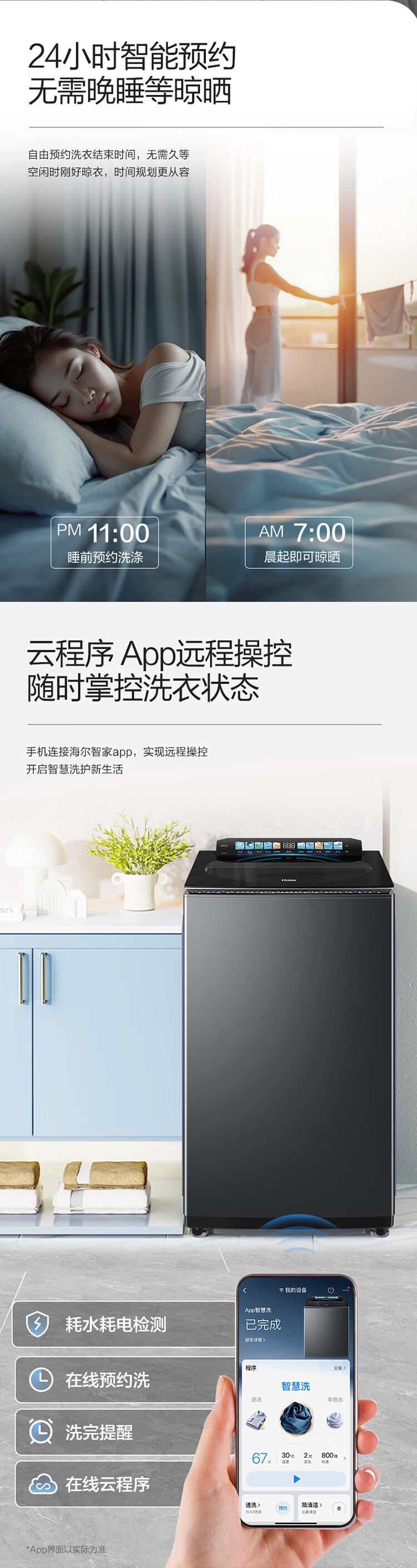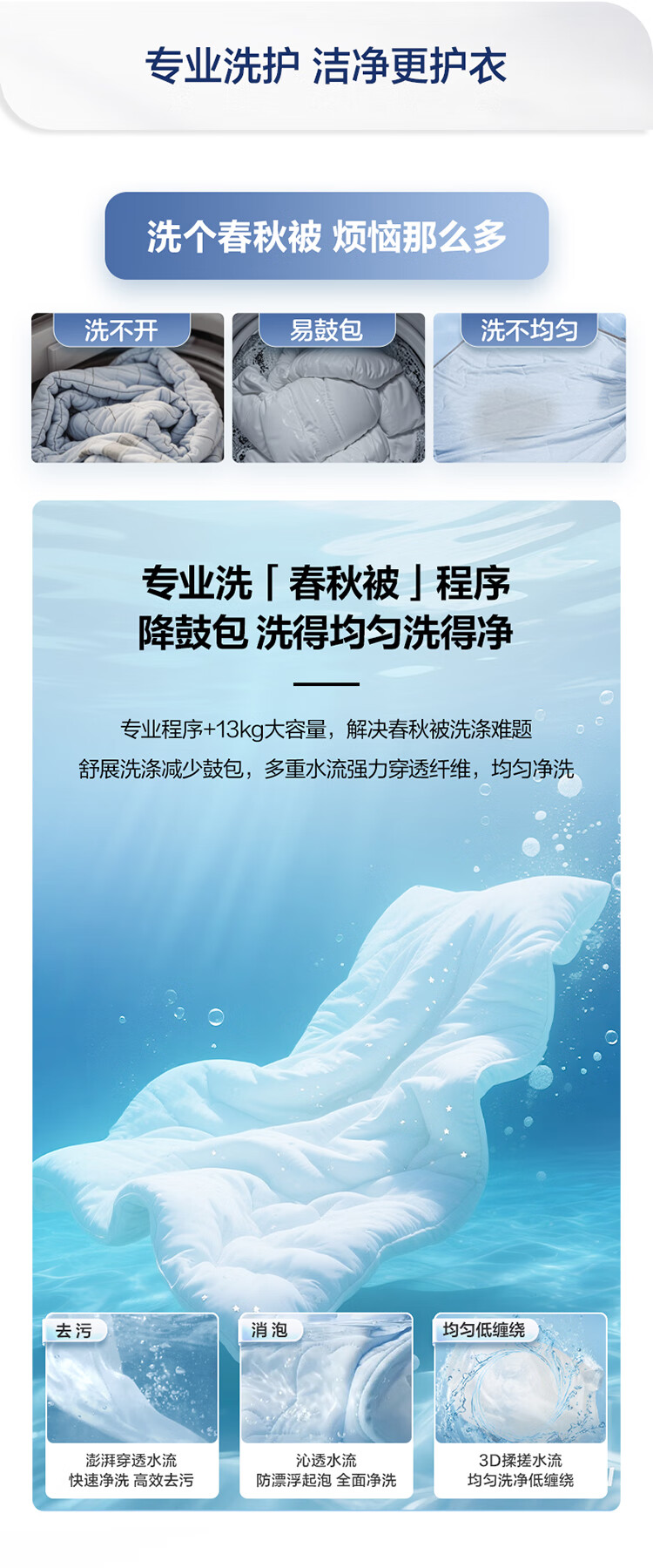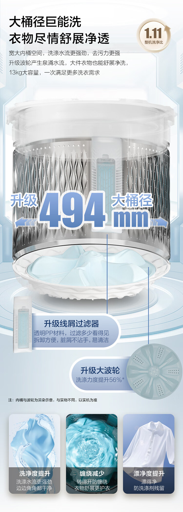 海尔(Haier)波轮洗衣机全自动13KG 25年新品丨双动力+智慧球+494大筒+智投精华洗 商场同款XQS130-MBDEV88A9U1