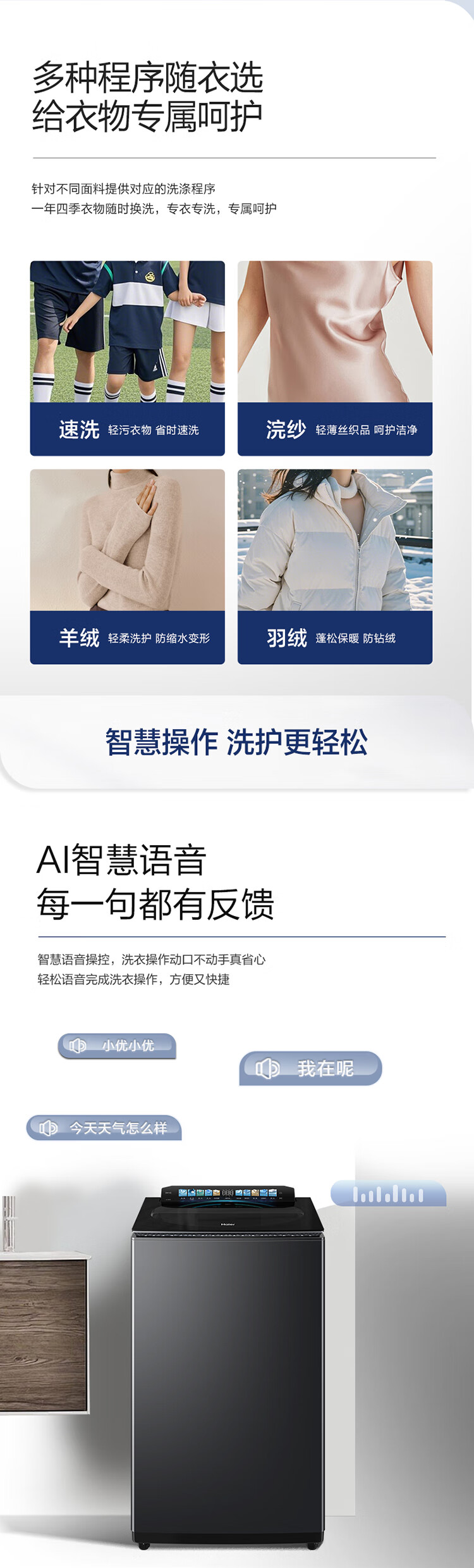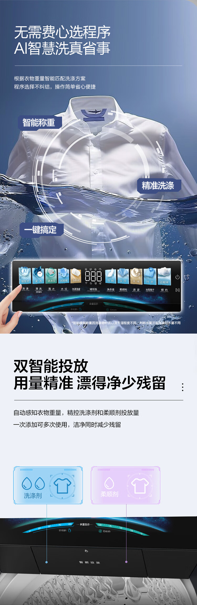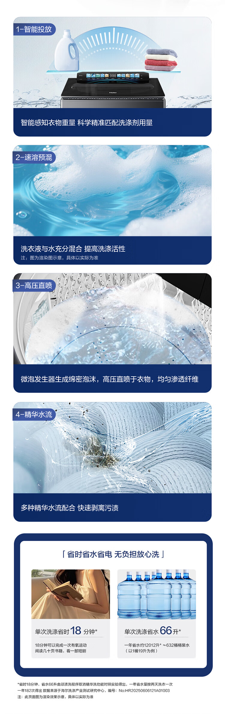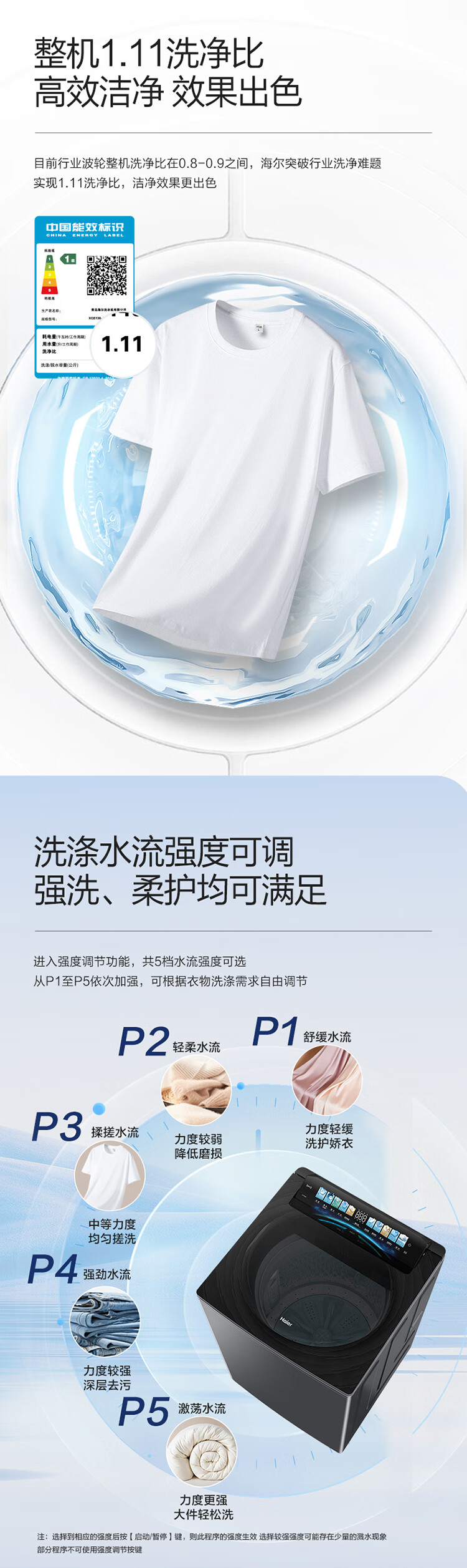 海尔(Haier)波轮洗衣机全自动13KG 25年新品丨双动力+智慧球+494大筒+智投精华洗 商场同款XQS130-MBDEV88A9U1