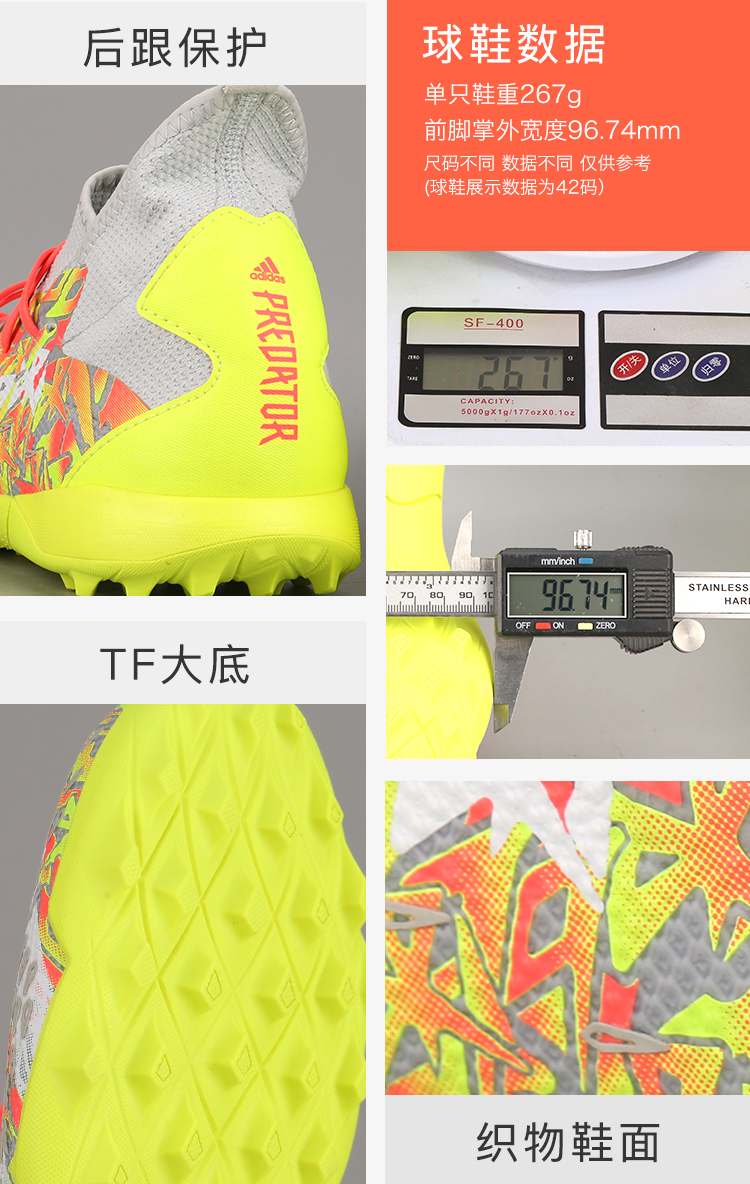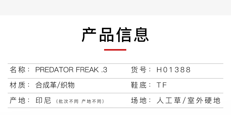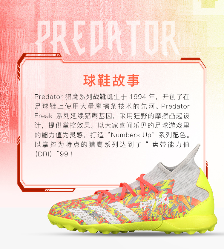 ADIDAS 猎鹰PREDATOR FREAK .3中端TF短钉足球鞋男H01388