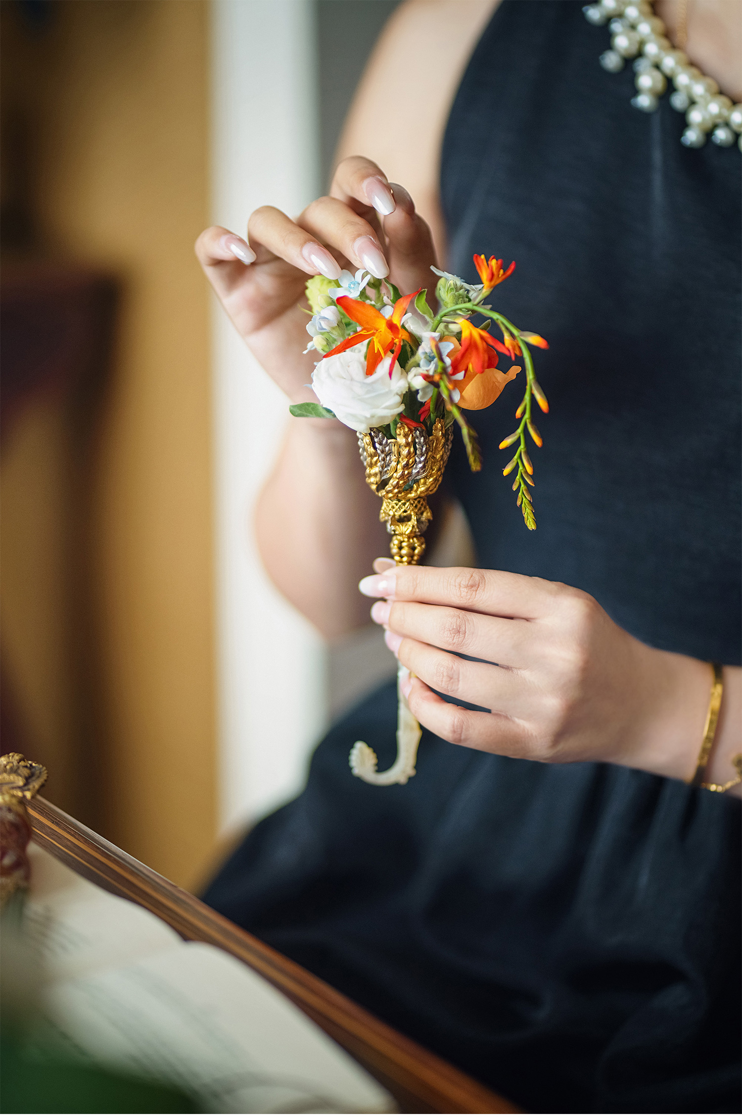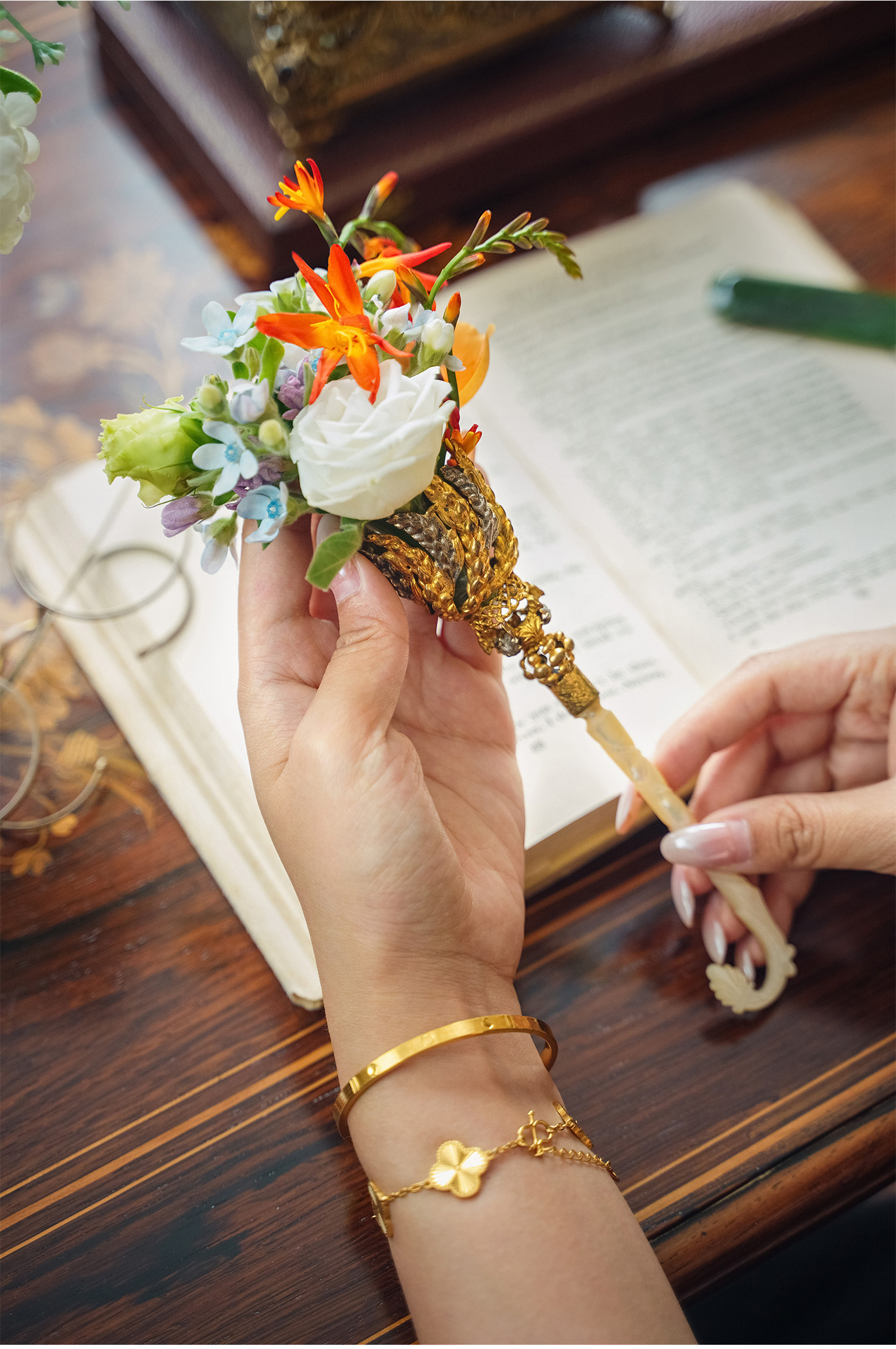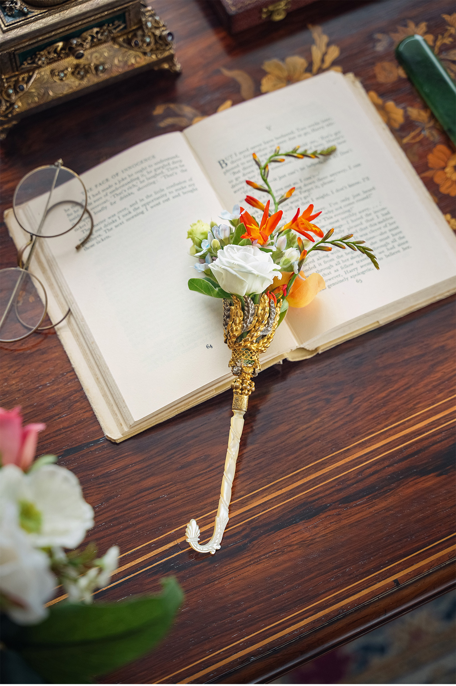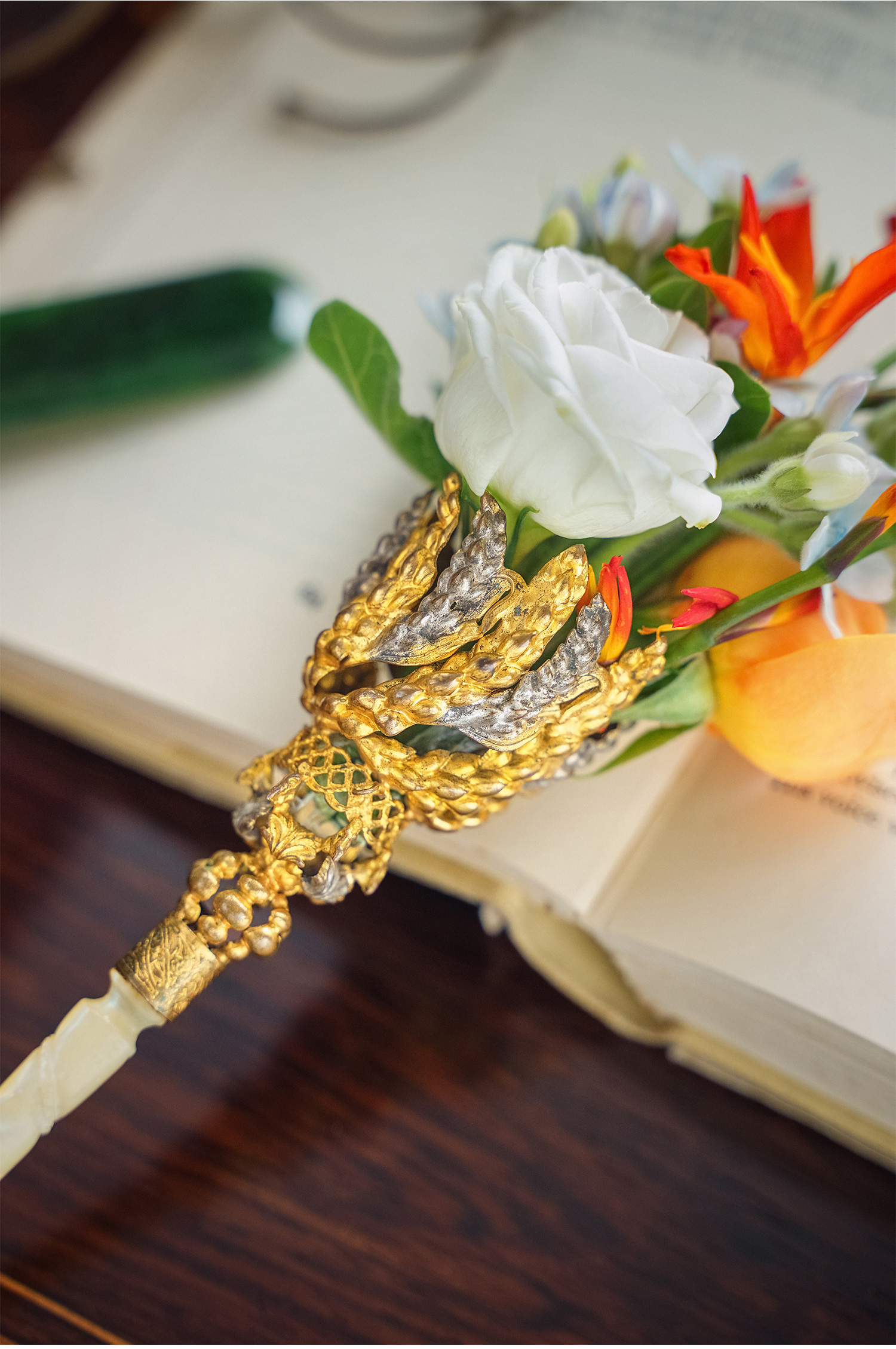 1850-1880年代法国出品麦穗主题铜鎏金精雕母贝手柄捧花棒