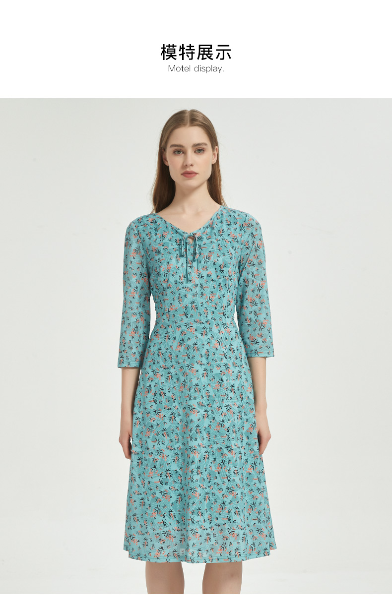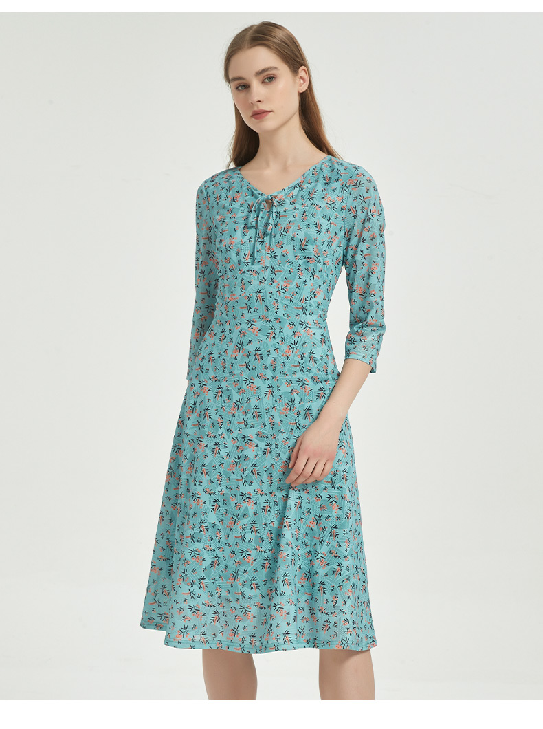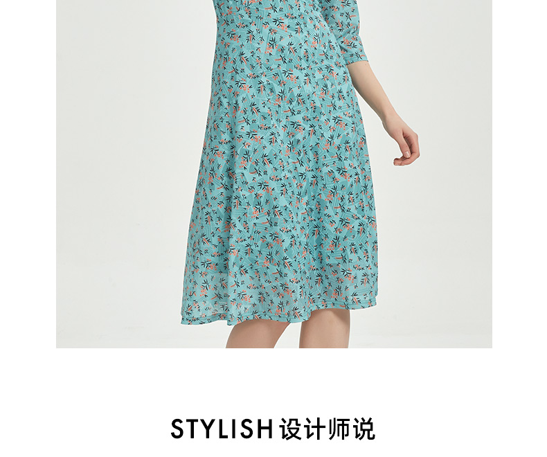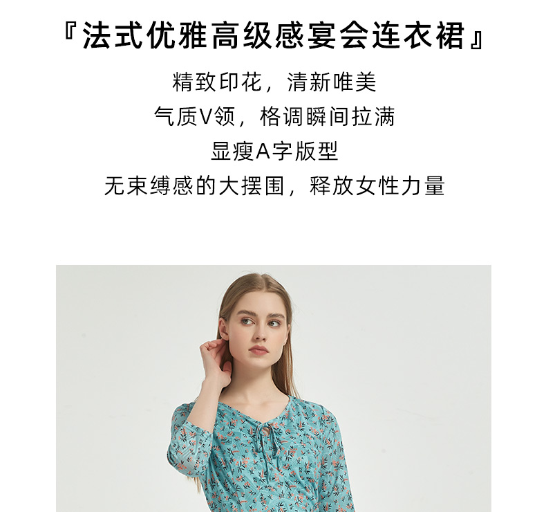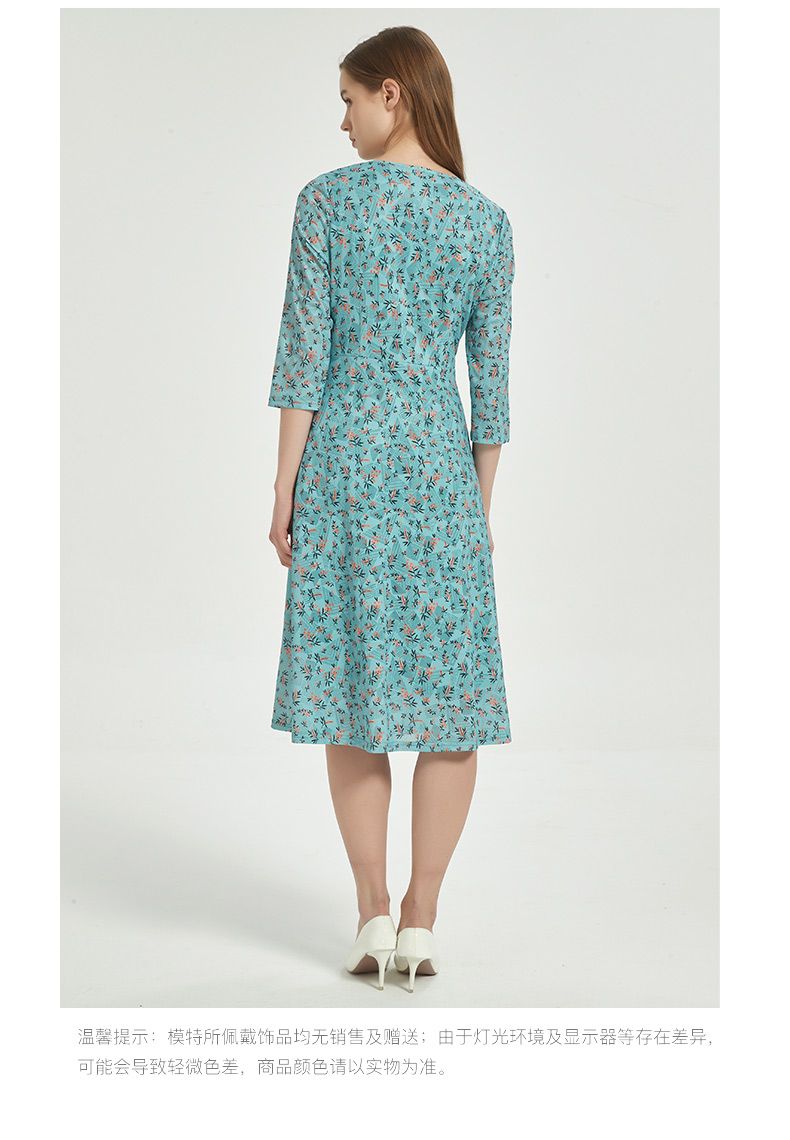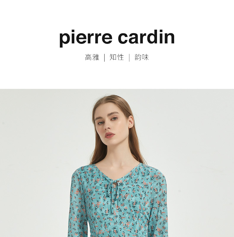 皮尔卡丹女装时尚时尚田园碎花清新修身连衣裙C51DL020G1