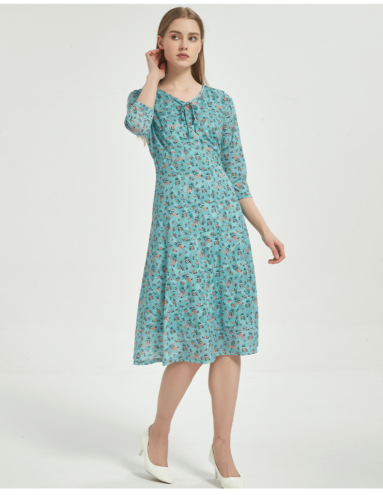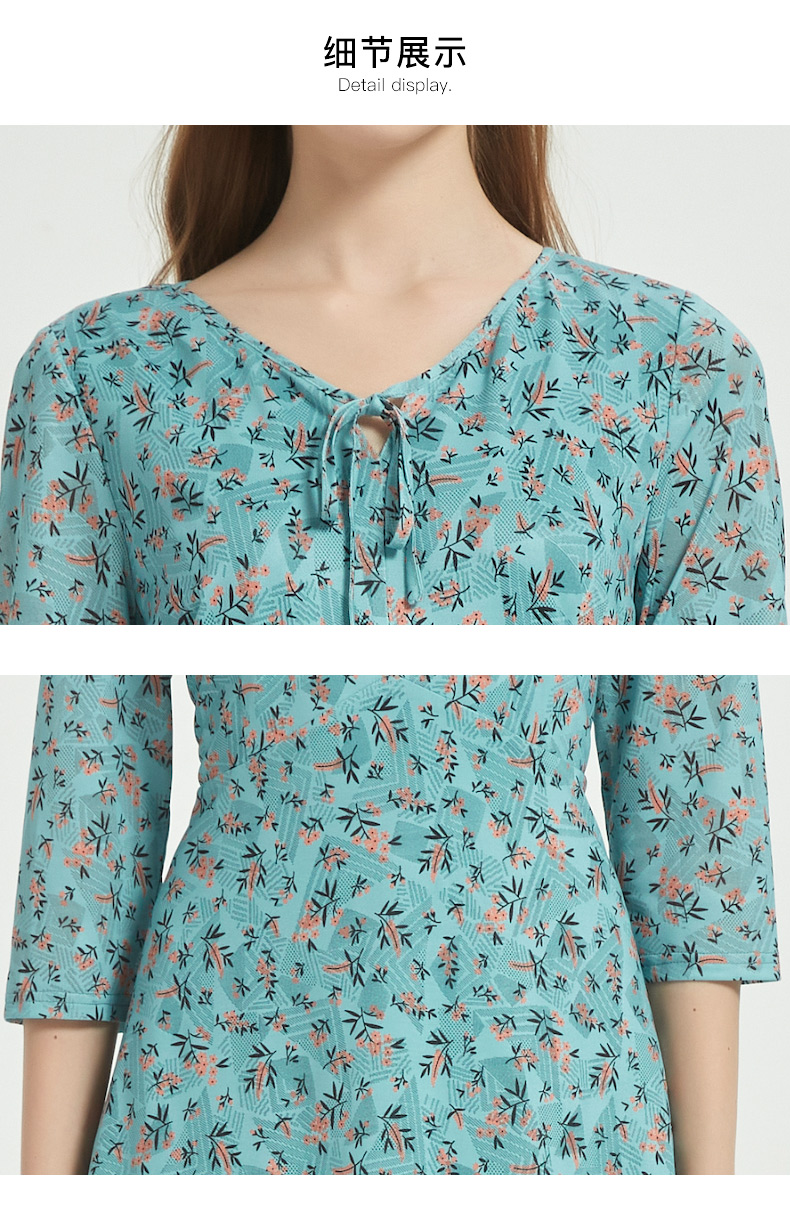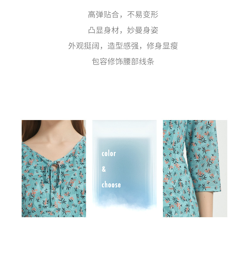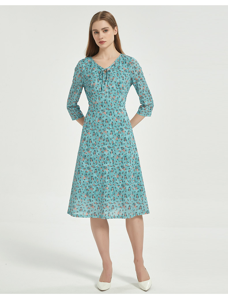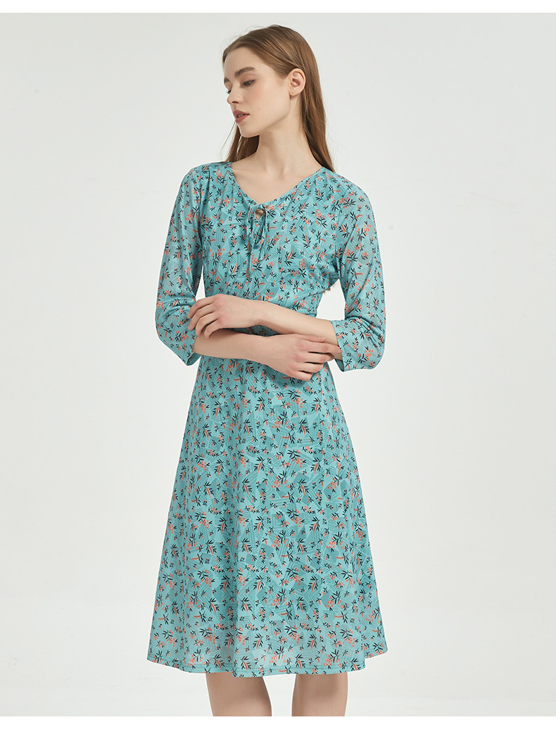 皮尔卡丹女装时尚时尚田园碎花清新修身连衣裙C51DL020G1