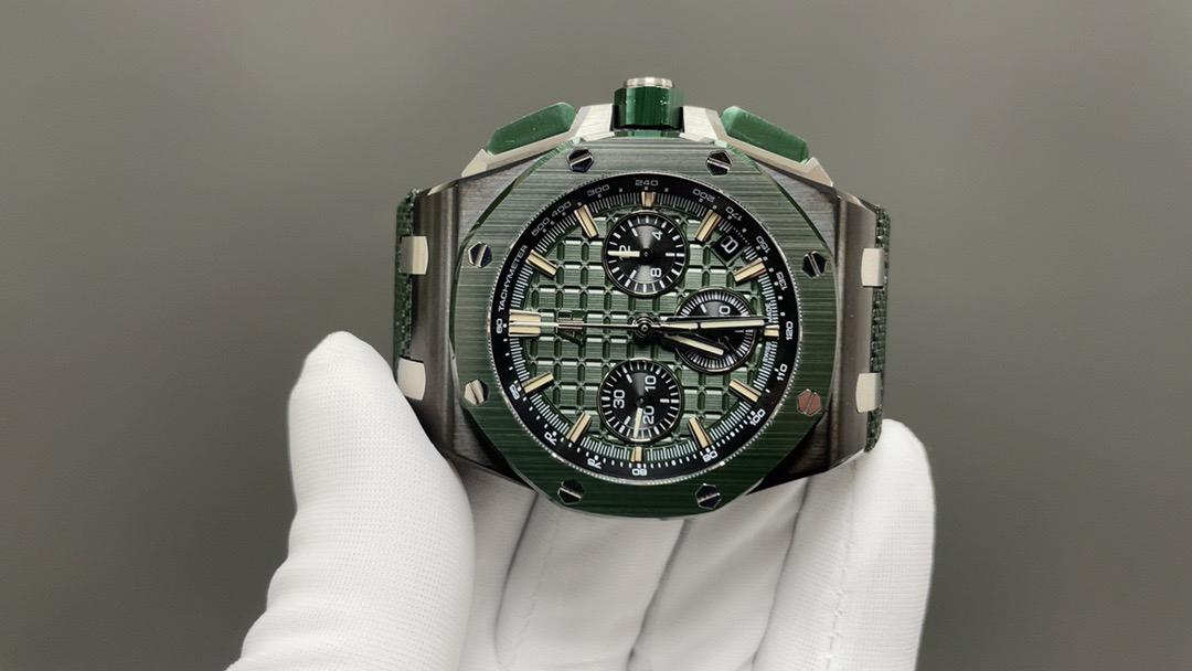 1、正品原版开模,新开模43 毫米表壳(市场版本44毫米,是套用旧款26400的壳)采用全新设计、更符合人体工学的表壳、更精致的表壳细节,它具有较大的抛光倒角, 尺寸 43MM~15.6MM, 43毫米宽的表壳经过精心修饰,以容纳直径稍大的新机芯