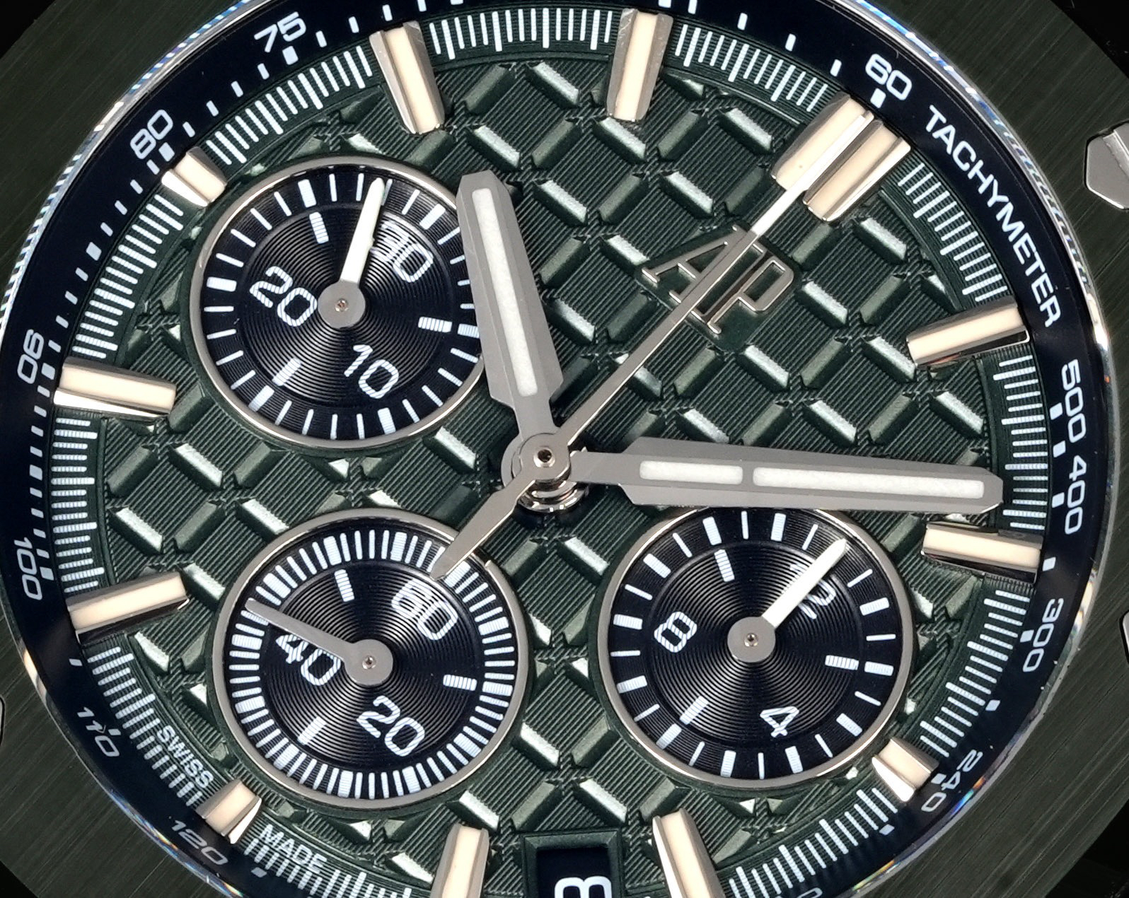 7、 表盘升级,表盘纹路由CNC慢冼(非油压式),成品纹路清晰,标志性的方形现在通过十字相互连接。Noob official ➕ Factory Audemars Piguet