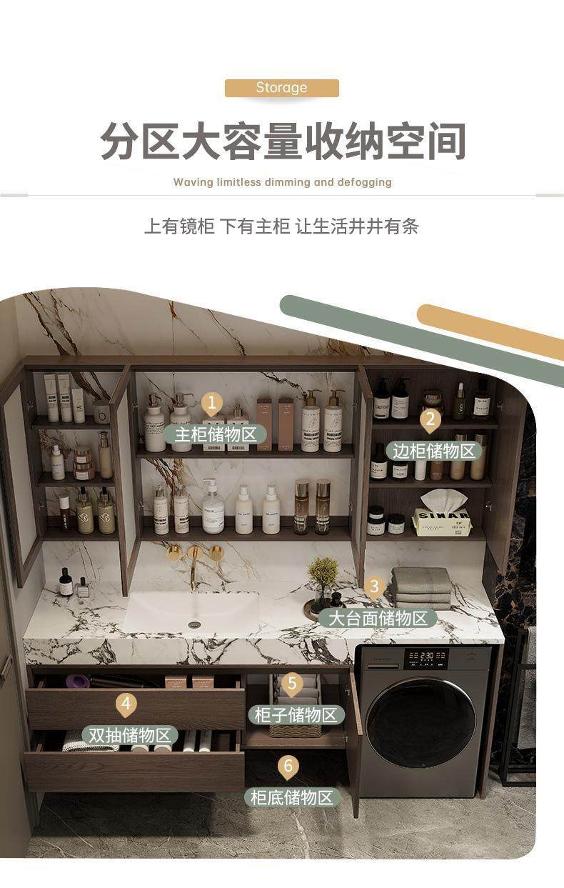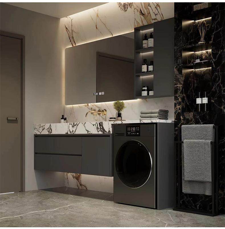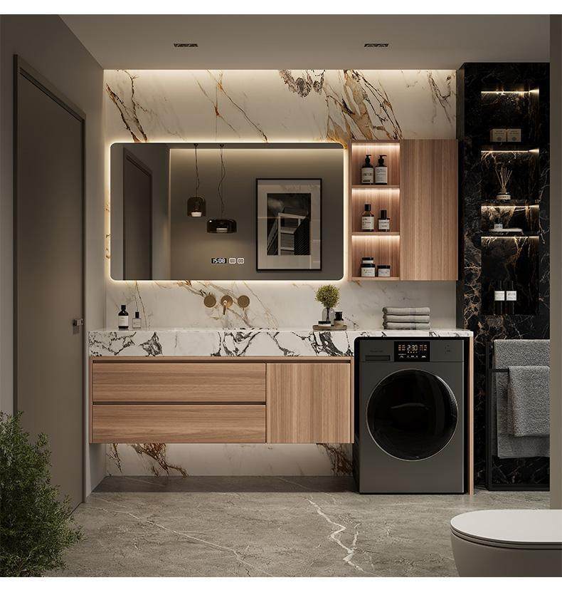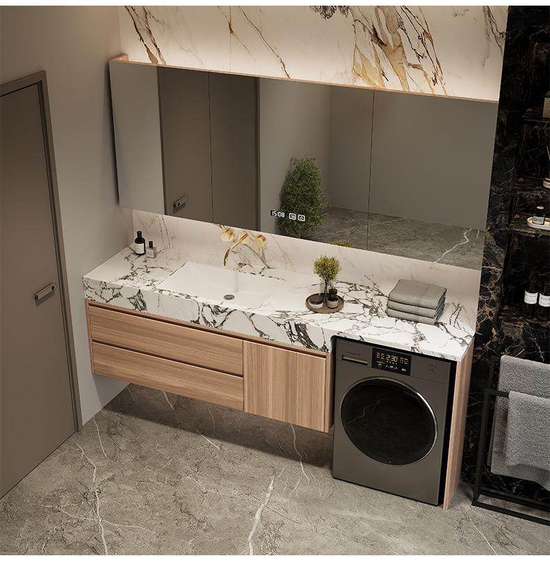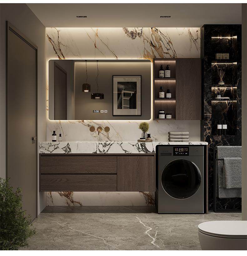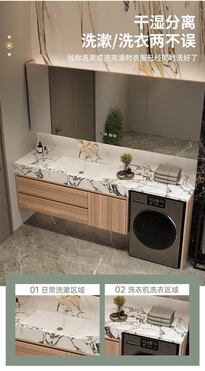一体浴室柜岩板陶瓷轻奢伴侣现代一体盆柜柜组合洗衣机阳台洗手盆