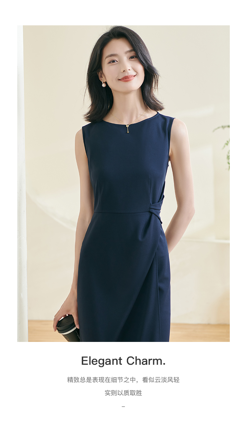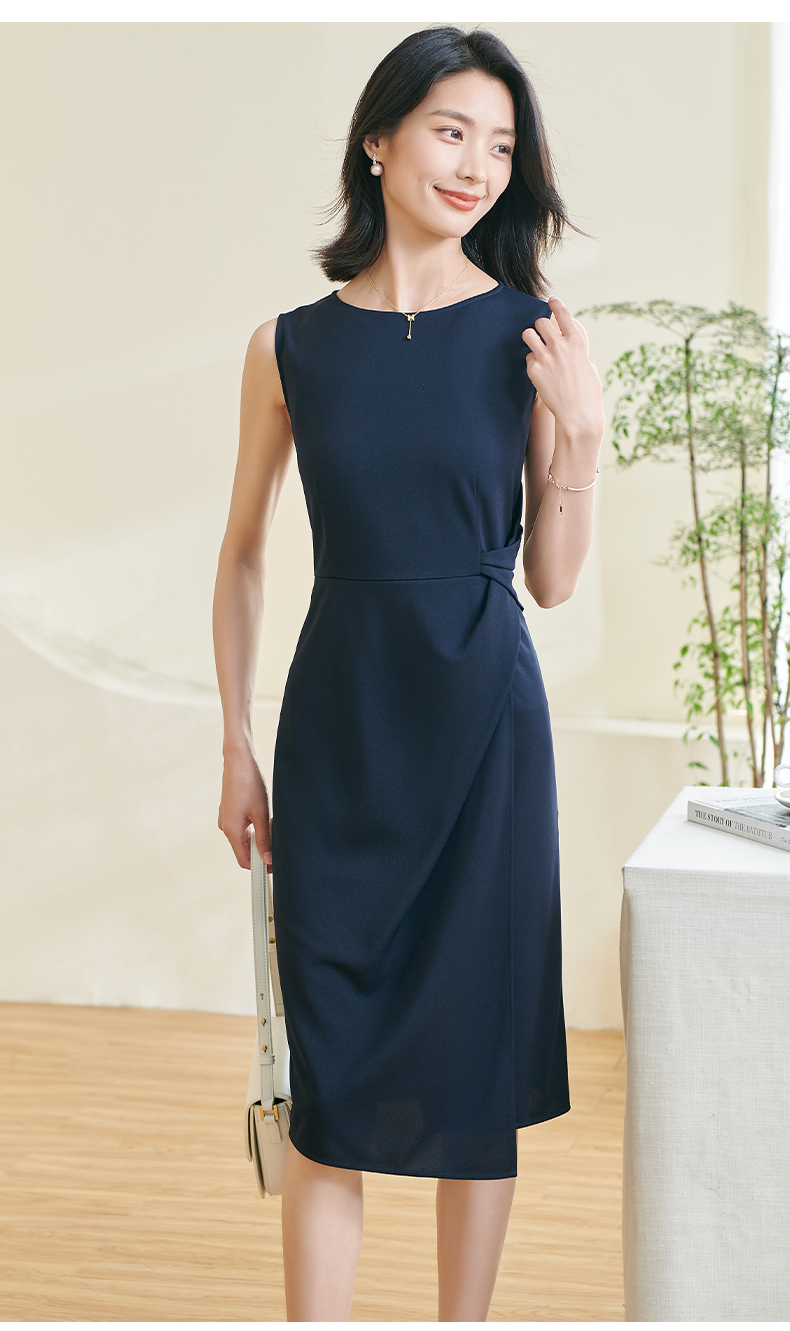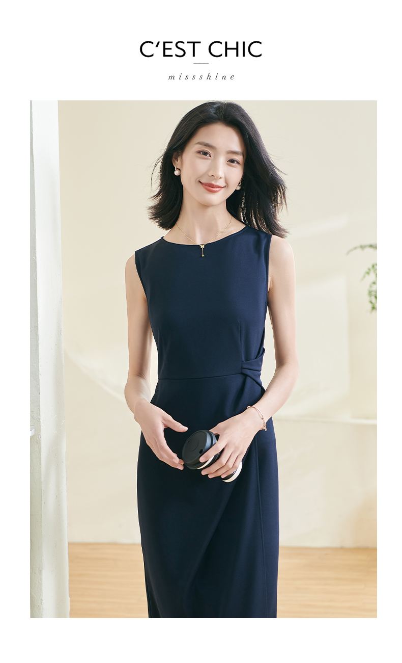 米思阳2026夏季新款通勤简约大气连衣裙高腰修身褶皱设计裙子0220/1238