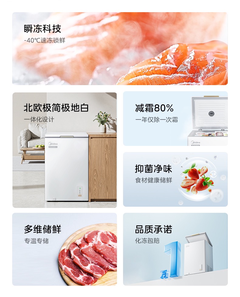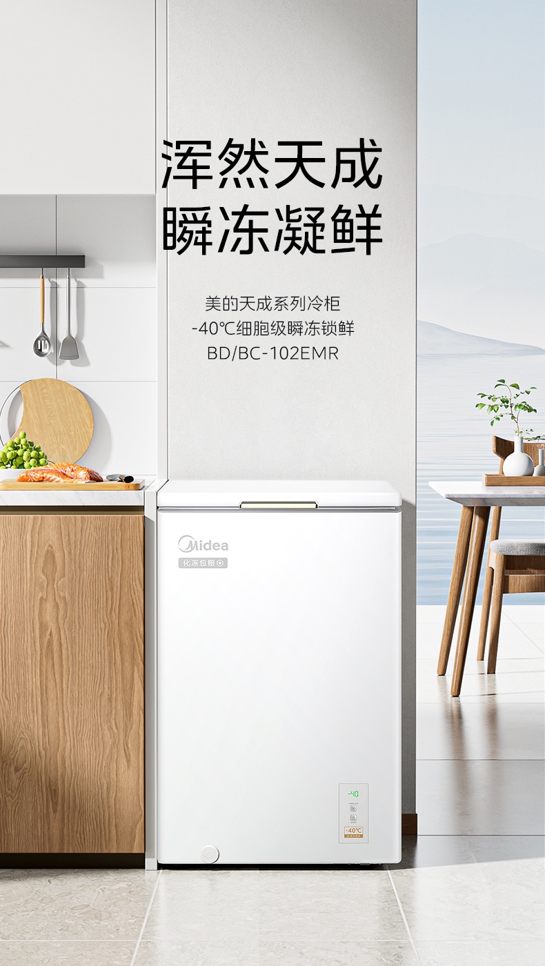 美的(Midea)(202825)冰柜家用商用冷柜冷藏冷冻柜超低温零下40度电脑精准控温节能一级能效超低温海鲜冷柜 零下40度 102L 电子控温 102EMR