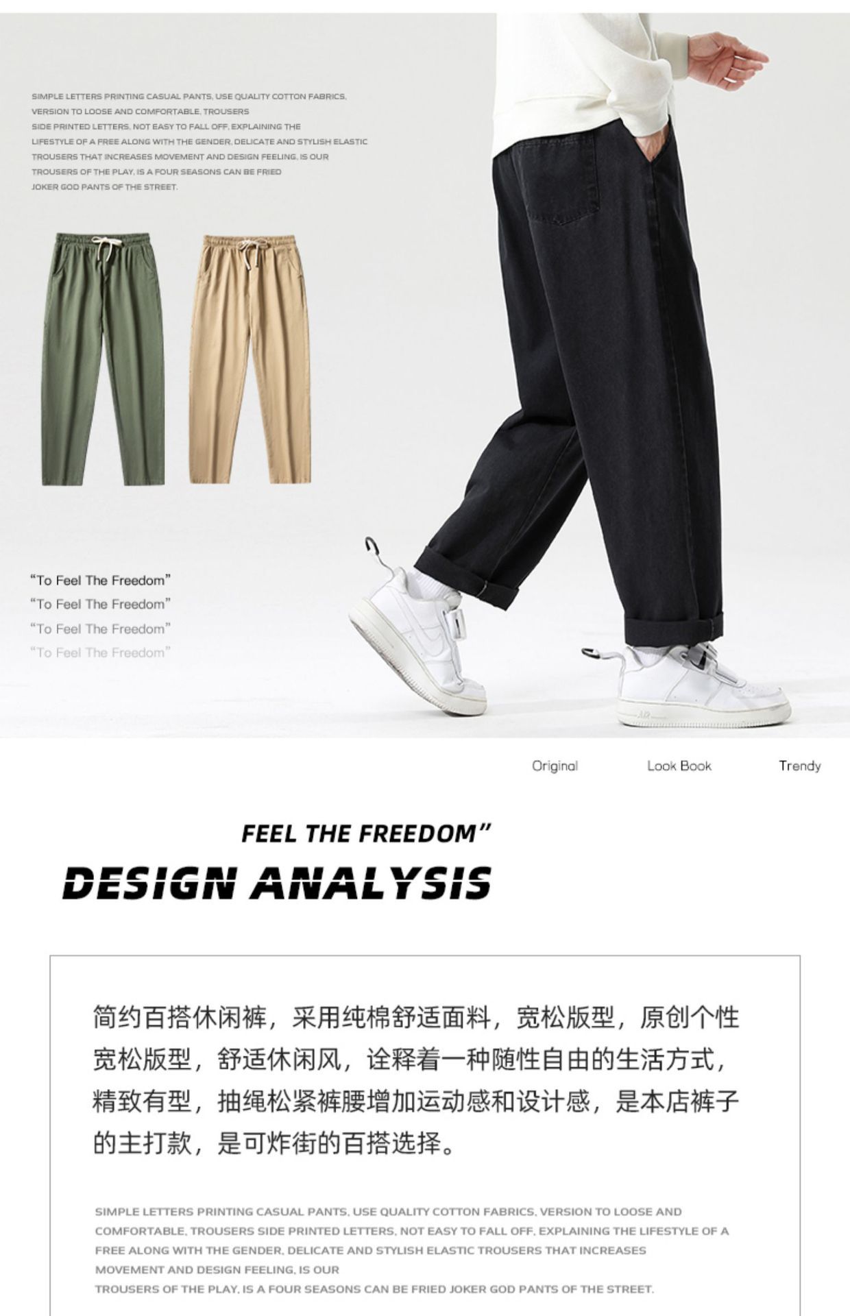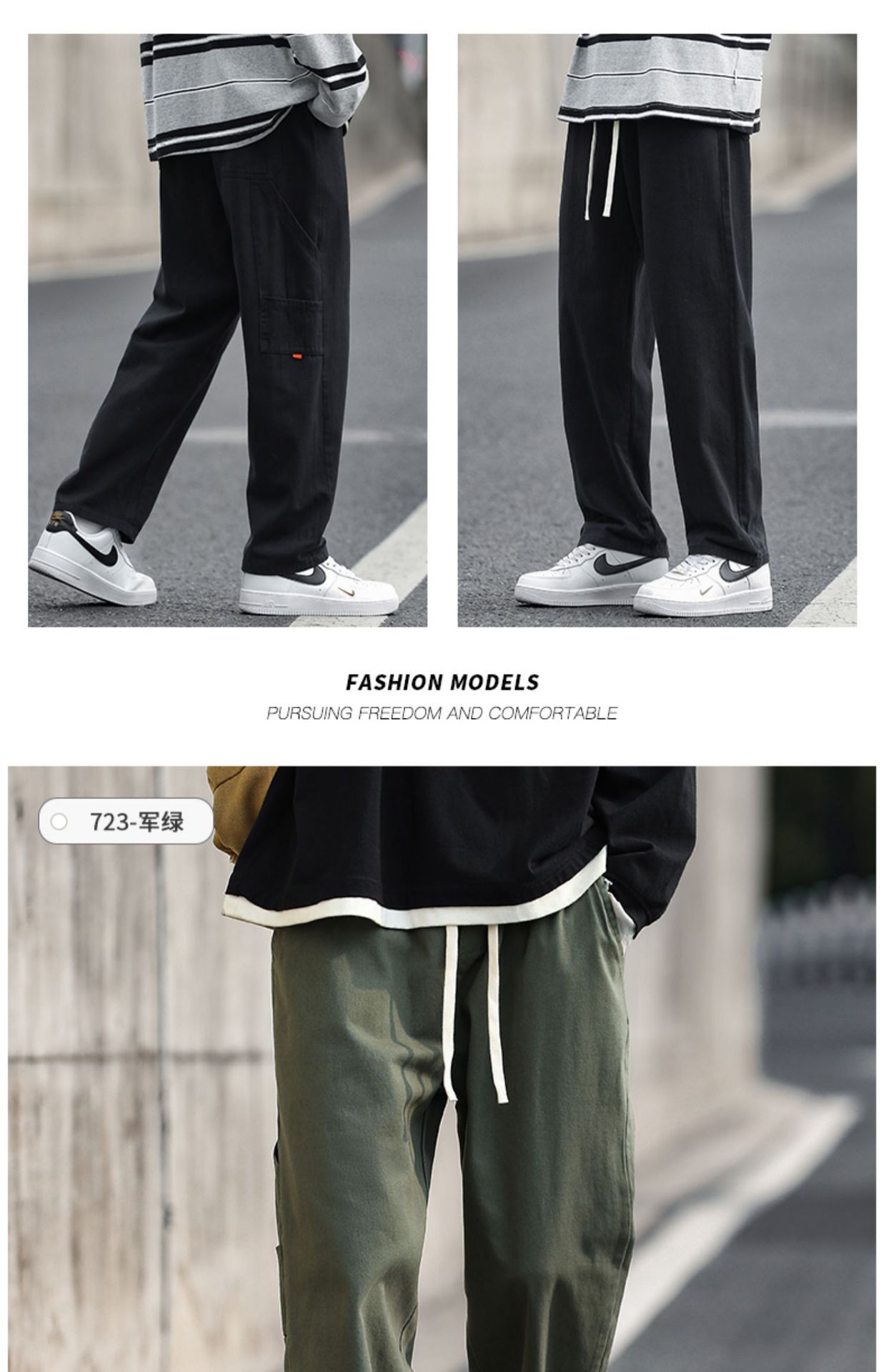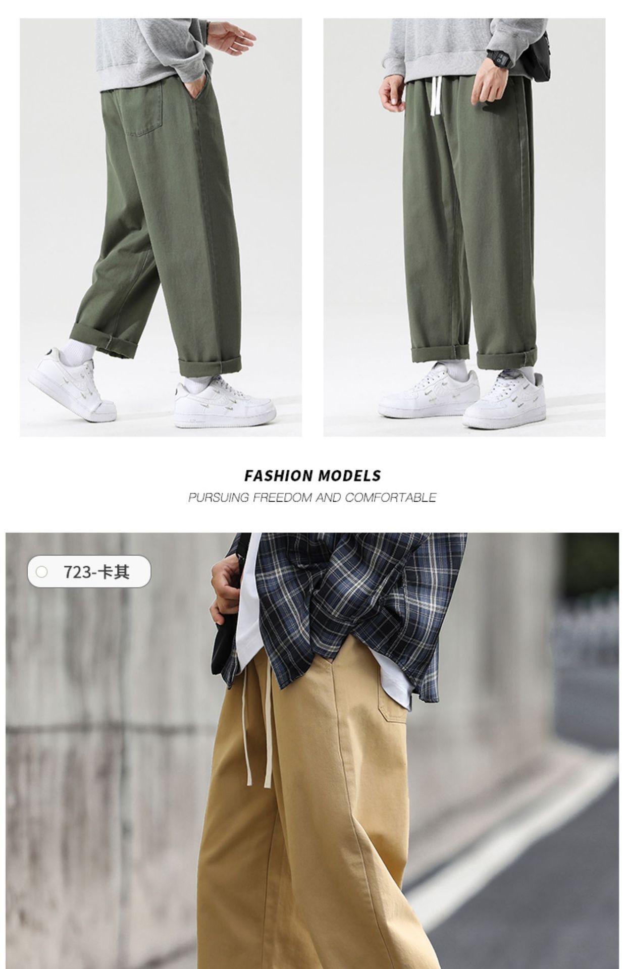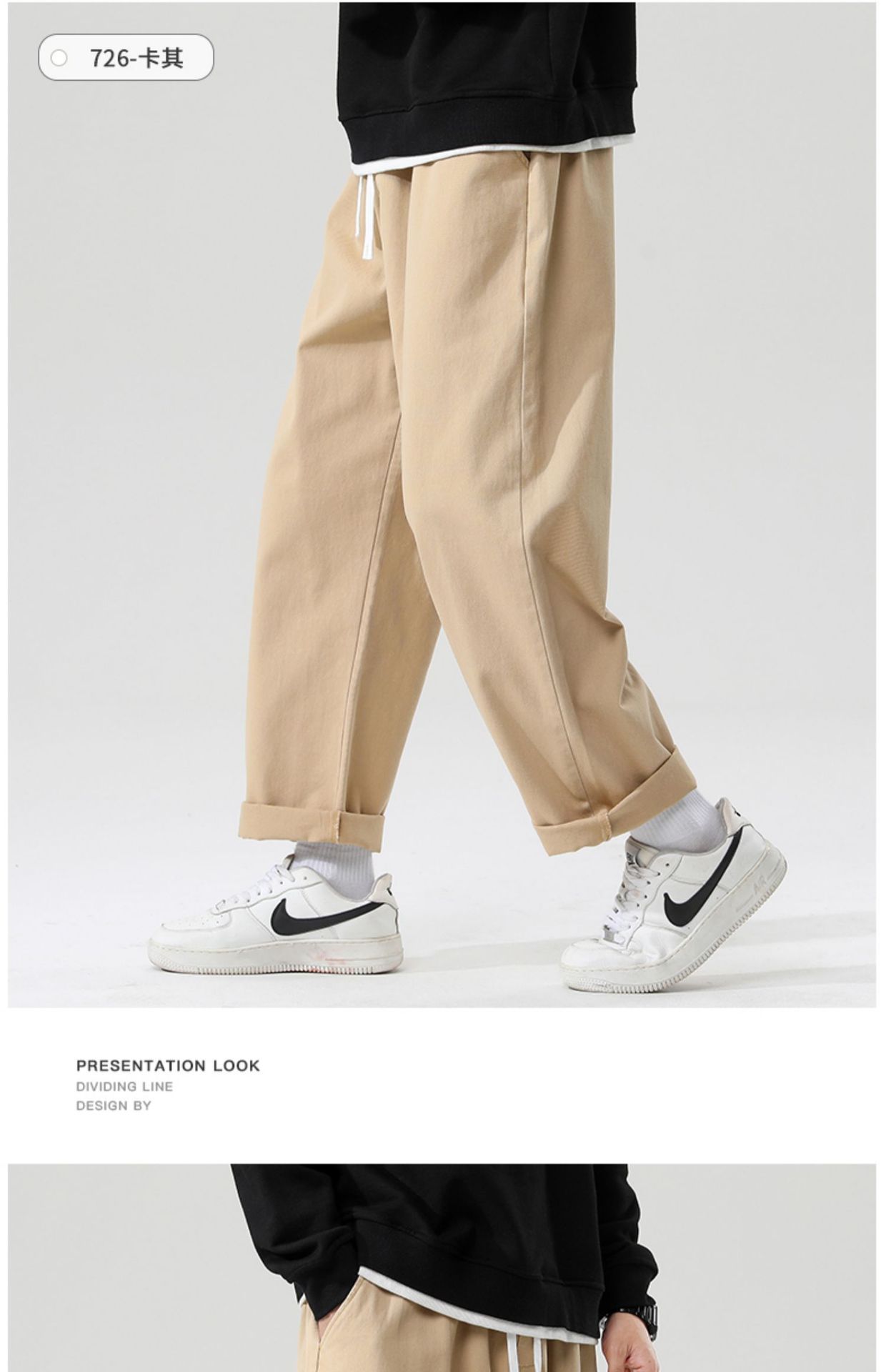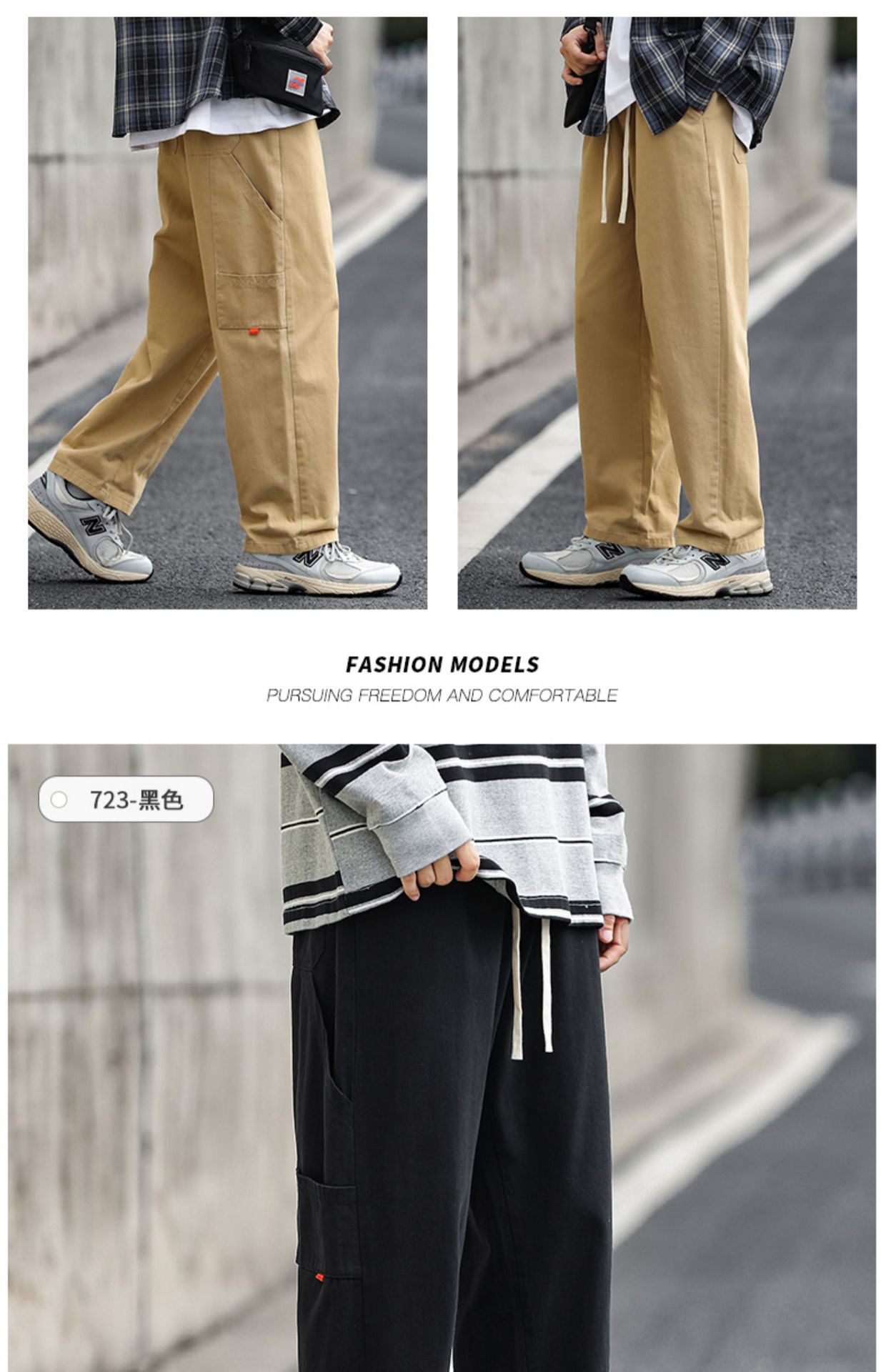「3色可选」NASA夏季男士休闲裤 潮流卡其色工装纯棉宽松直筒抽绳大码长裤子下装