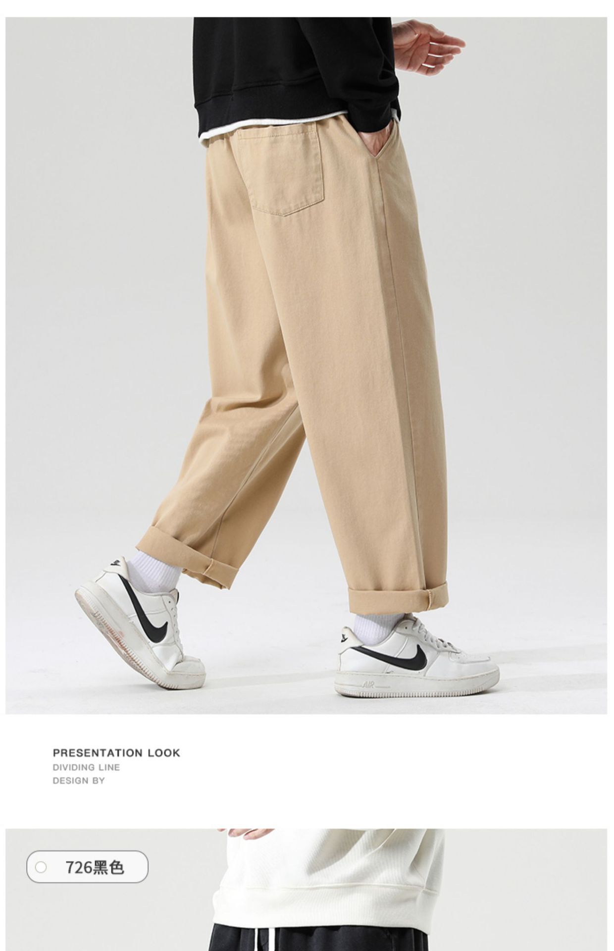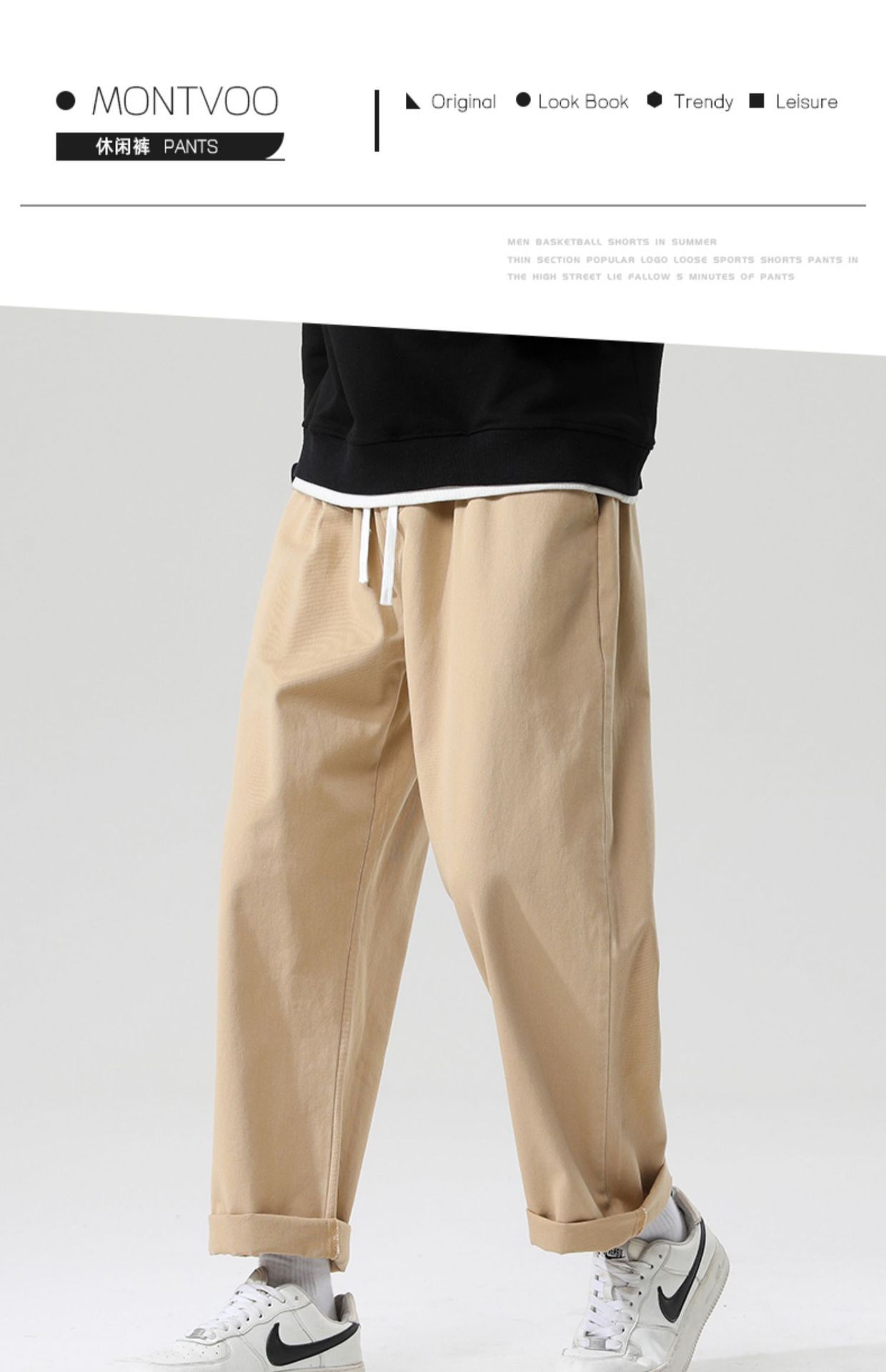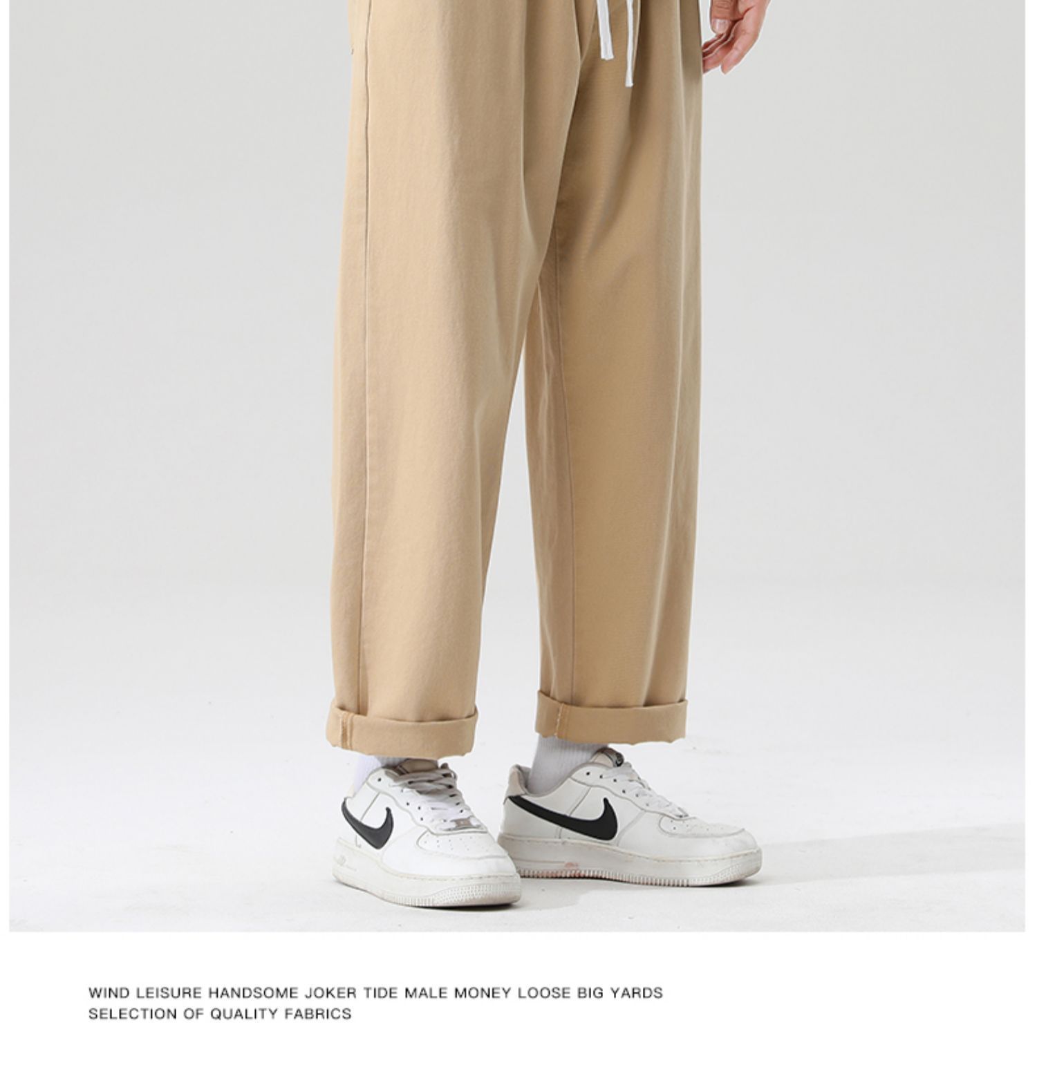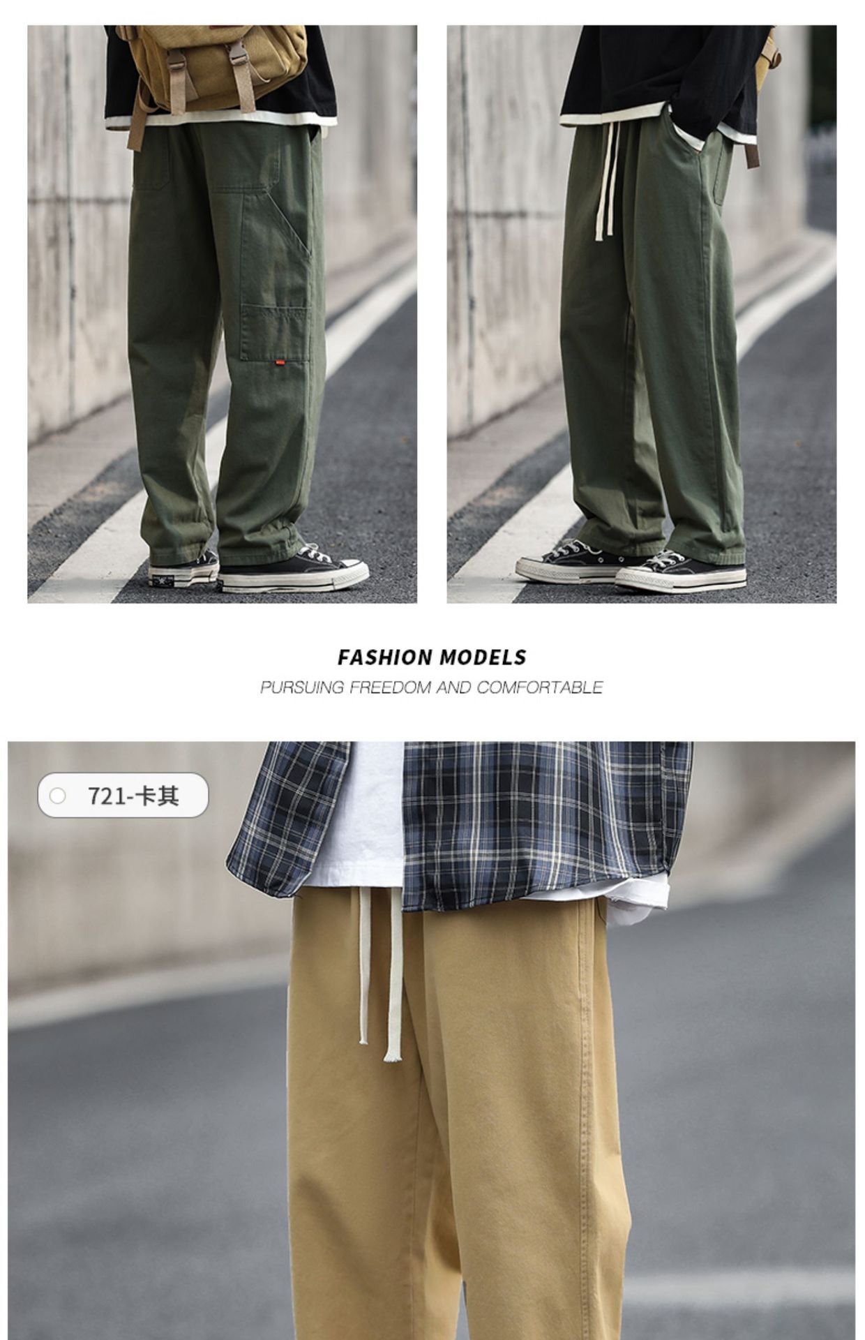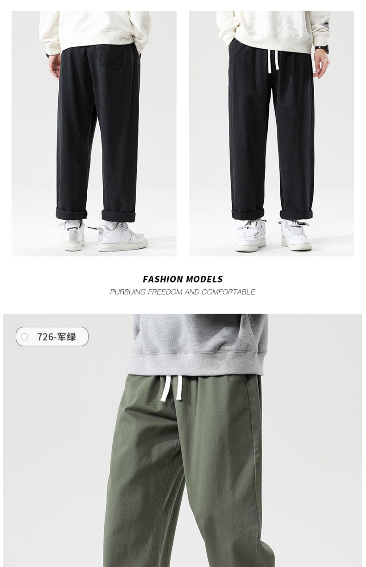 「3色可选」NASA夏季男士休闲裤 潮流卡其色工装纯棉宽松直筒抽绳大码长裤子下装