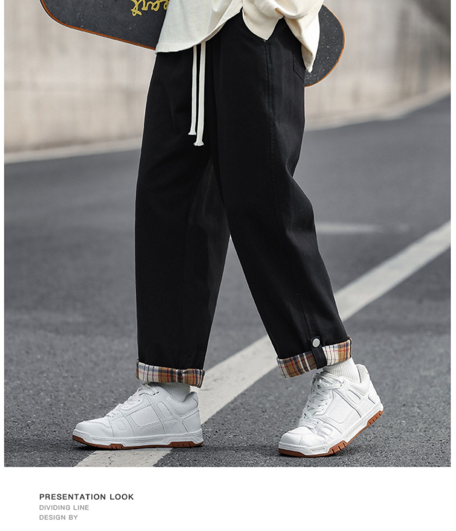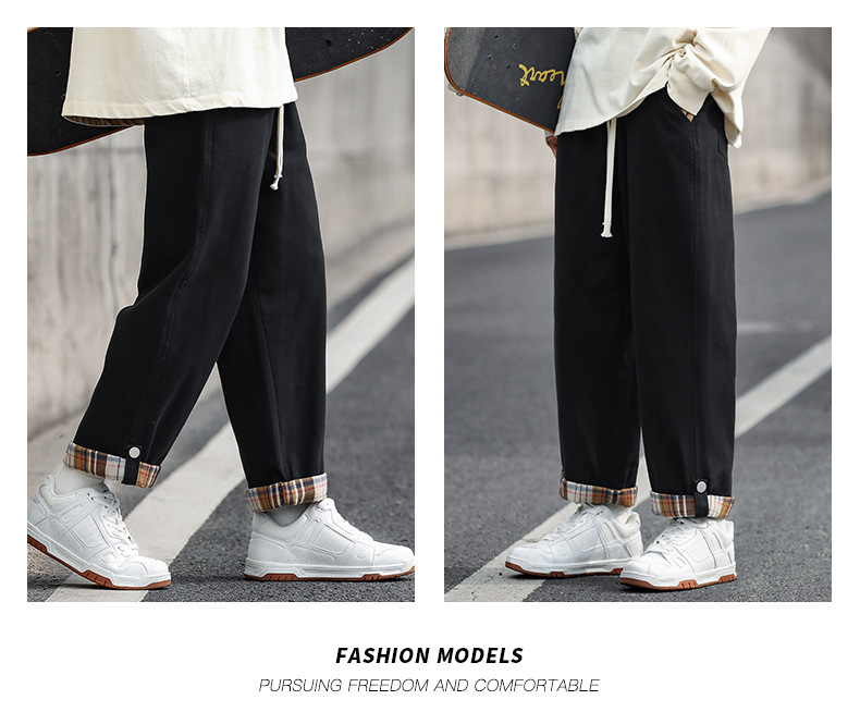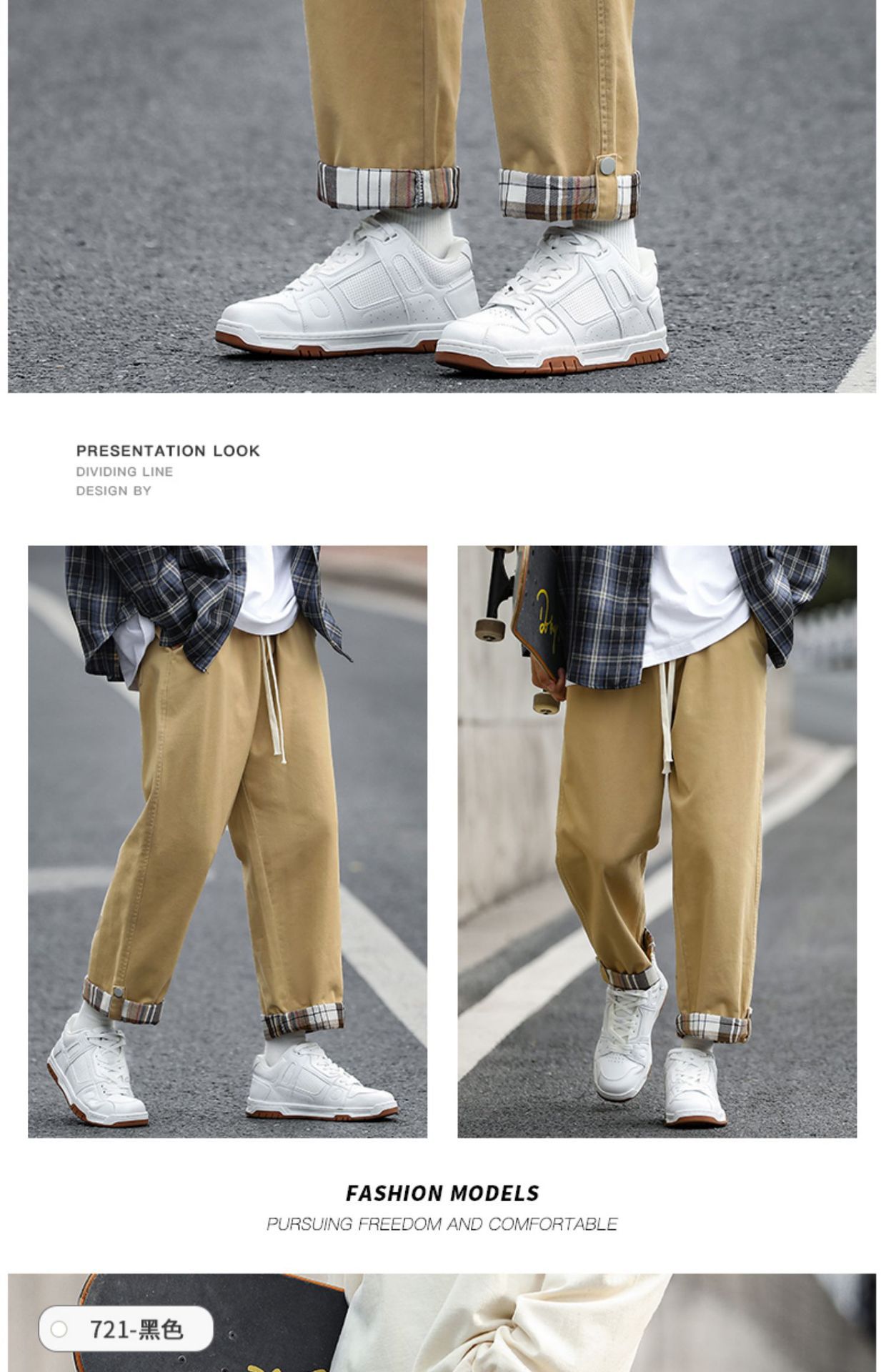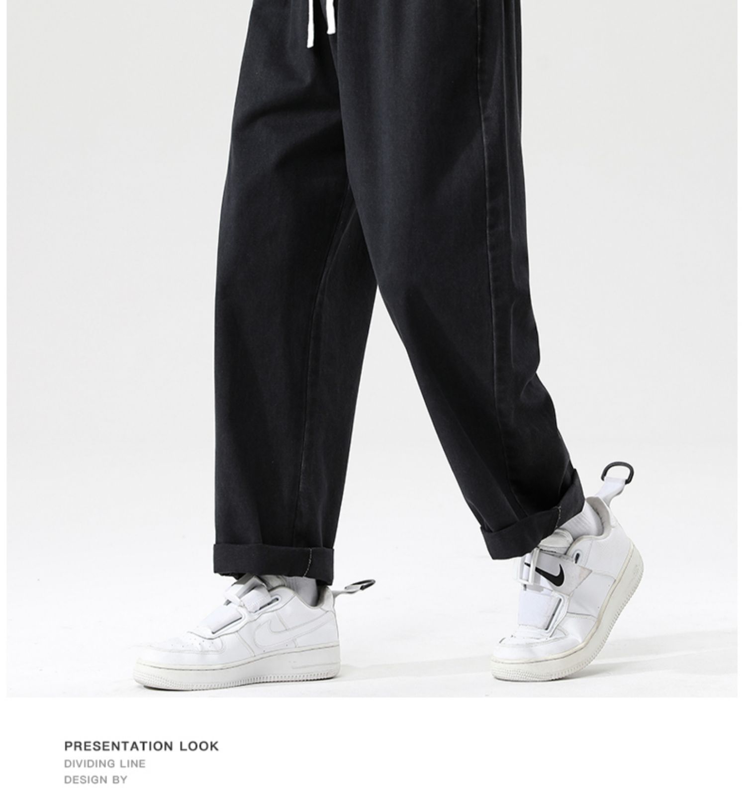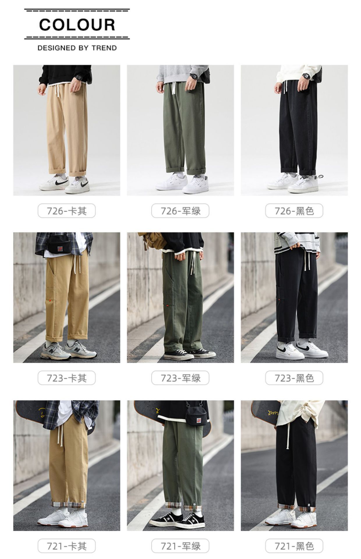 「3色可选」NASA夏季男士休闲裤 潮流卡其色工装纯棉宽松直筒抽绳大码长裤子下装
