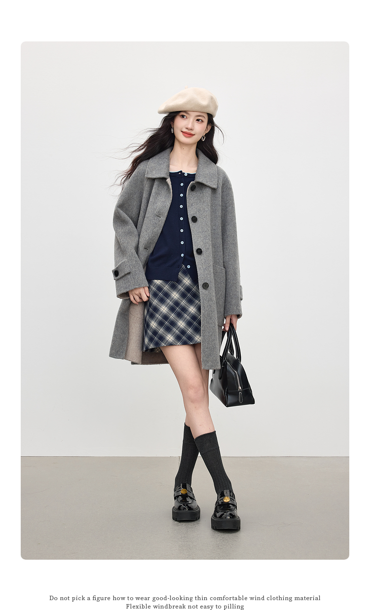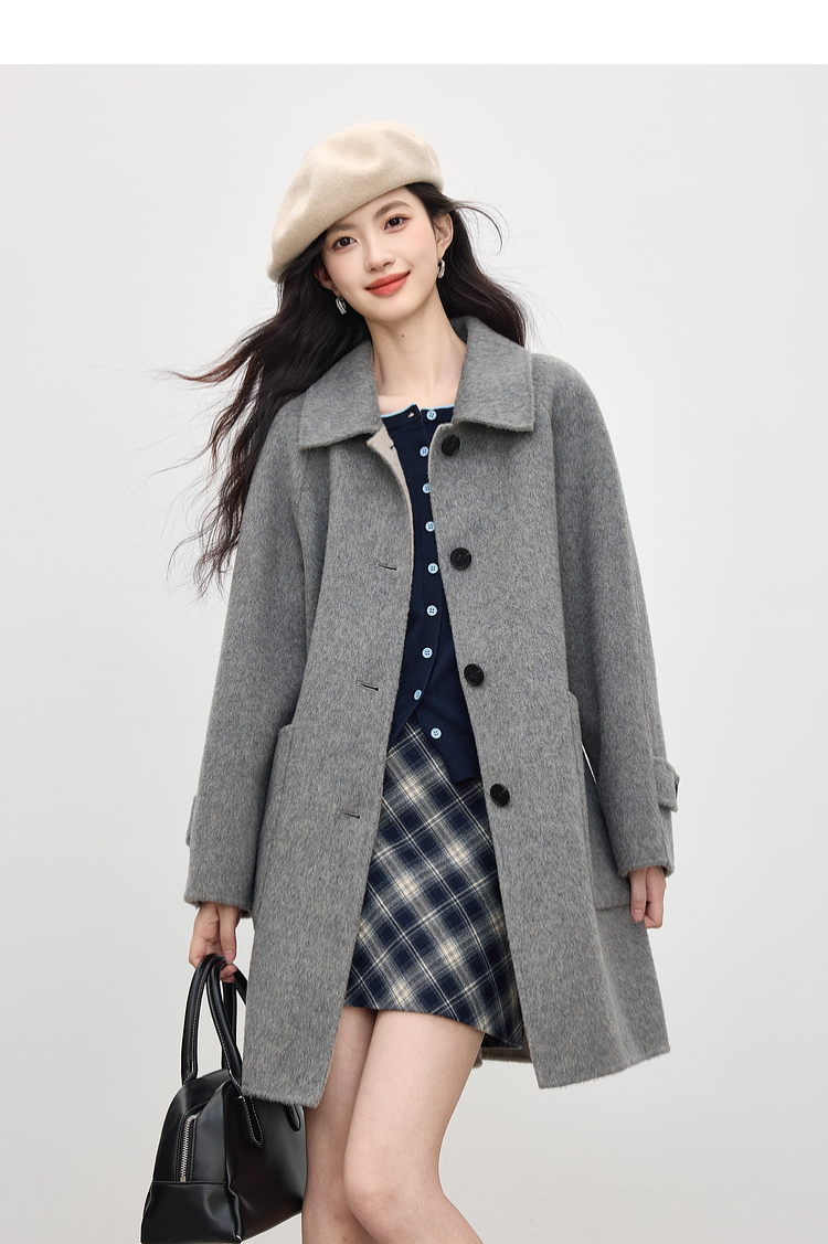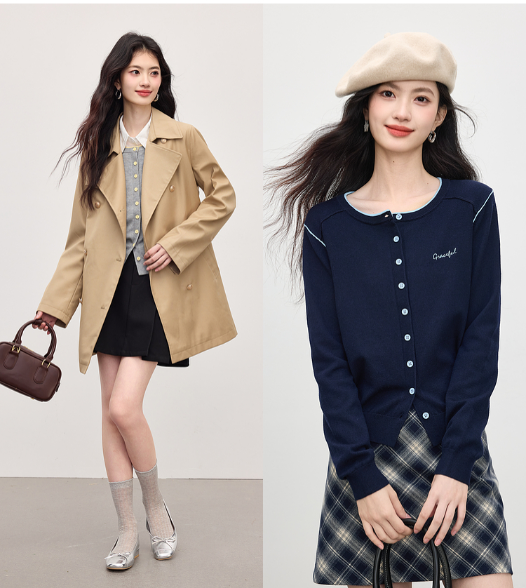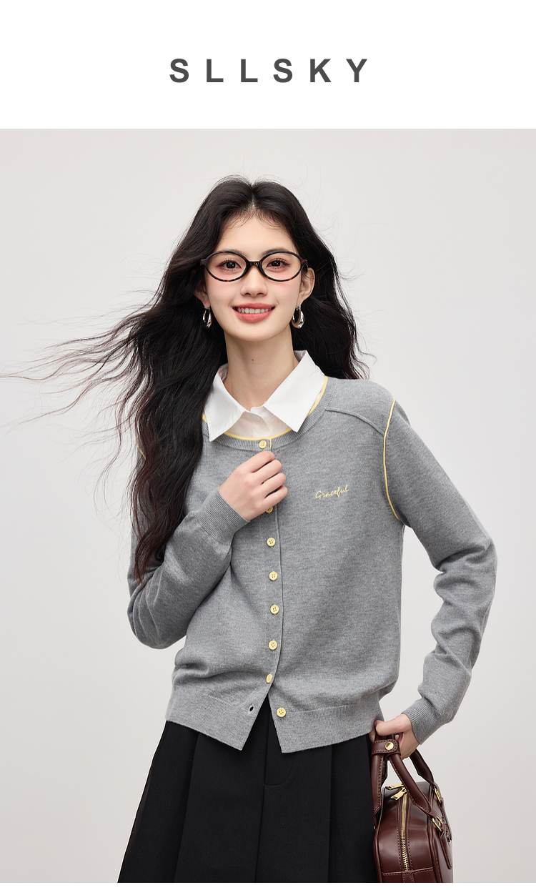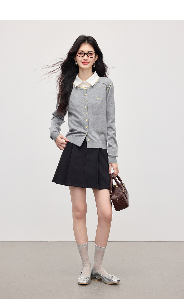【09/03新品】熙世界含羊毛撞色圆领针织衫女长袖时尚百搭毛衣开衫2025秋季新款