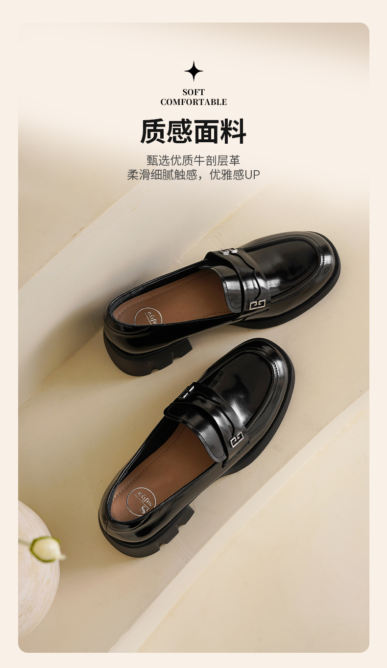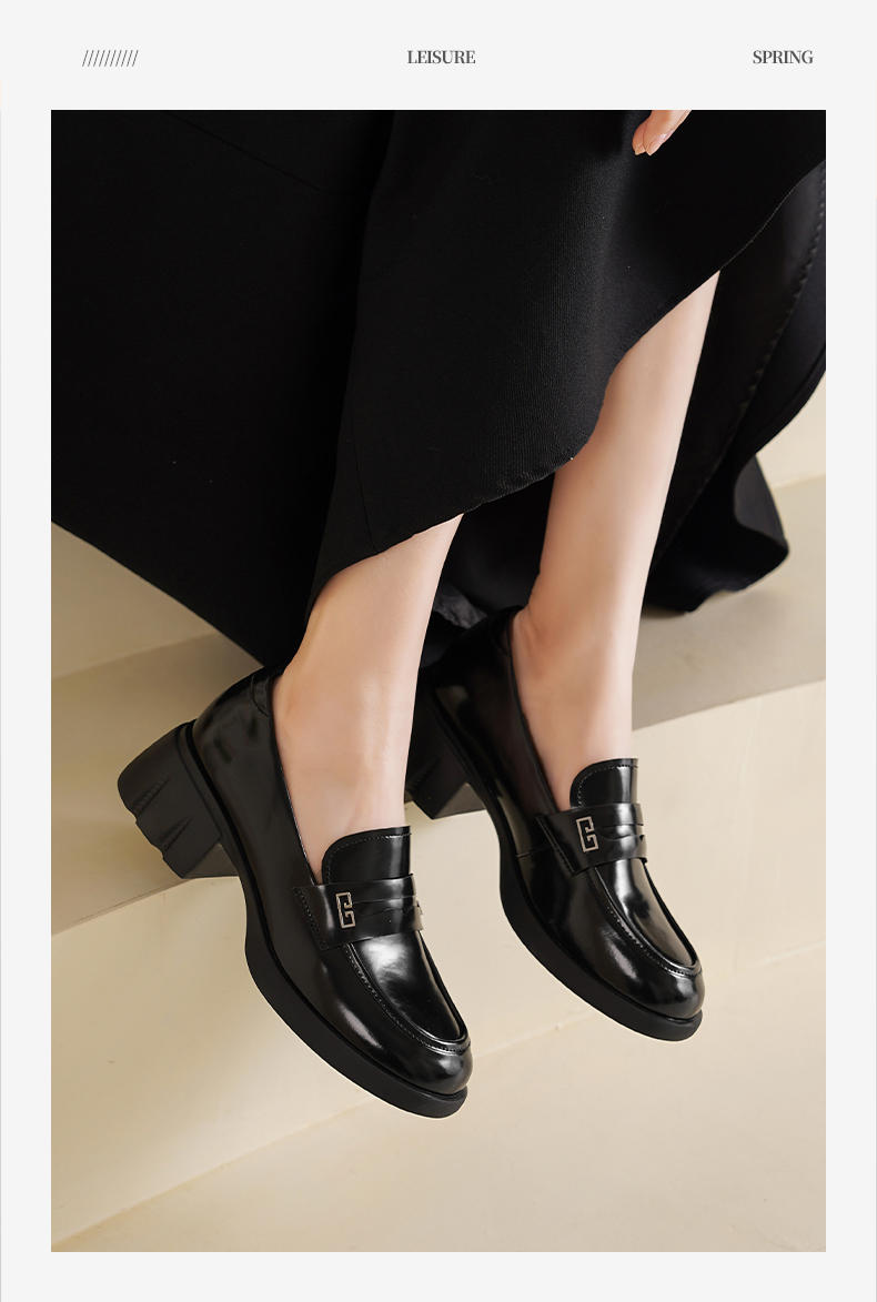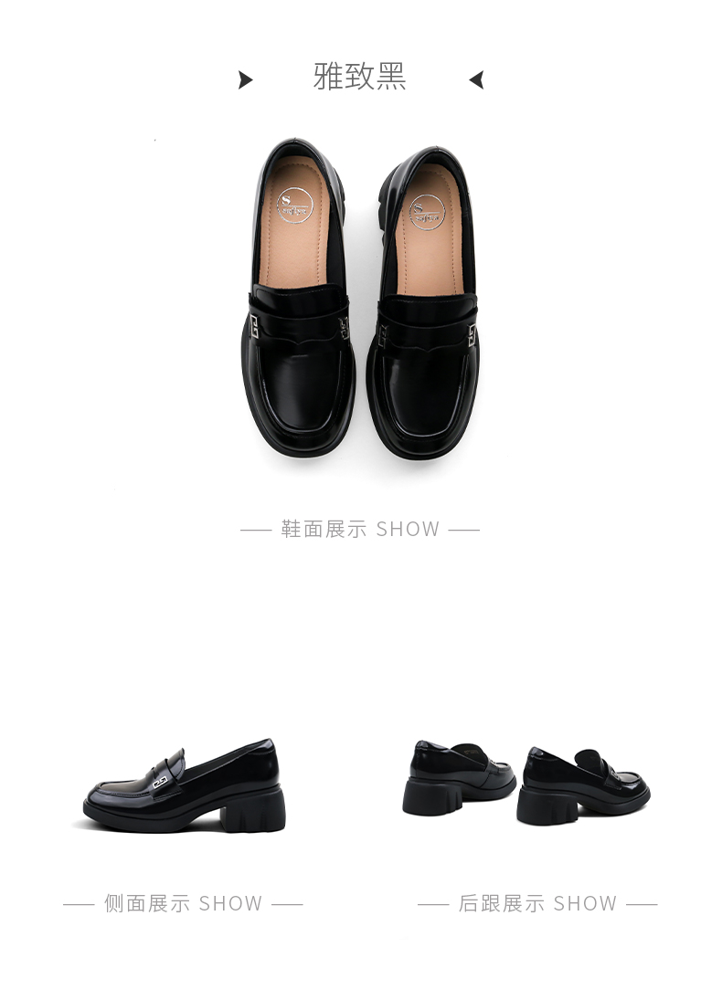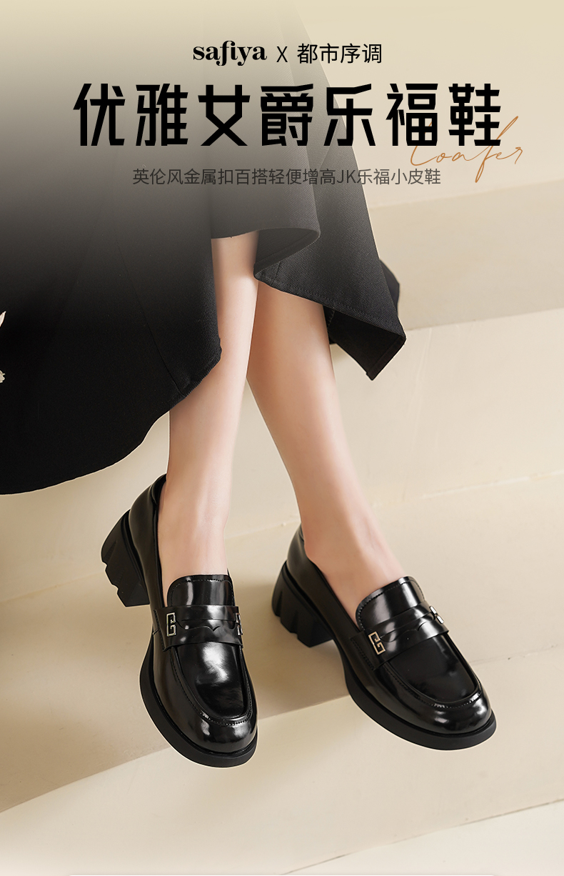 Safiya/索菲娅2025英伦风金属扣百搭轻便增高JK乐福小皮鞋 SFD1112170