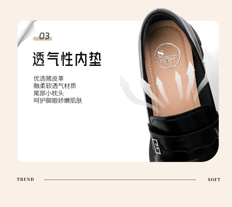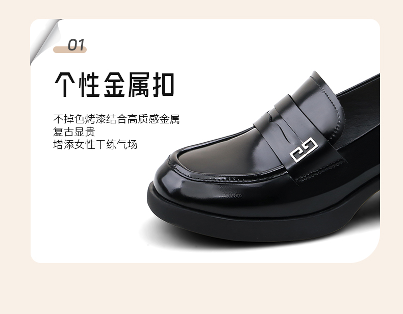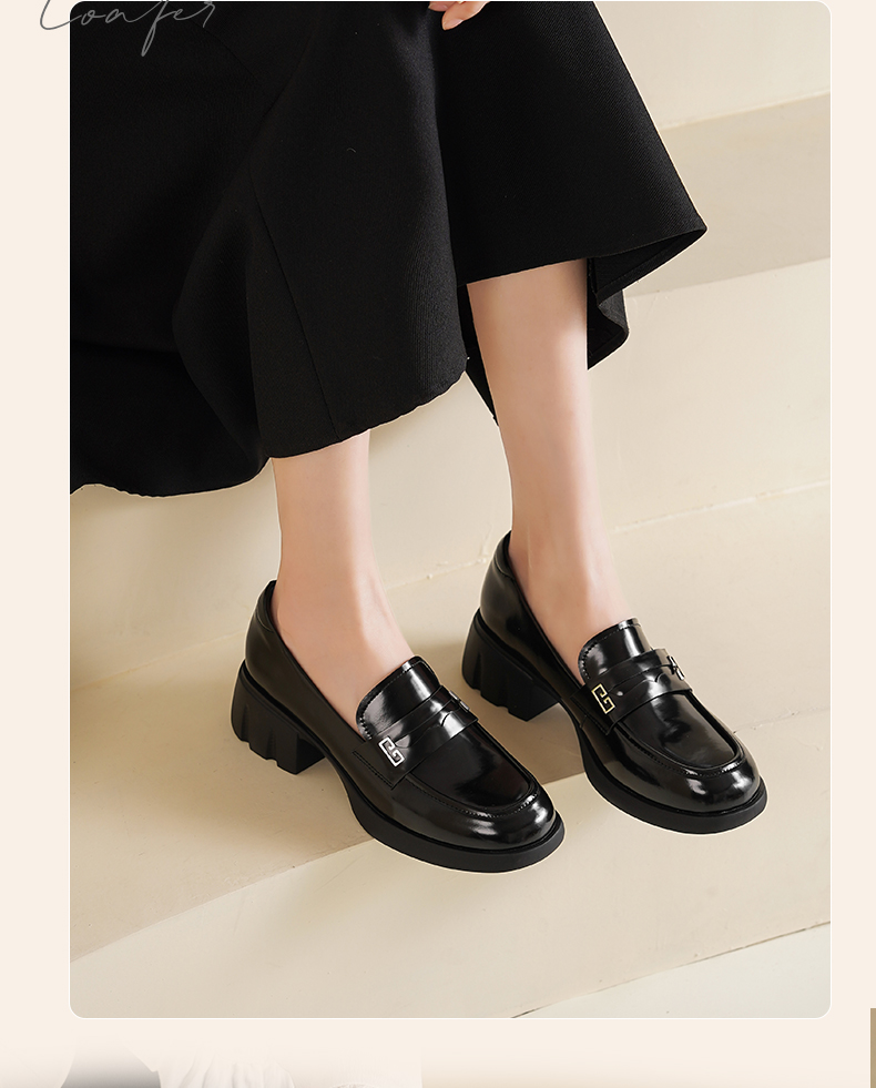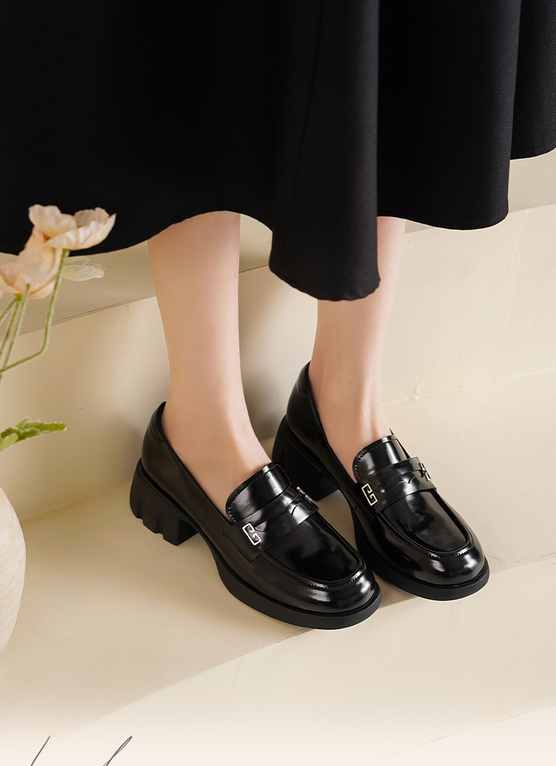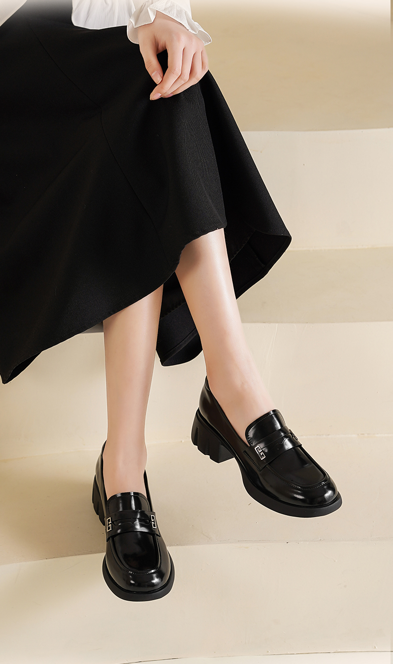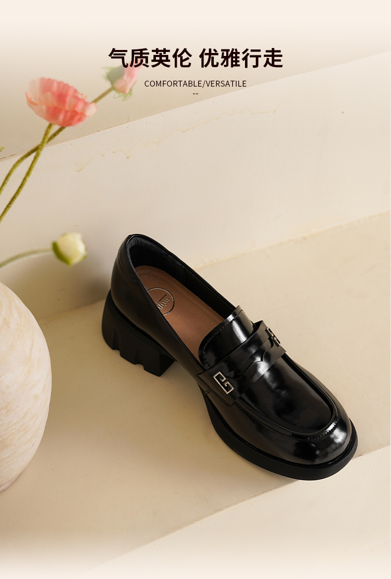 Safiya/索菲娅2025英伦风金属扣百搭轻便增高JK乐福小皮鞋 SFD1112170